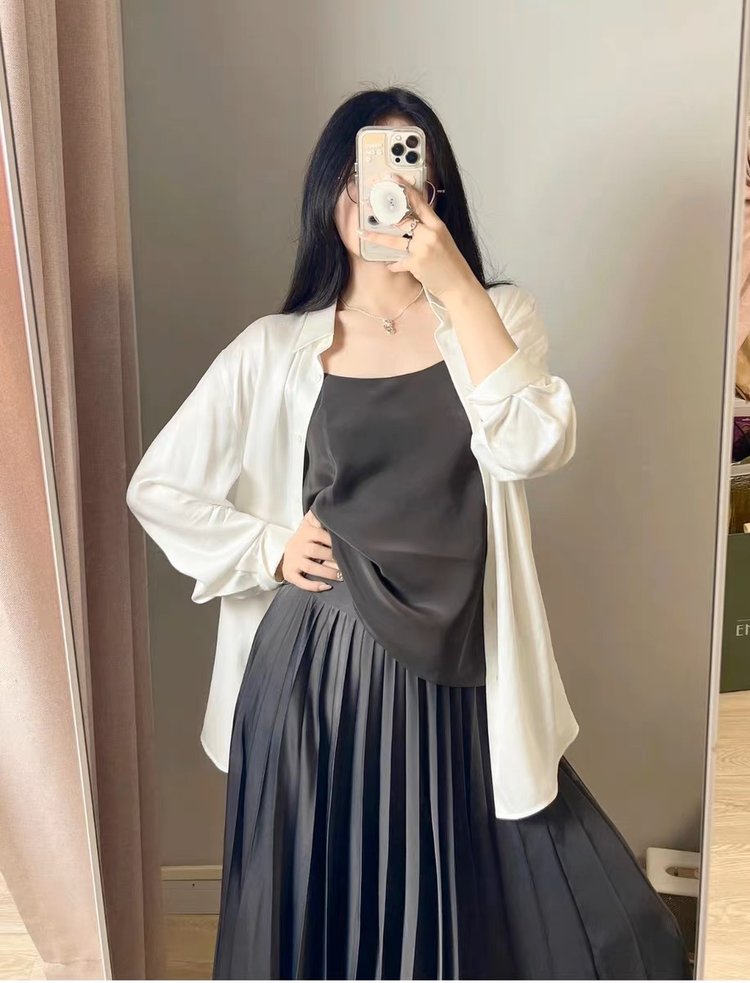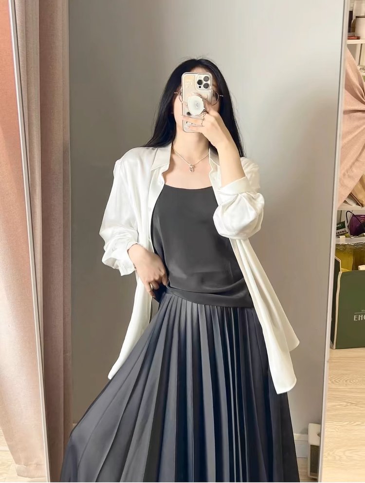 微A字裙型对身材包容度极高,上身垂坠有型,能够恰到好处的遮肉 修饰腰胯,视觉上避免了膨胀感任何身材皆可驾驭,线条自然流畅 没有丝毫的膨胀拖沓感,轻松弱化身材的不足之处 优化细节。