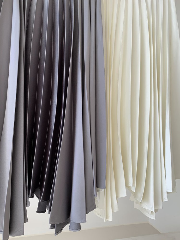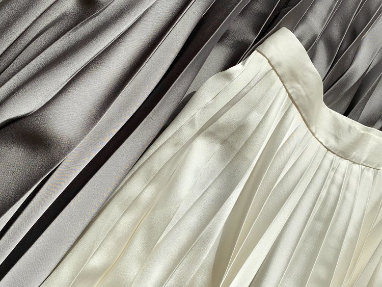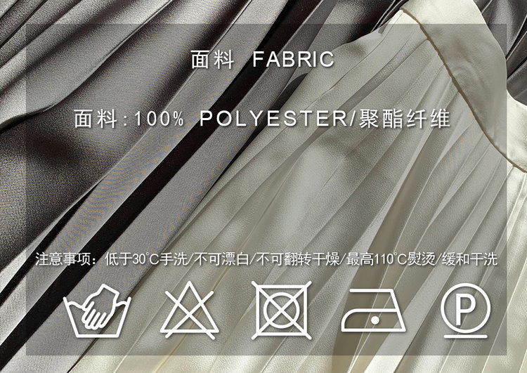流光感抗压褶时装面料,舒适好打理,打造立体垂坠有骨感的褶皱裙装。