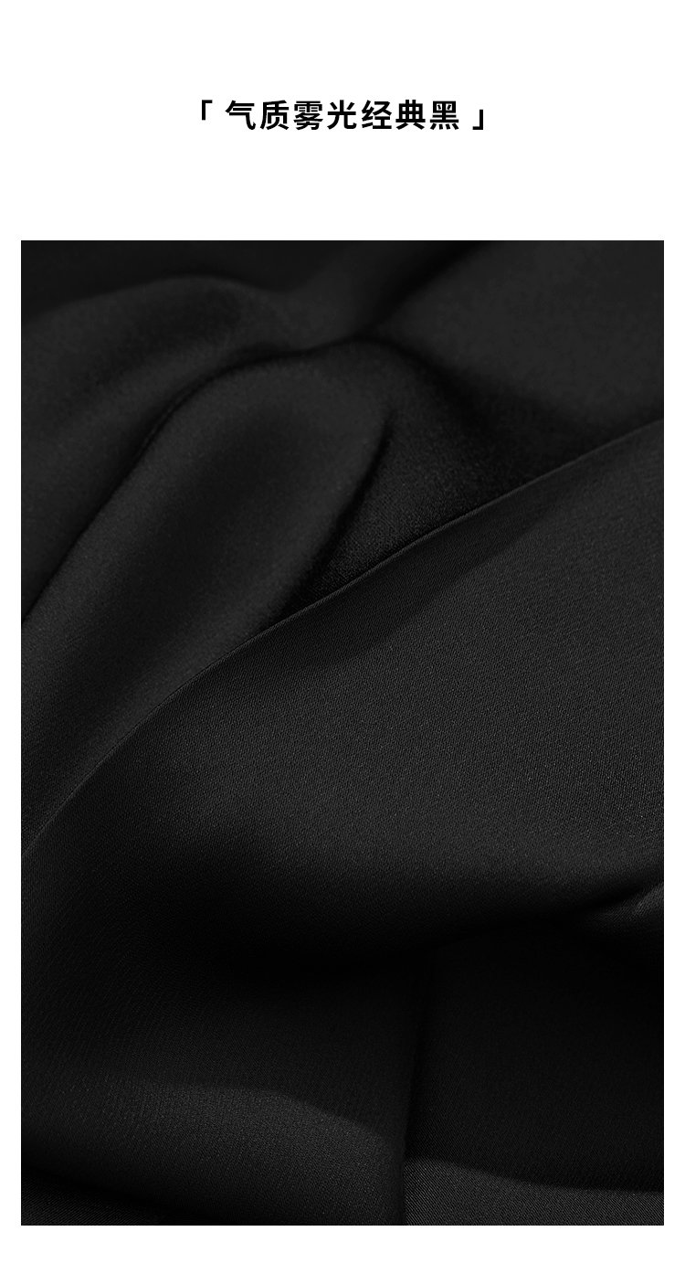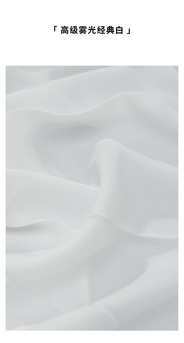 高支流光缎面抗皱垂感压褶时装面料,运用有光长丝与高端复合纤维共同织造,布面呈现缎面的光泽,柔和靓丽,视觉上倍感高级,