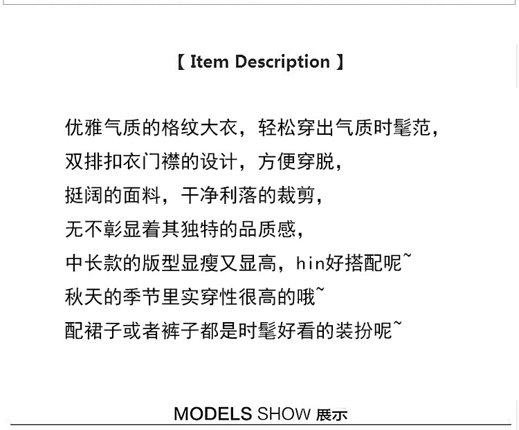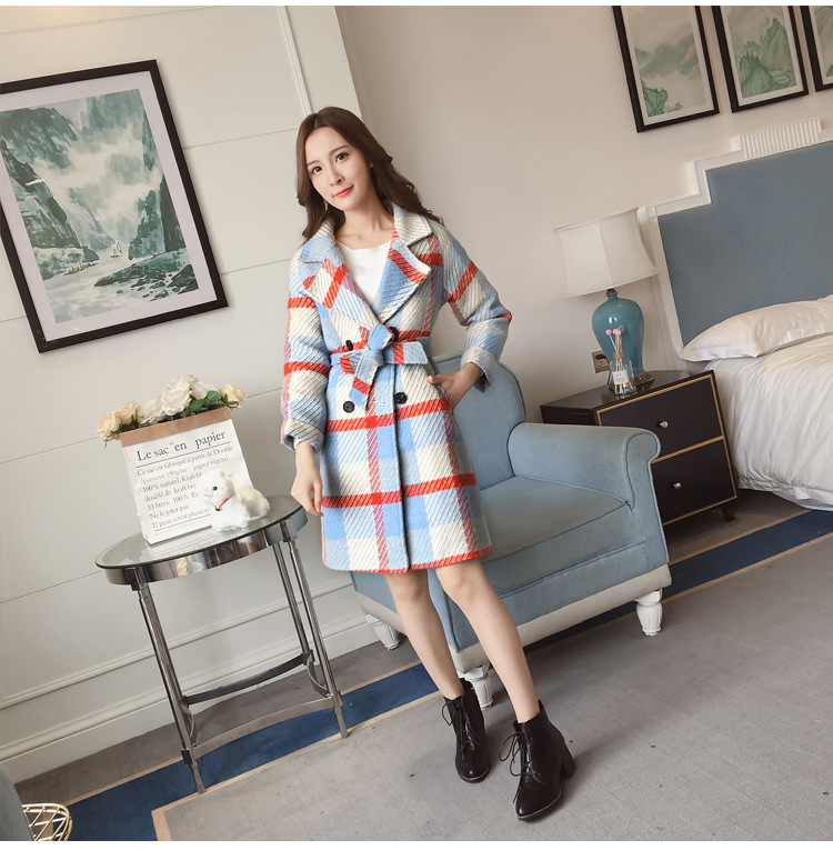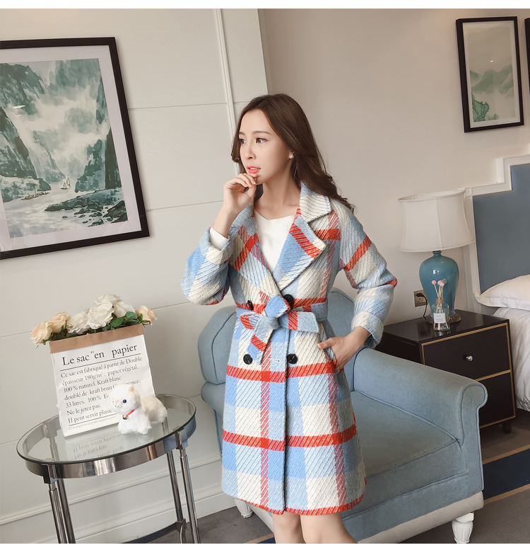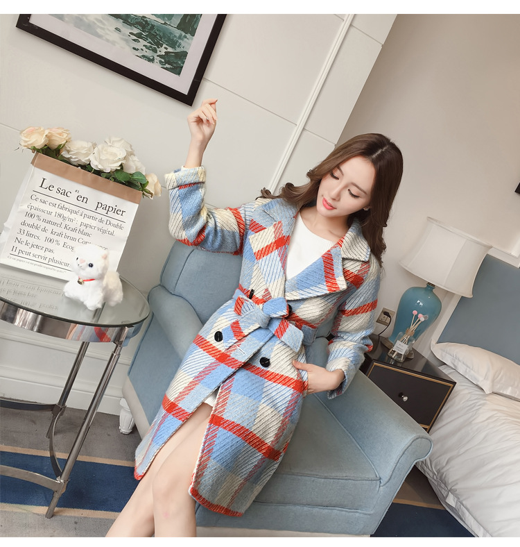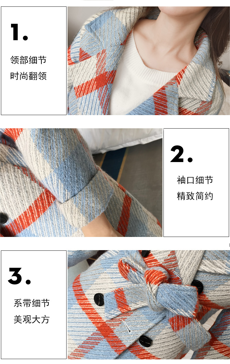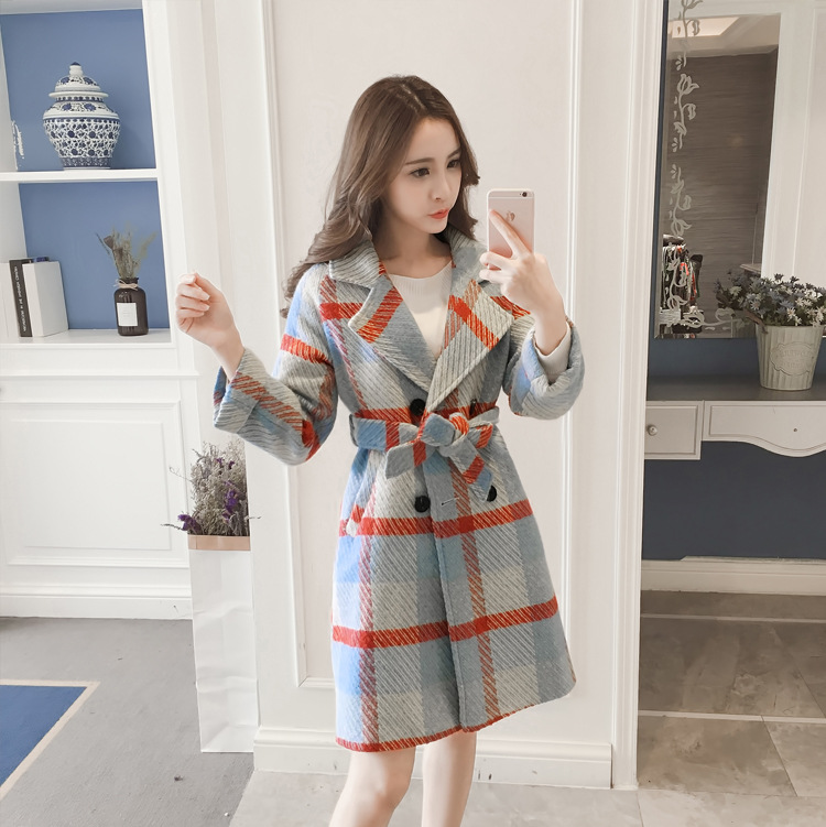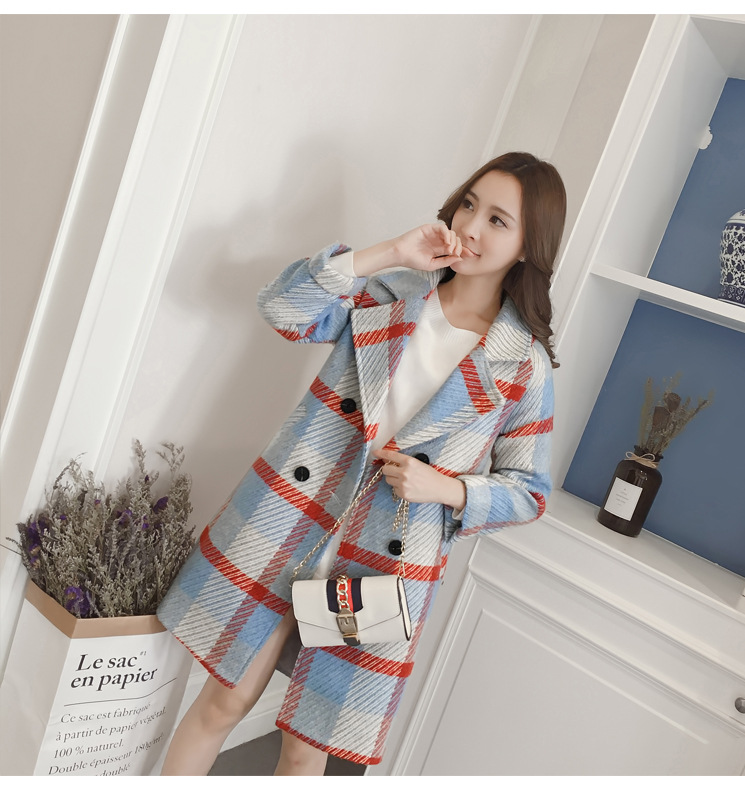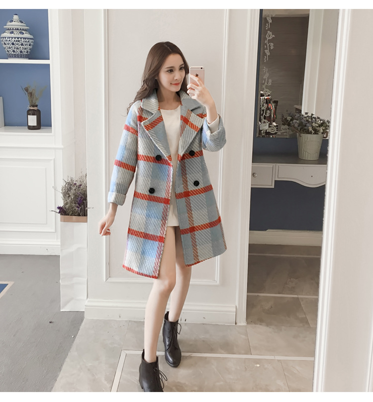 【女士外套】冬装新款韩版中长款宽松格子过膝呢子外套女潮