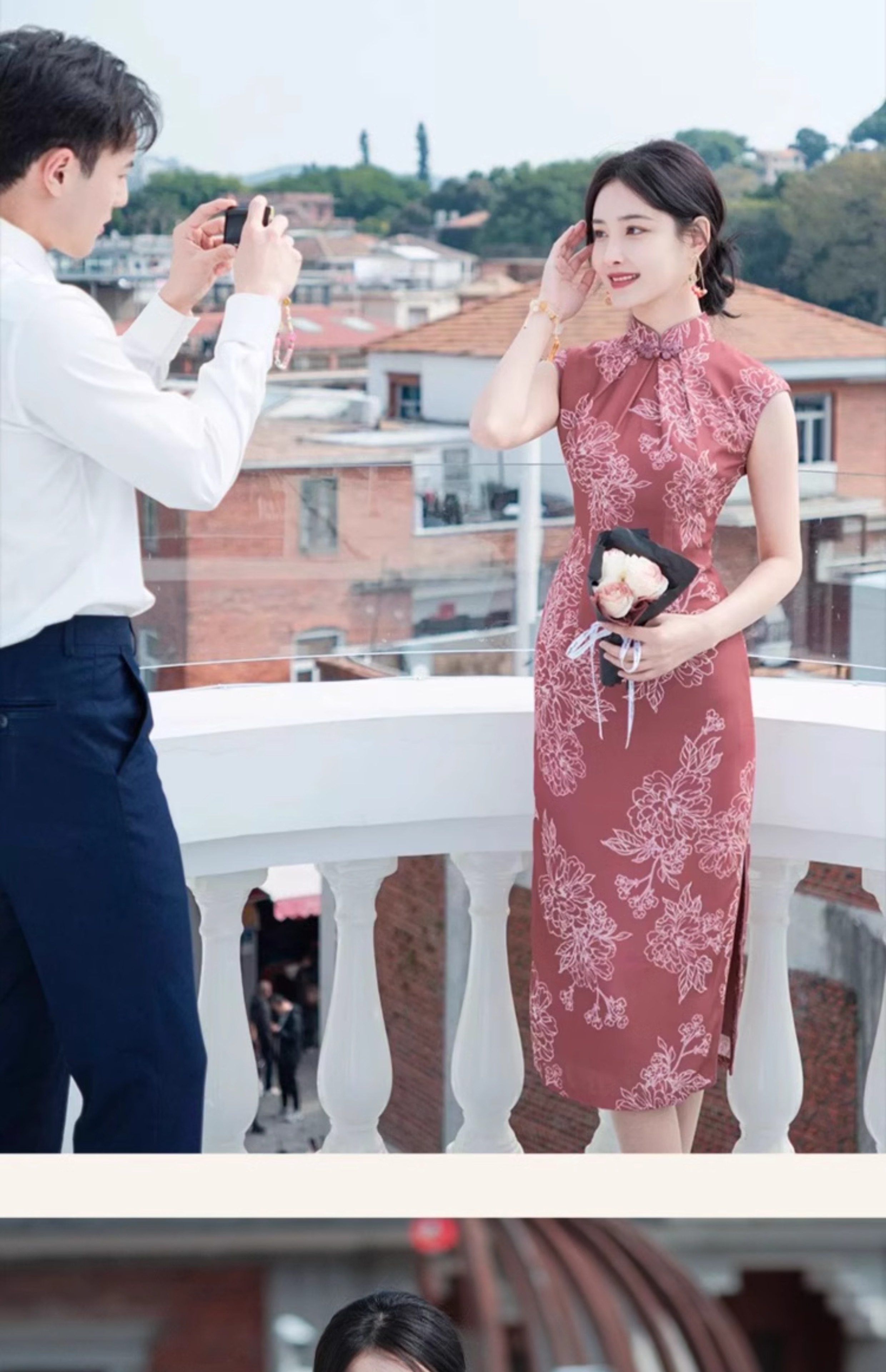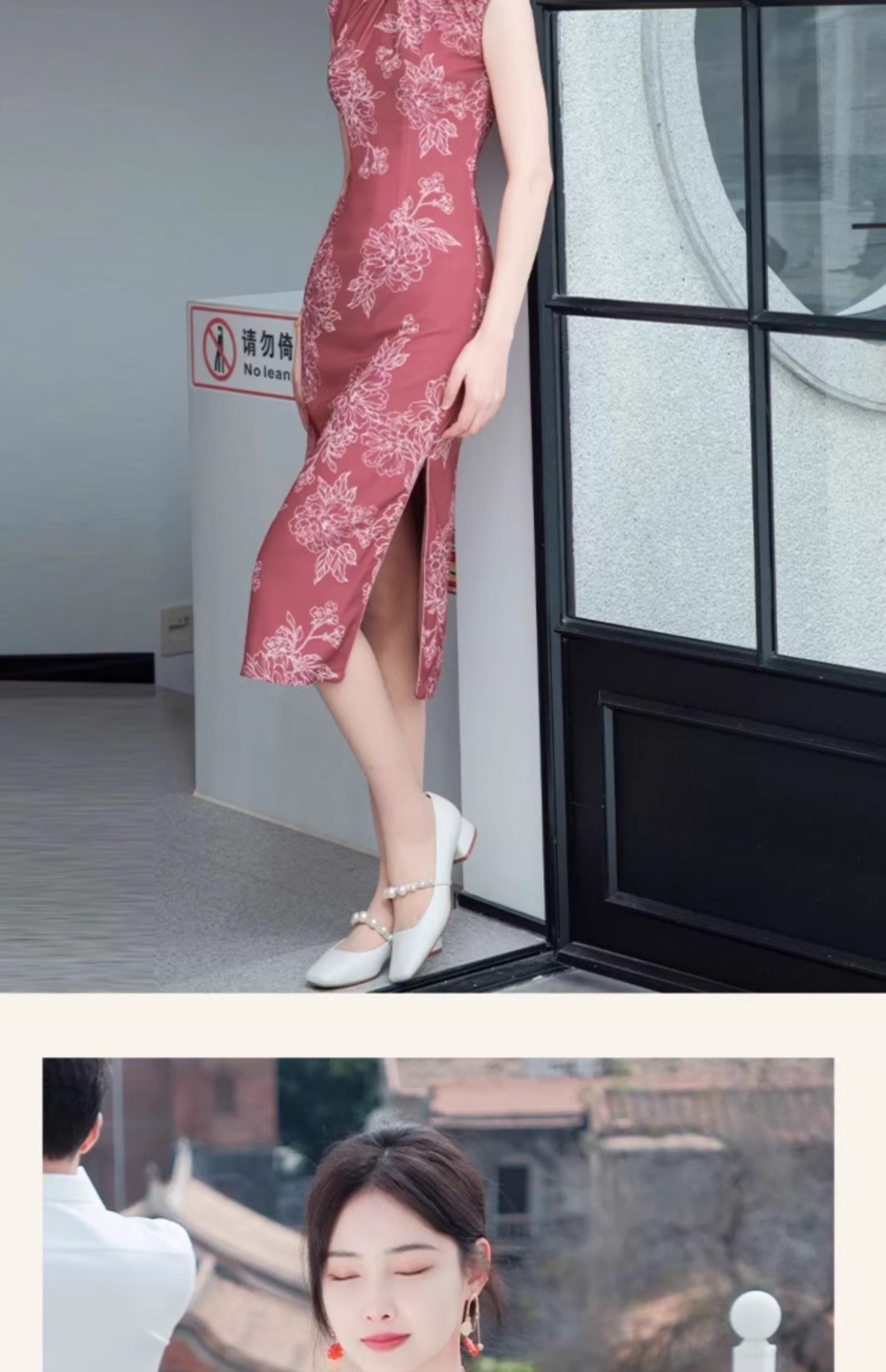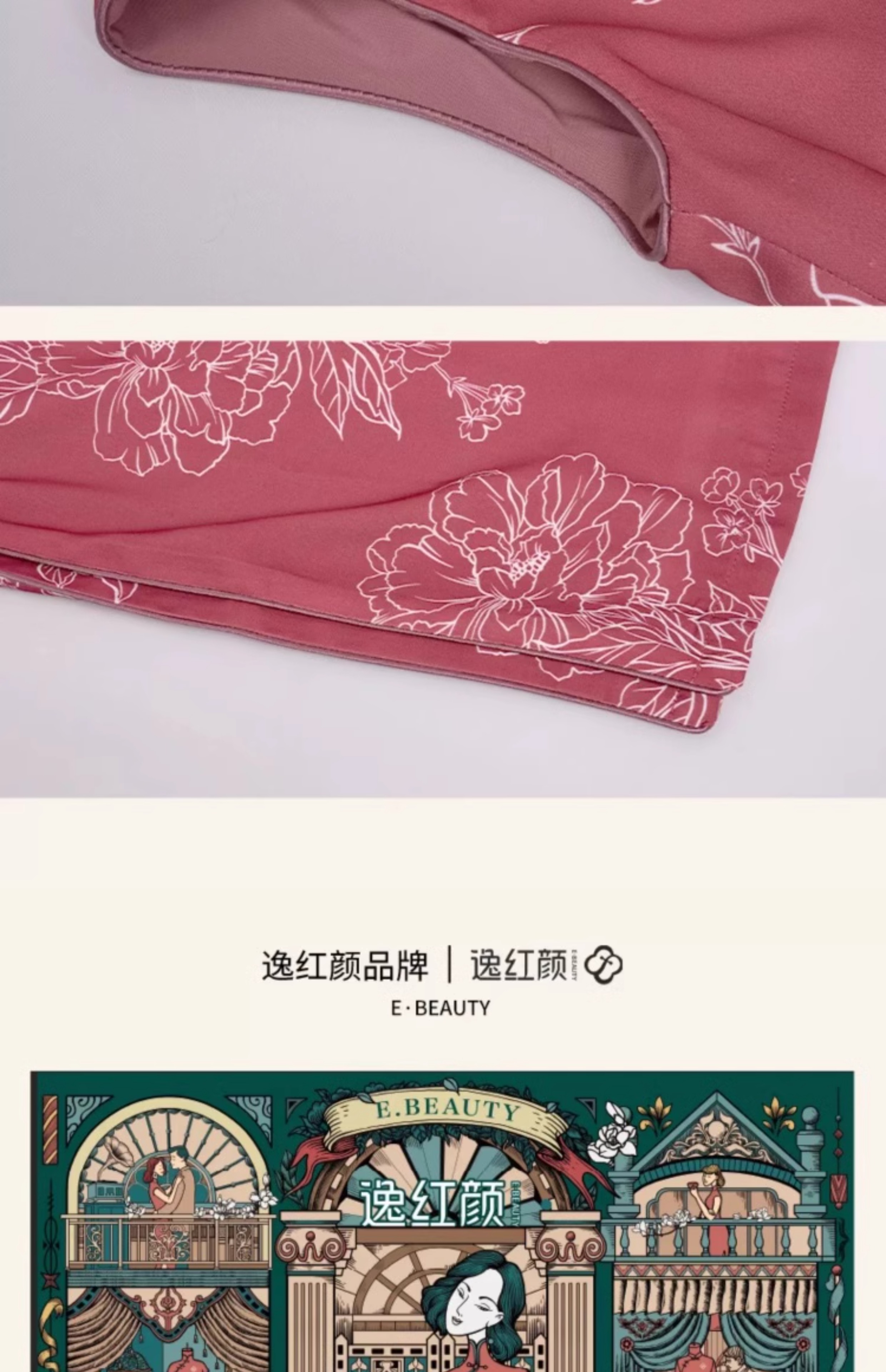 逸红颜相思子2025年夏新款极简风柔和舒适微弹雪纺都市改良旗袍女