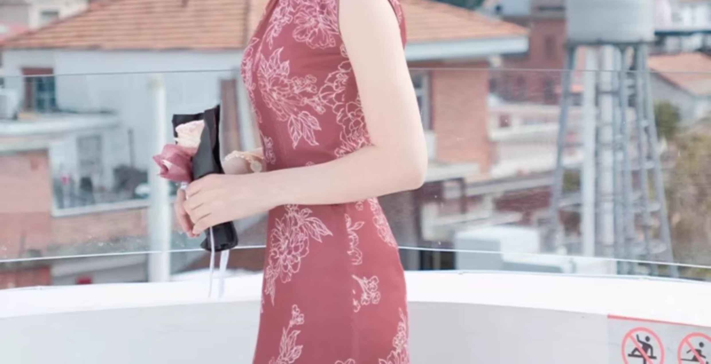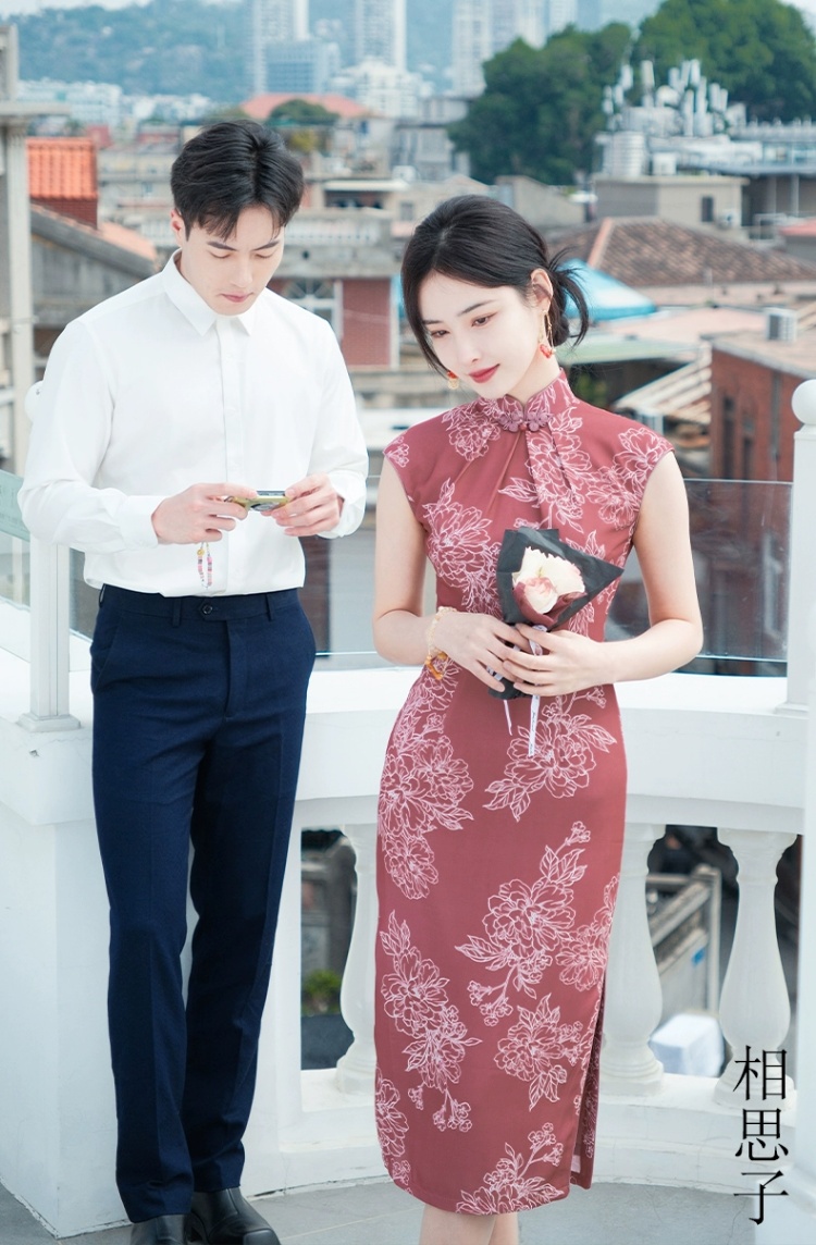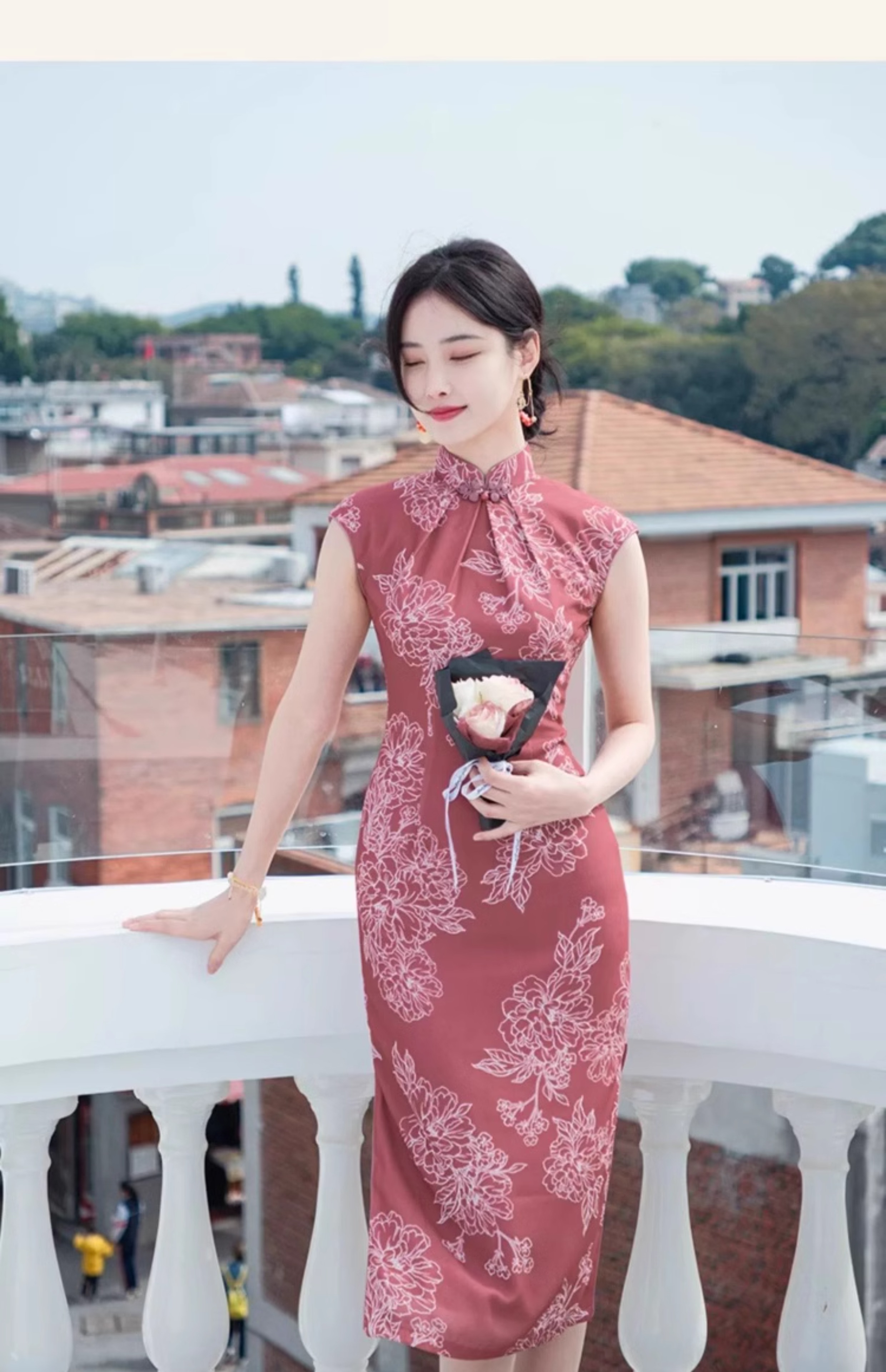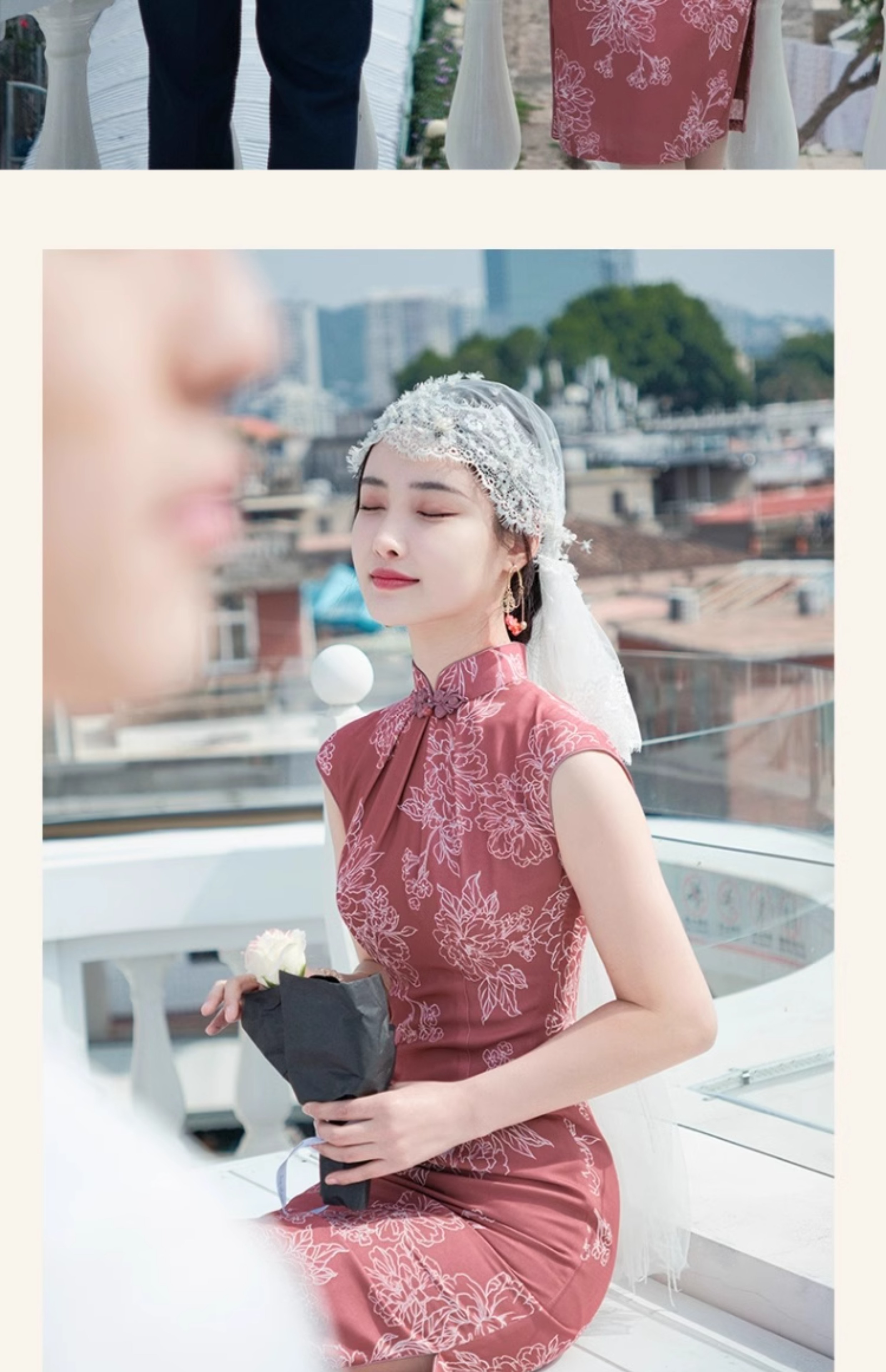 逸红颜相思子2025年夏新款极简风柔和舒适微弹雪纺都市改良旗袍女