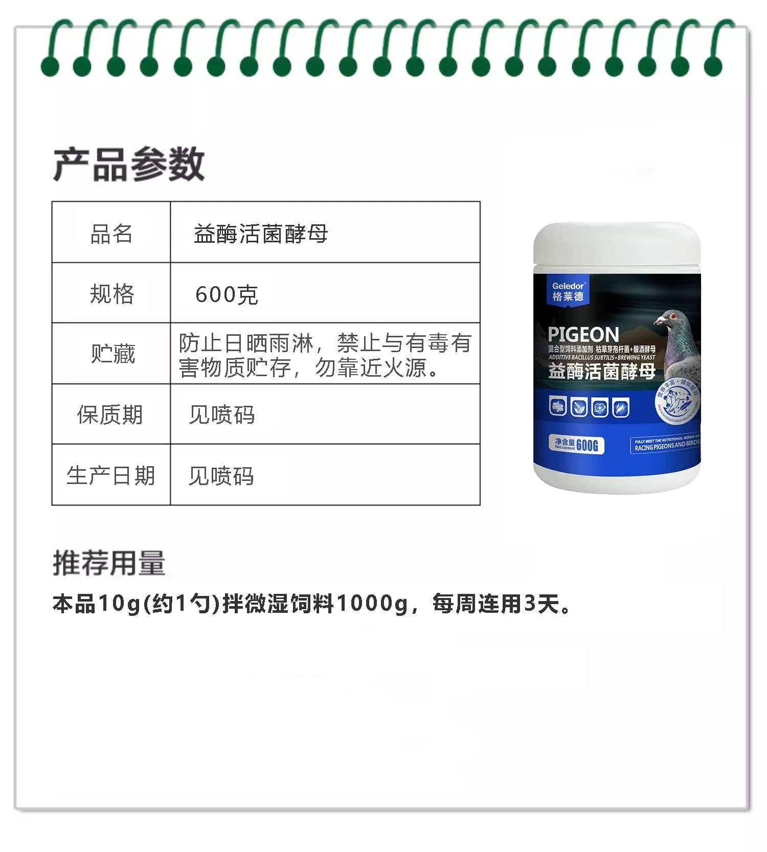 格莱德益酶活菌酵母600克啤酒酵母百益活菌赛鸽信鸽鸽子日常保健