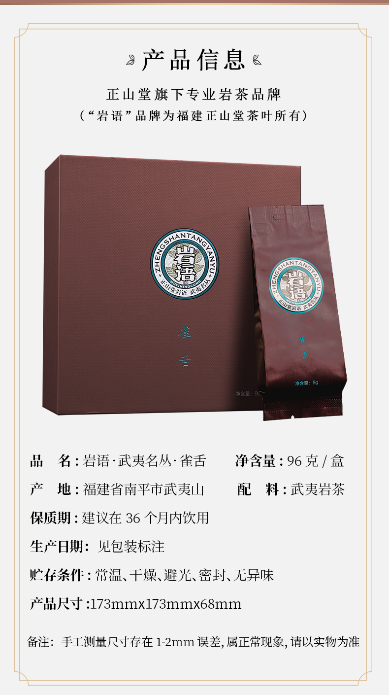 岩语 雀舌 栀子花香武夷茗丛特级礼盒装送礼大红袍乌龙茶叶岩茶96g