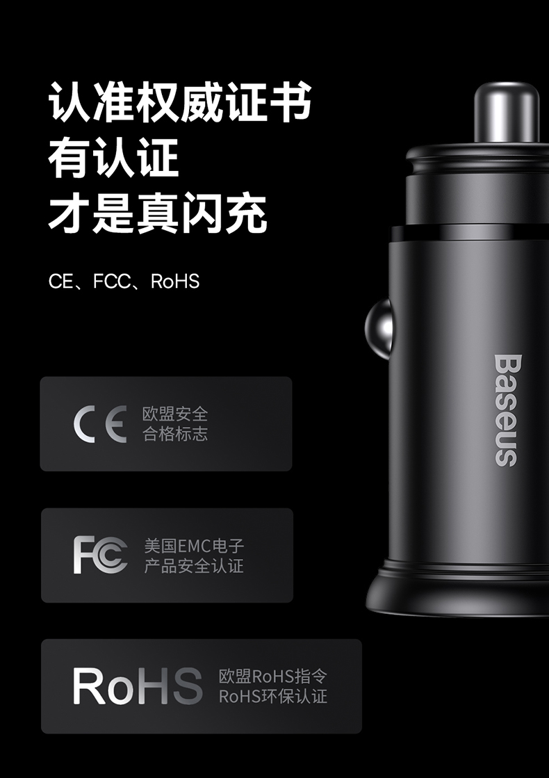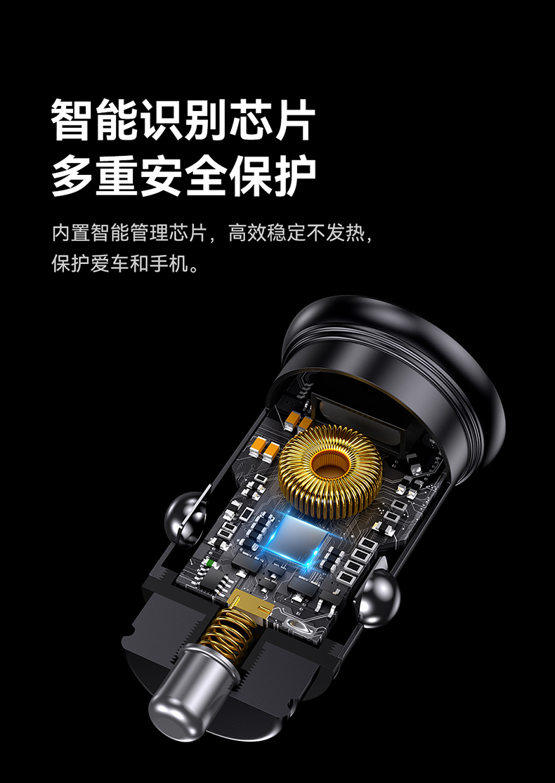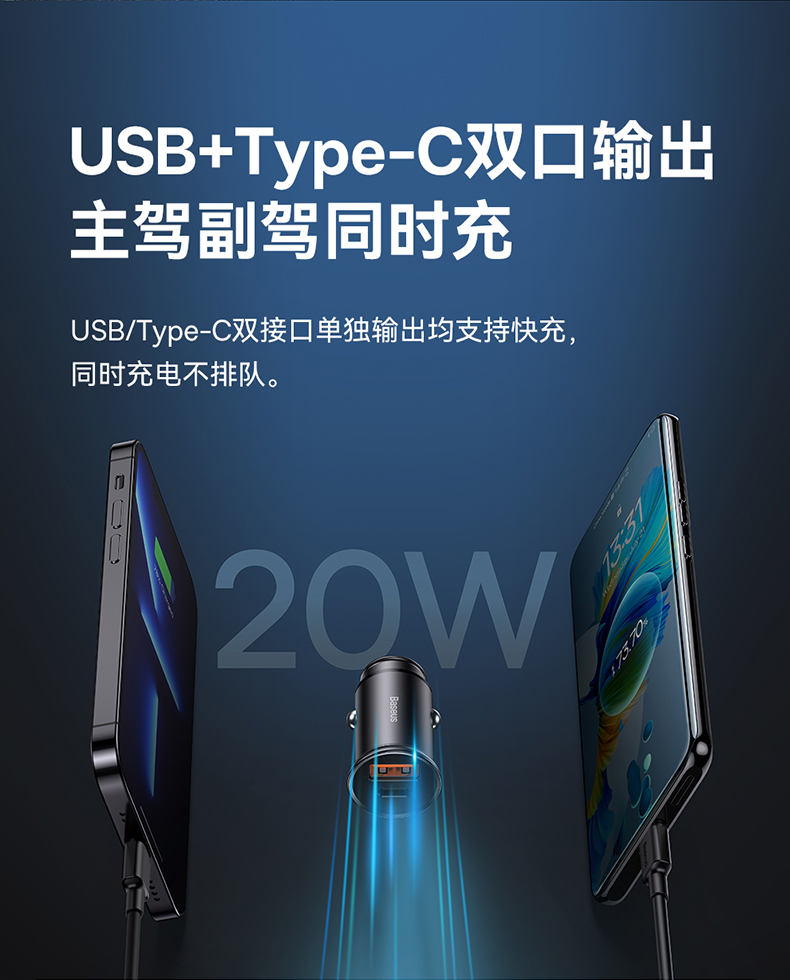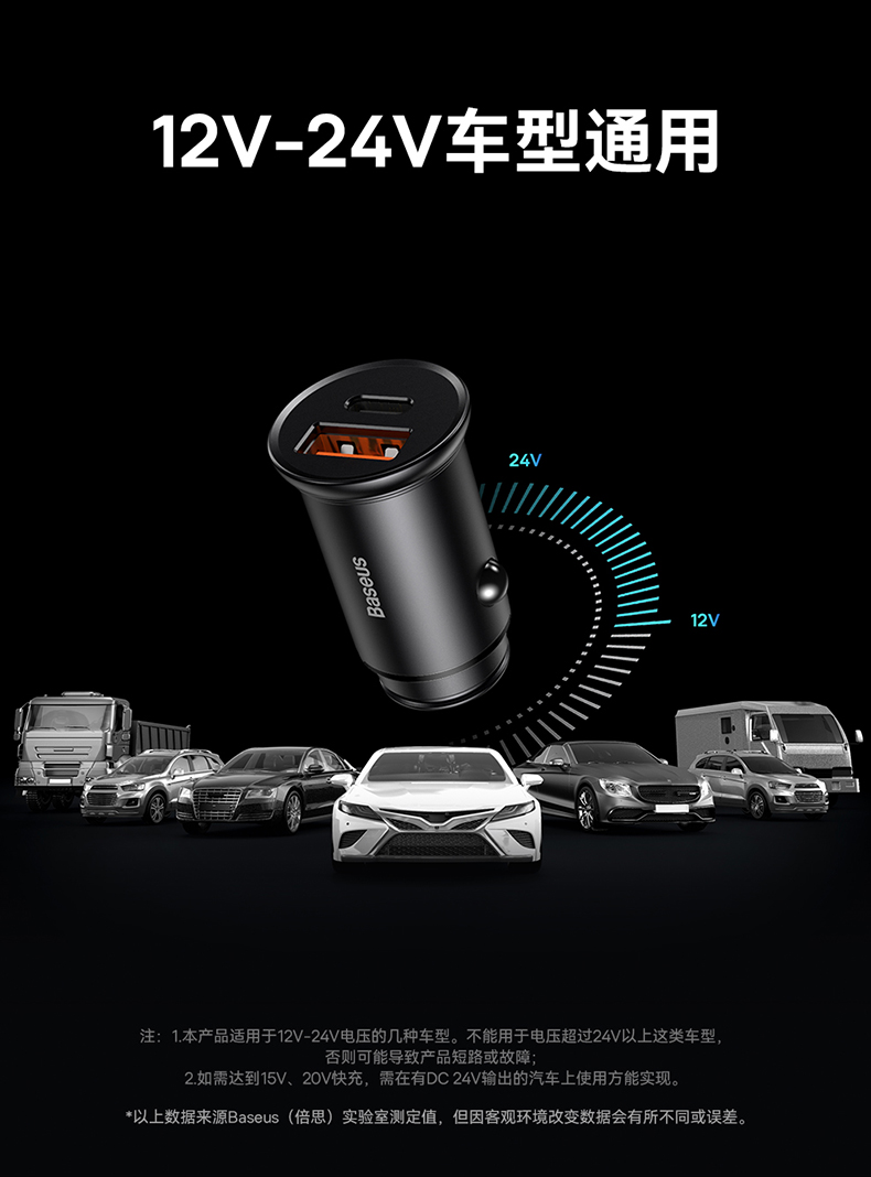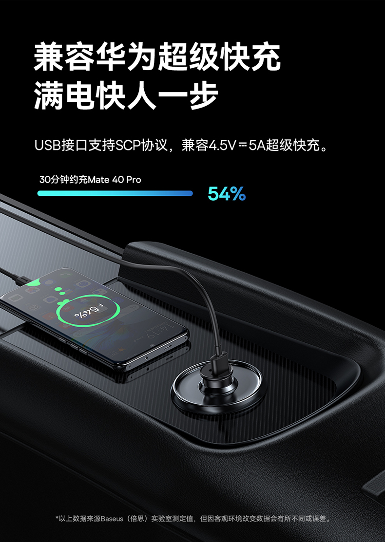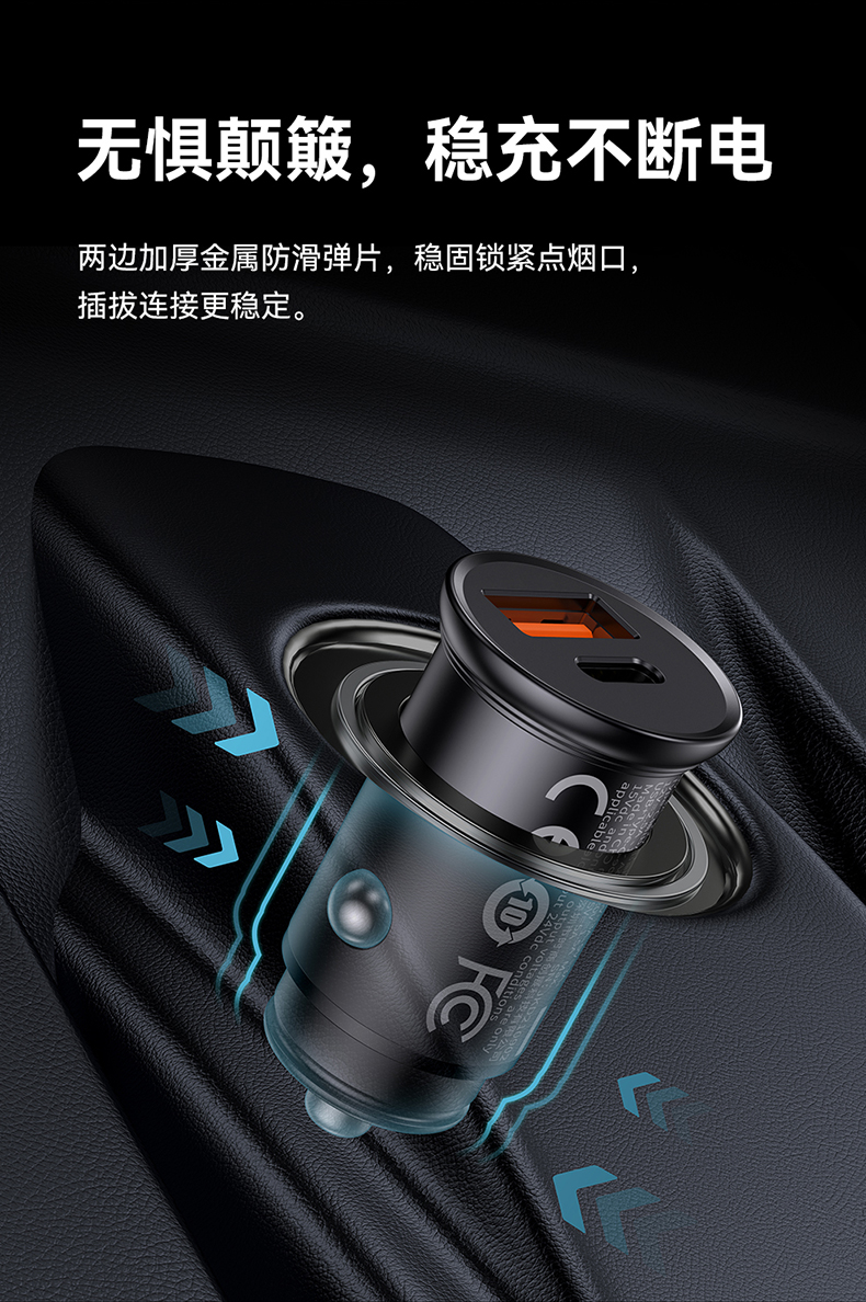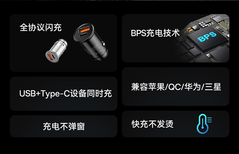 倍思 圆形金属 A+C 30W PPS版 智能快充 车载充电器(支持PD3.0、QC4.0+SCP、AFC)