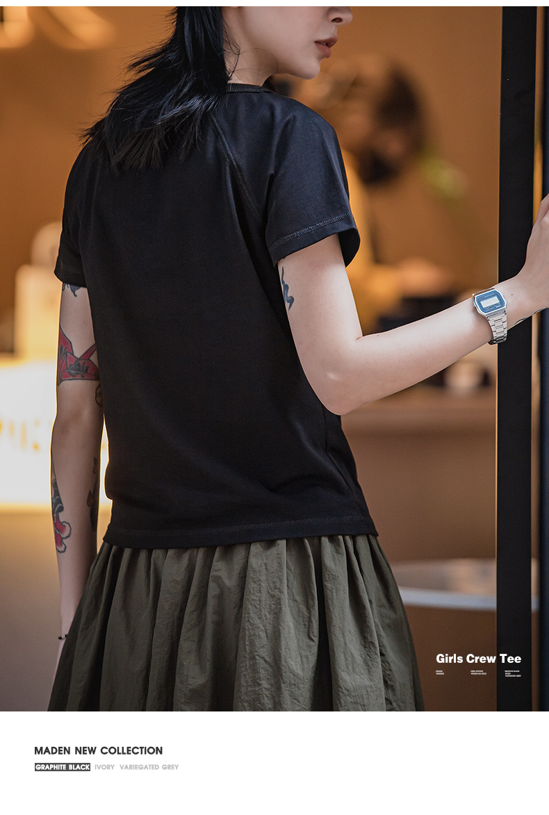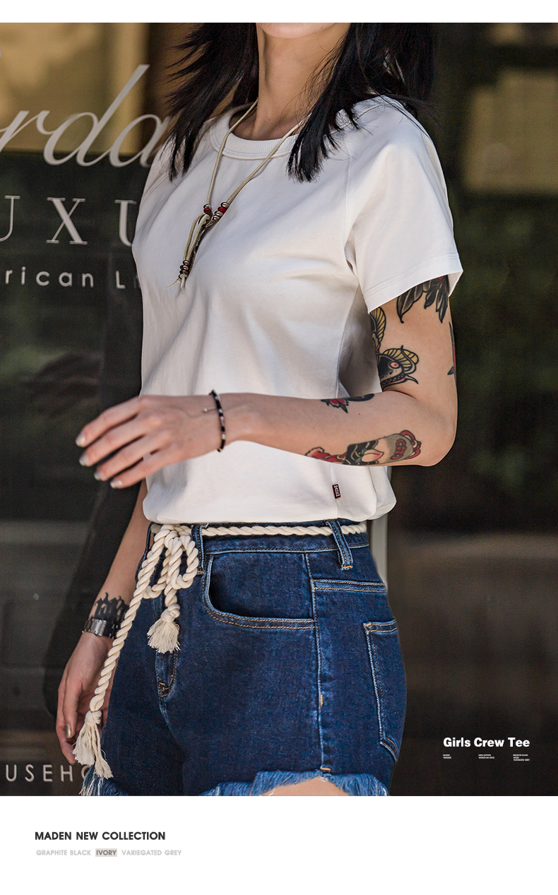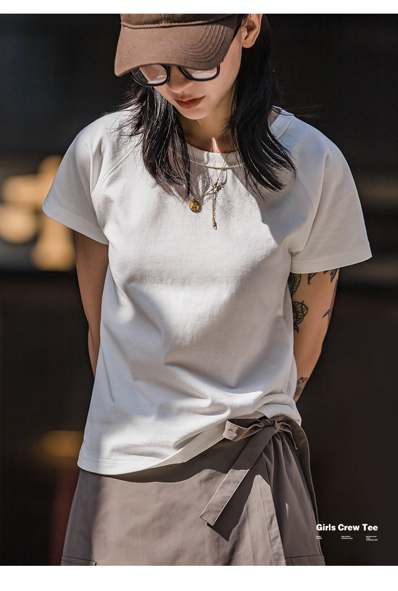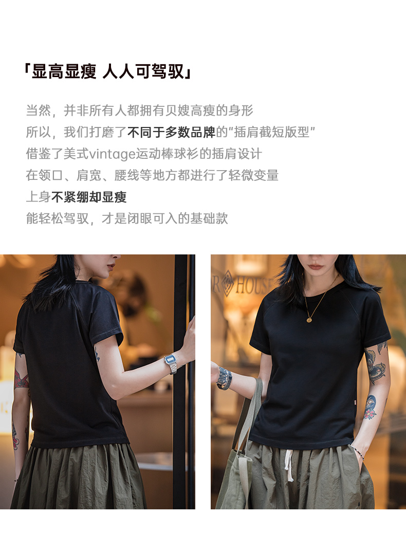 马登夏季美式简约基础纯棉白色插肩短袖正肩t恤显瘦打底修身女