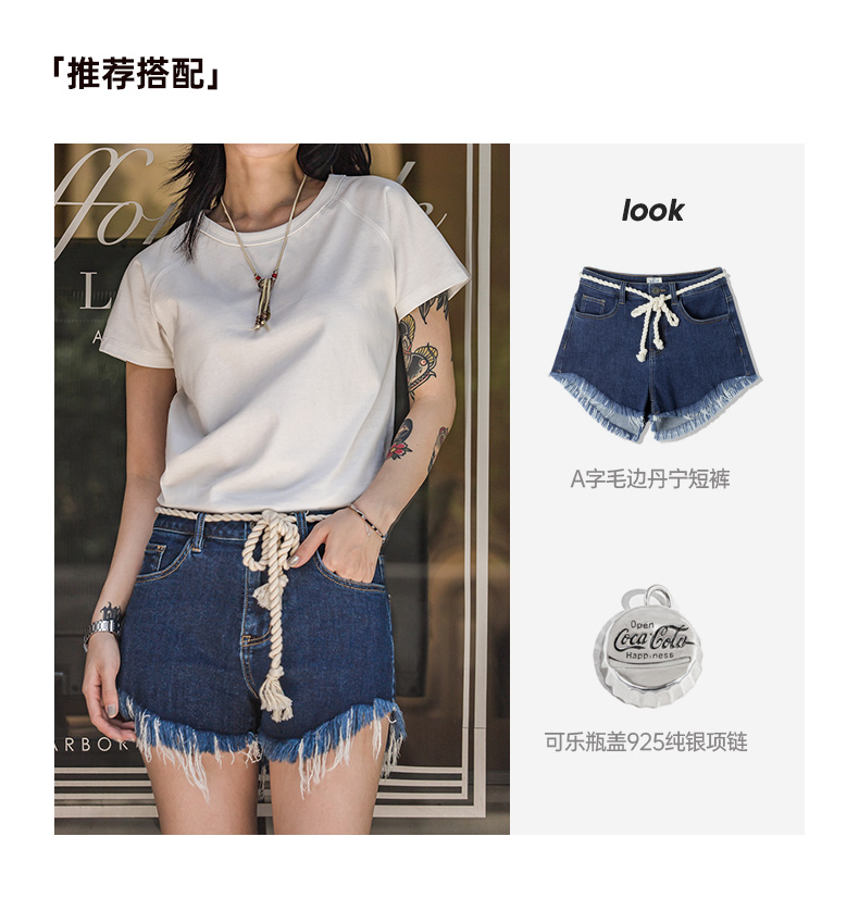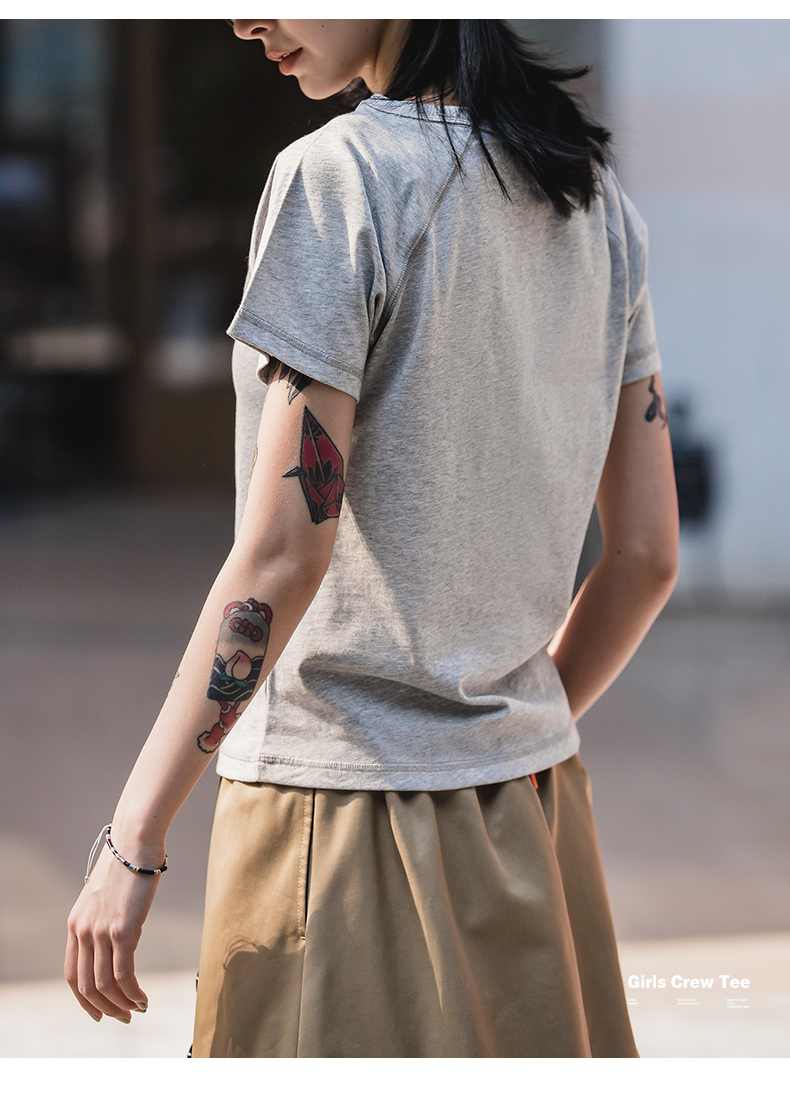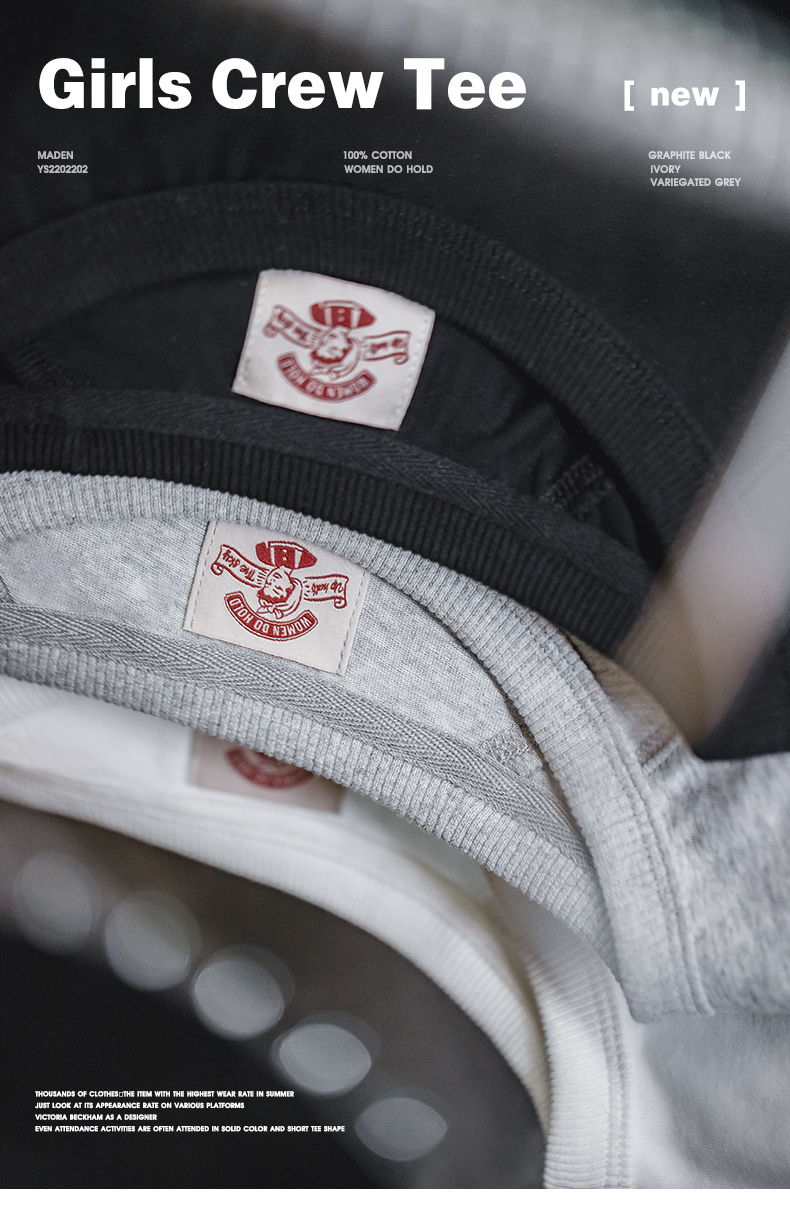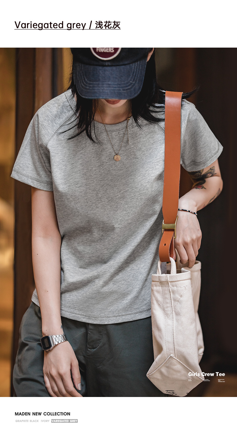 马登夏季美式简约基础纯棉白色插肩短袖正肩t恤显瘦打底修身女