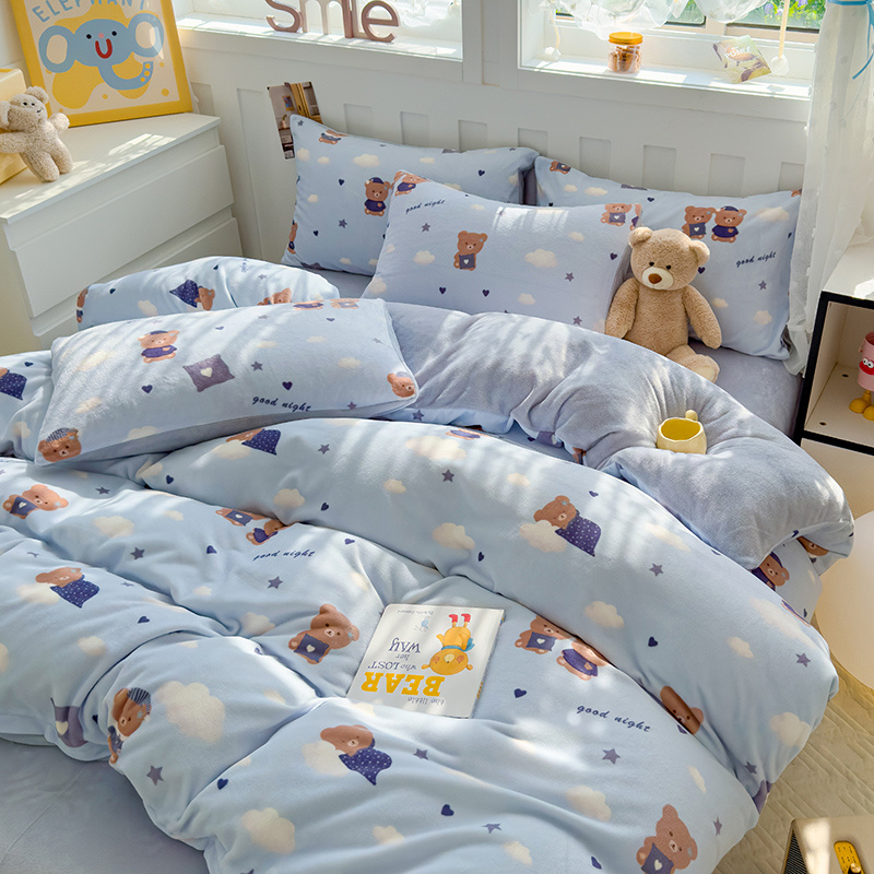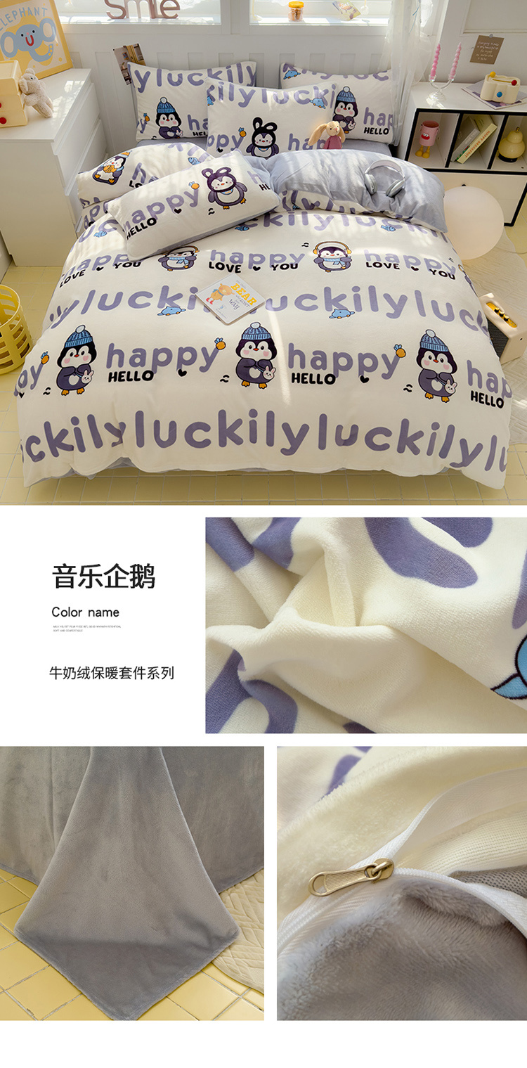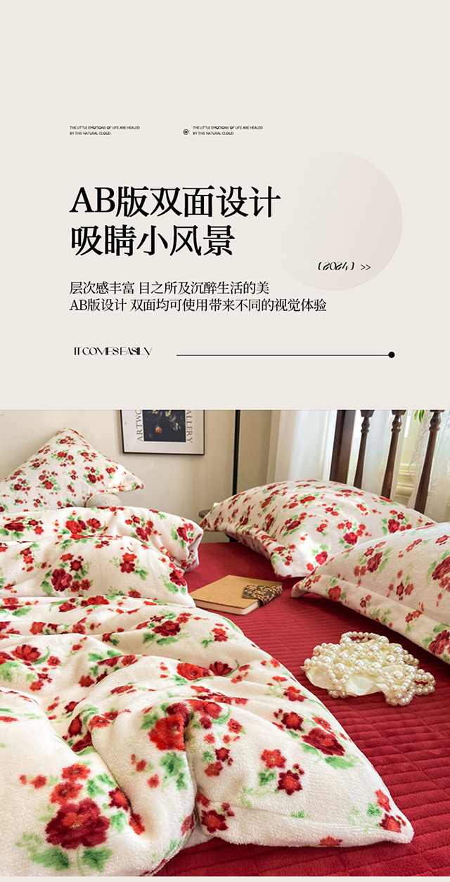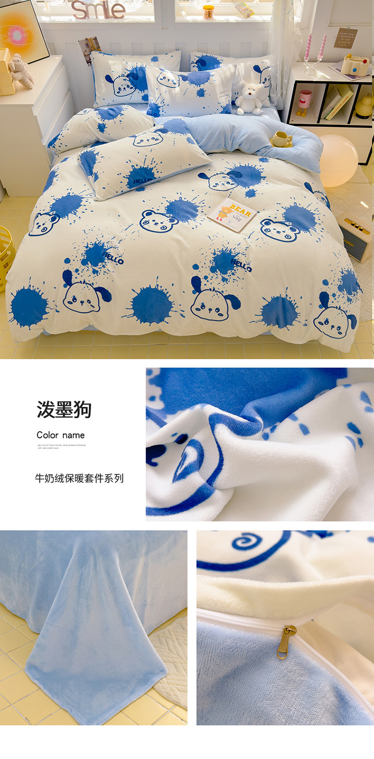 降温换新【全尚 牛奶绒四件套 床单款&床盖款】A类母婴级别 高克重的牛奶绒 不起静电 多个花色可选 AB双面设计 高级感床盖