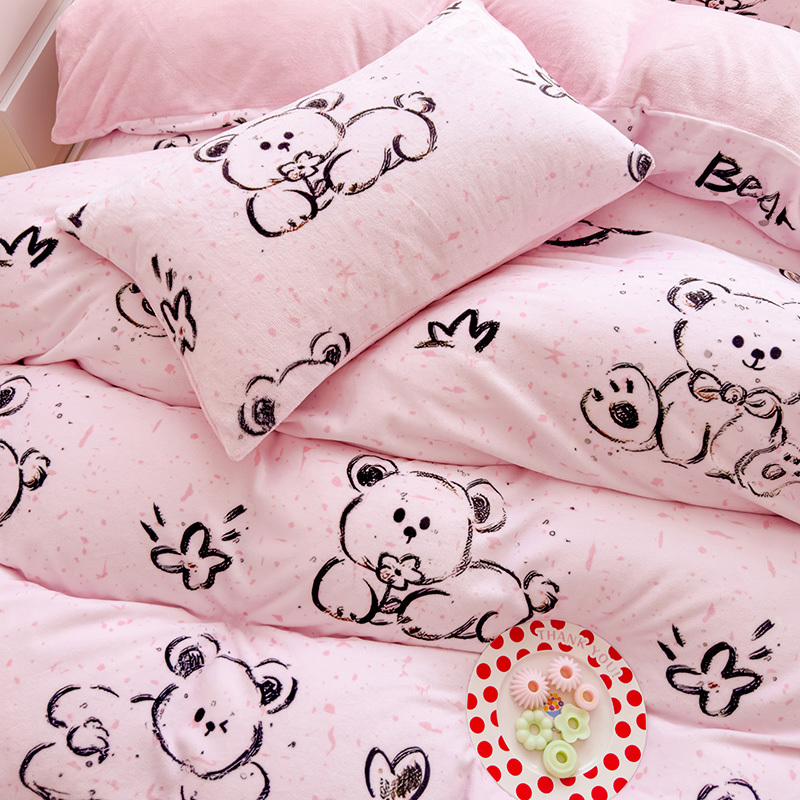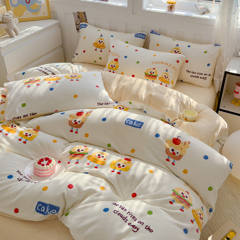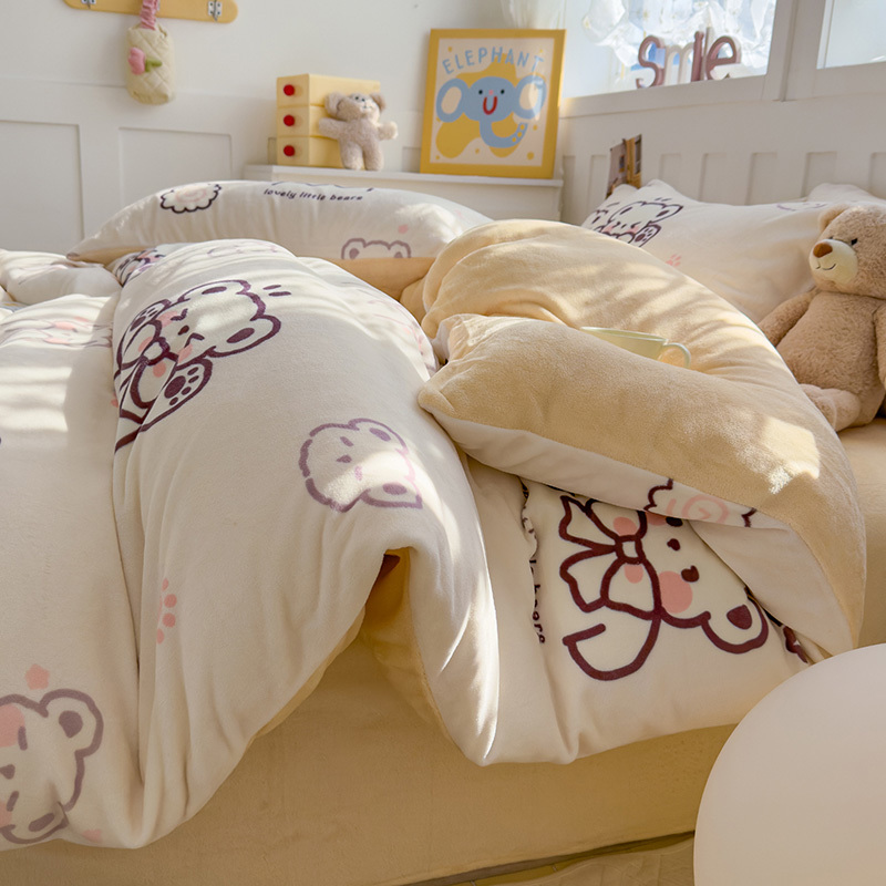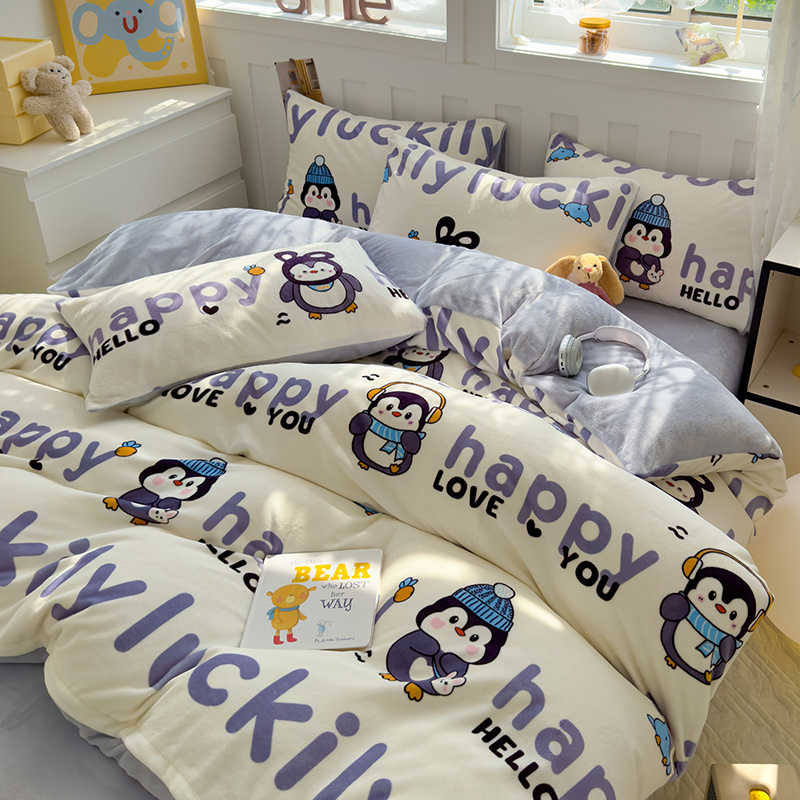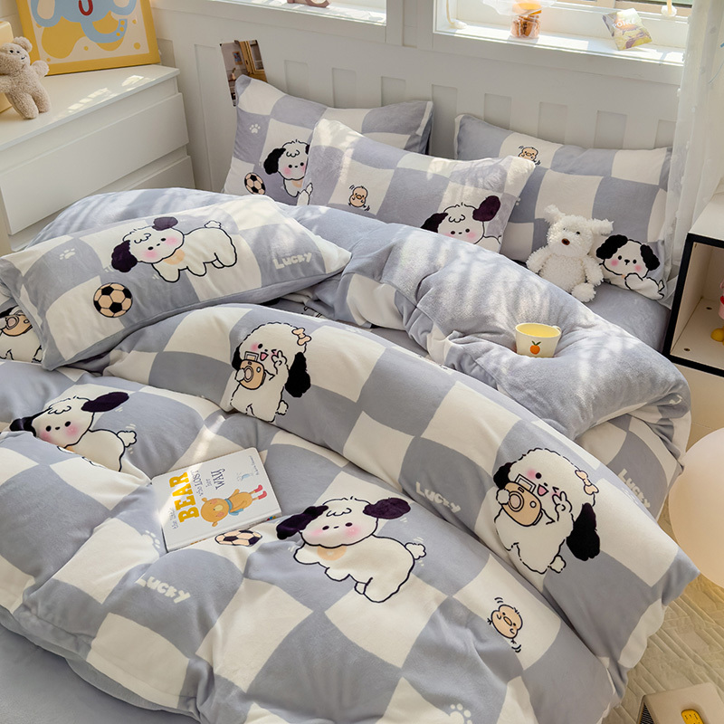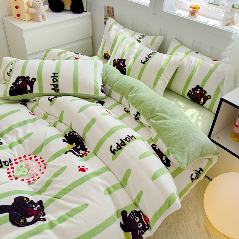 降温换新【全尚 牛奶绒四件套 床单款&床盖款】A类母婴级别 高克重的牛奶绒 不起静电 多个花色可选 AB双面设计 高级感床盖