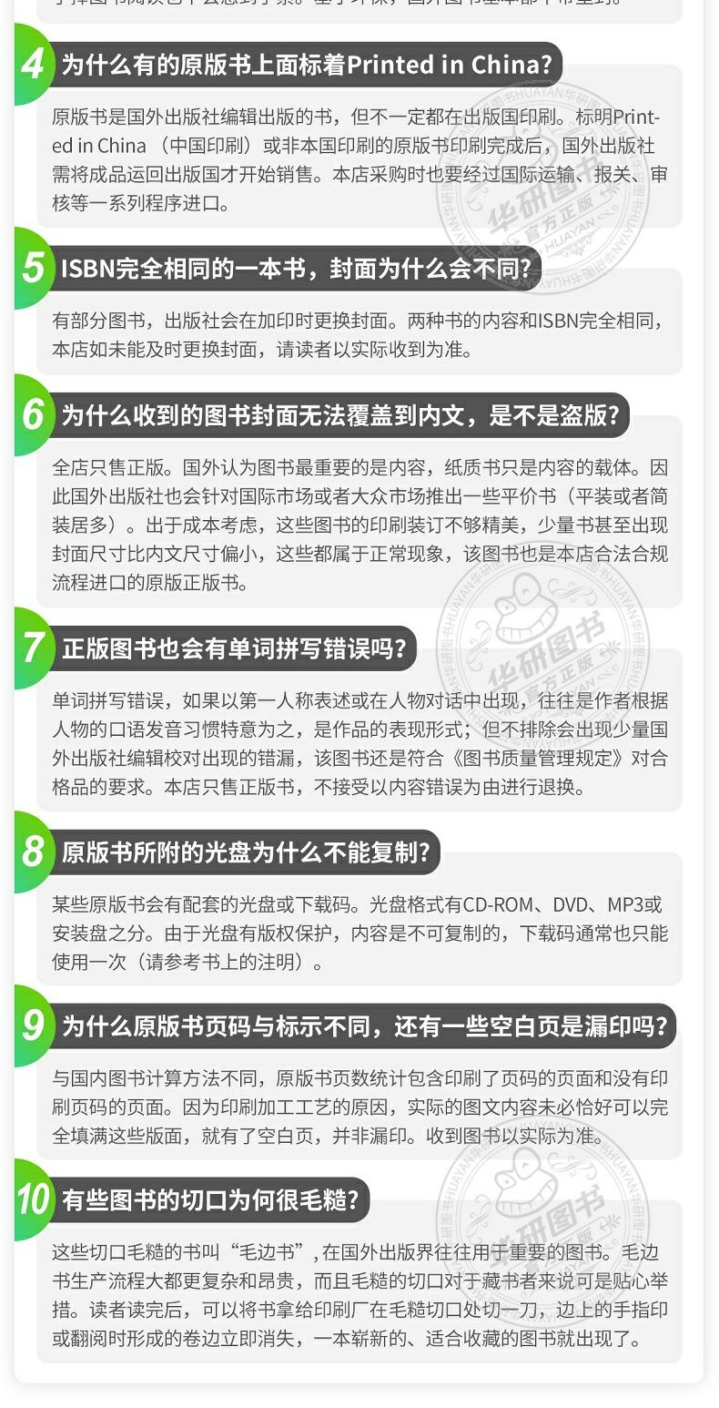 - 本店是“华研外语”品牌商自营店,全国所有“华研外语”、“华研教育”品牌图书都是我司出版发行的,本店为华研官方源头出货,所有图书均为正规正版,拥有实惠与正版的保障!!!