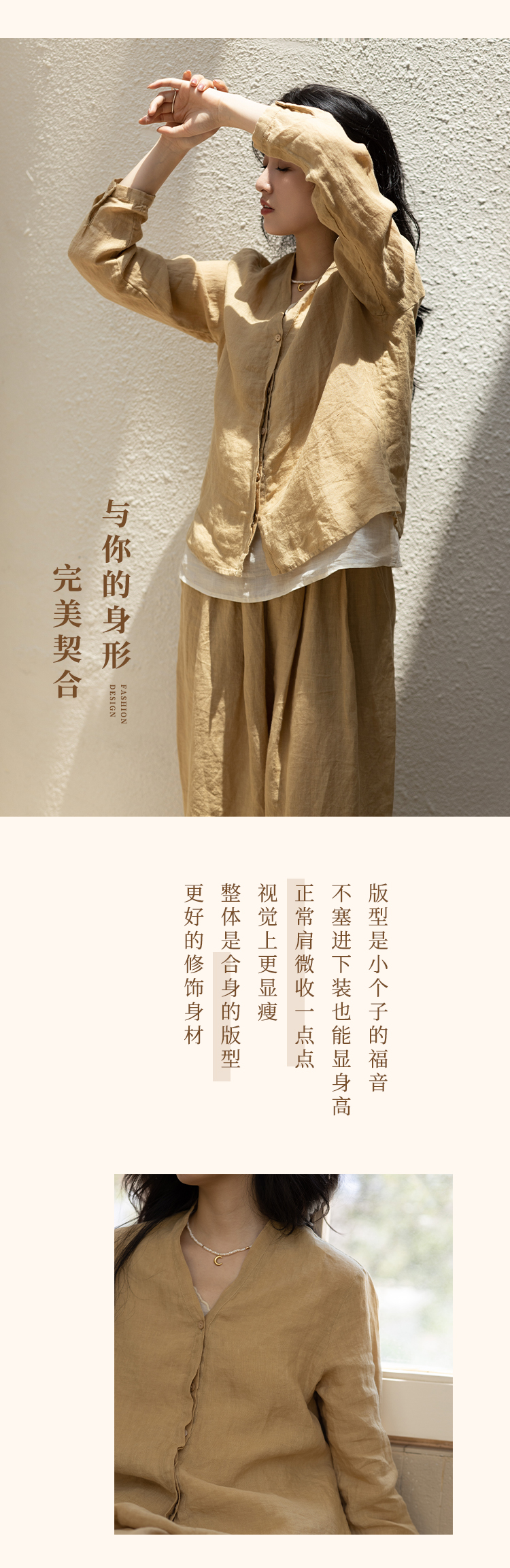 绽放409朵【甜茶系列·黄茶】薄款舒适防晒亚麻衬衫