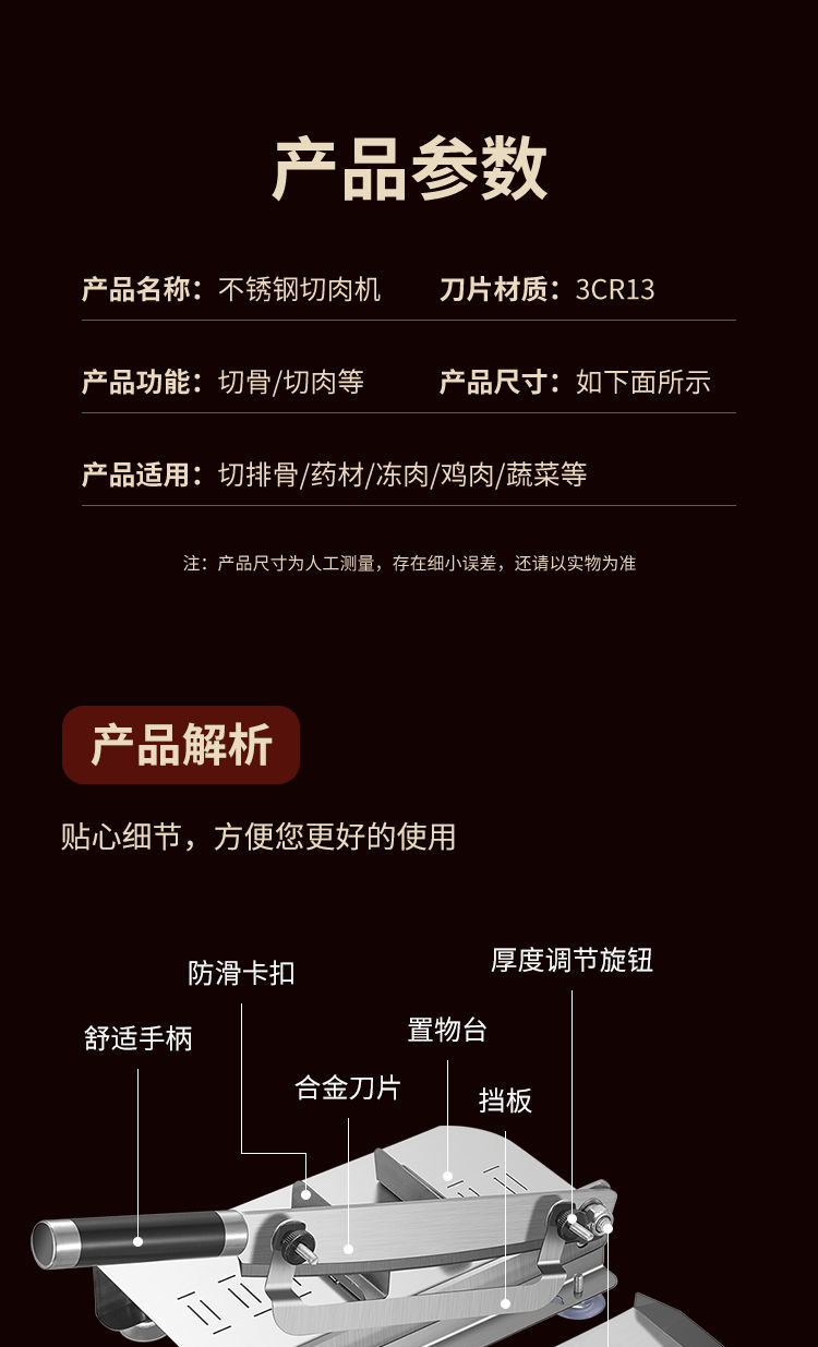羊肉卷切片刀斩骨刀可调节冻肉切片机切年糕药材砍鸡鸭多功能刀