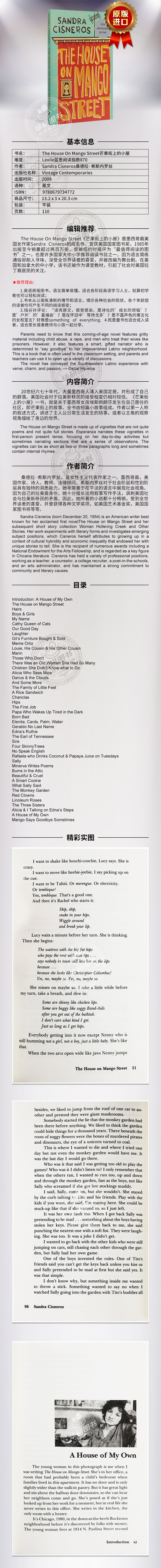 书名:The House On Mango Street芒果街上的小屋