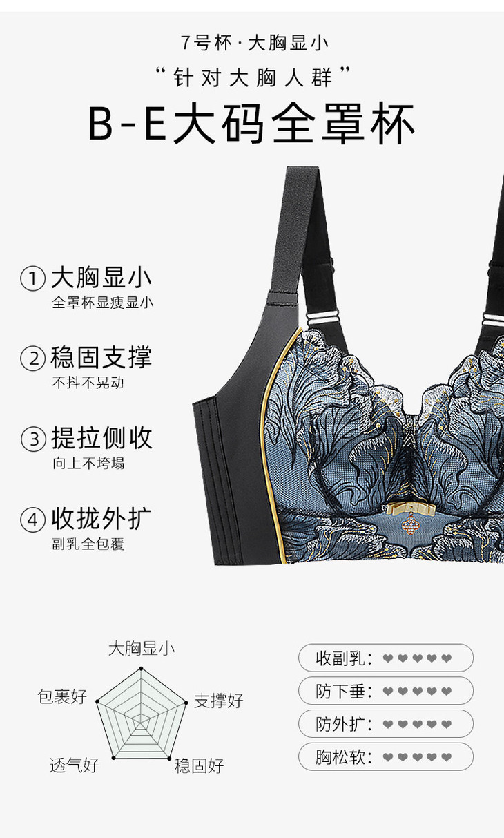 D4-【B-E杯】【院线大胸显小】7号薄杯植萃茶肌专利抑菌,薄至0.3cm调整型文胸 绮罗香秀【院线-大胸】