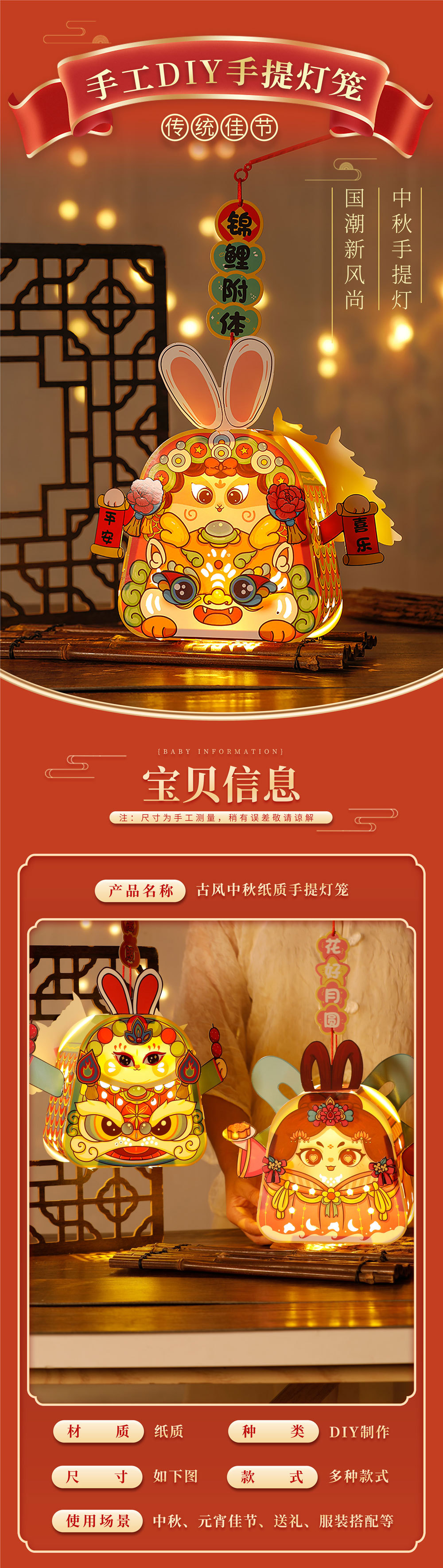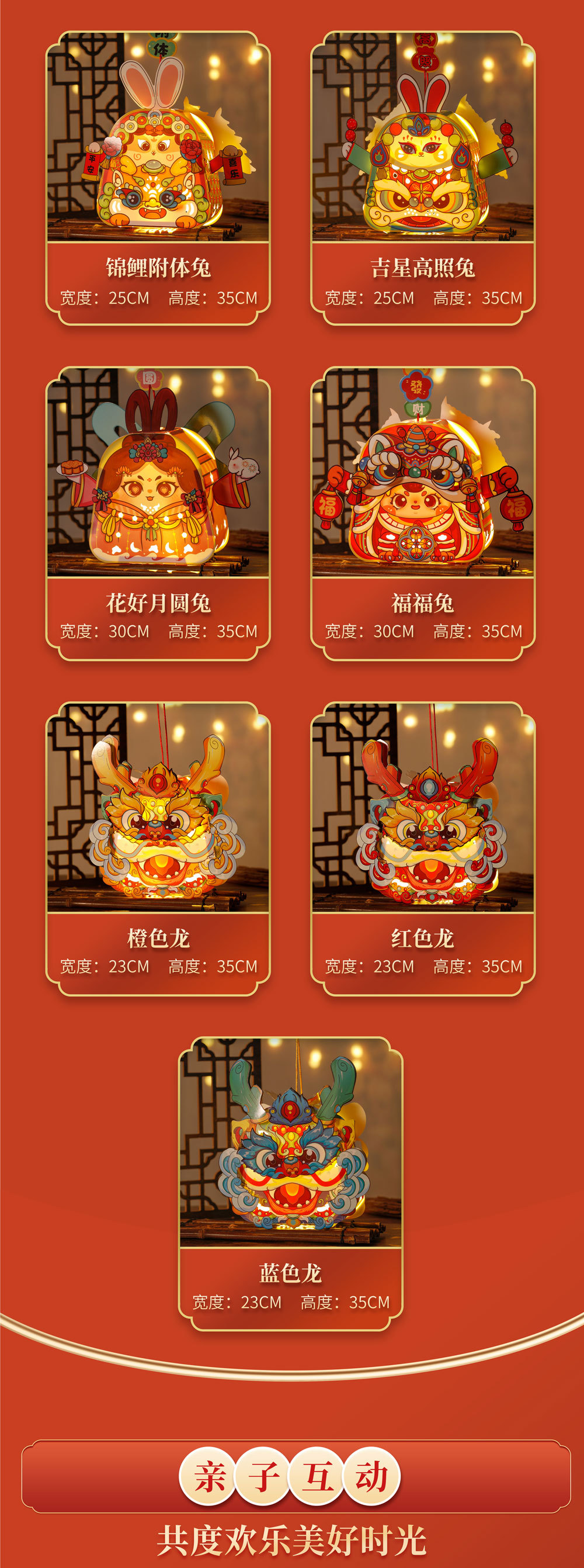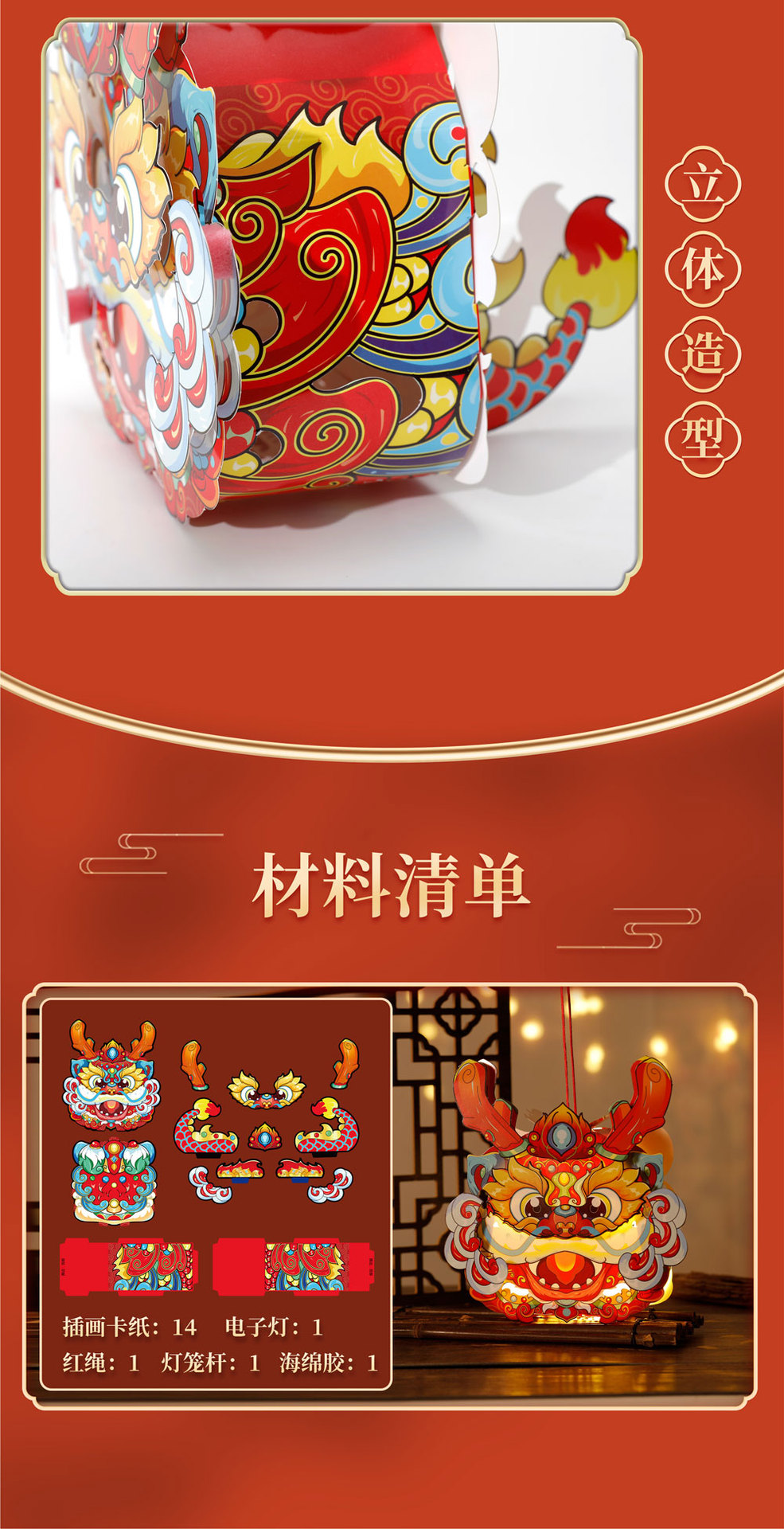 【仙气飘飘的国风手工灯笼 买1送1 到手2件!】2024儿童卡通国潮龙灯笼 春节diy材料包 龙年手提灯笼