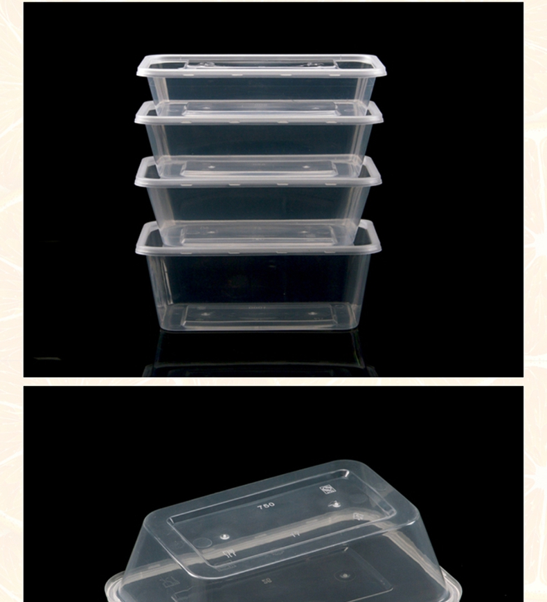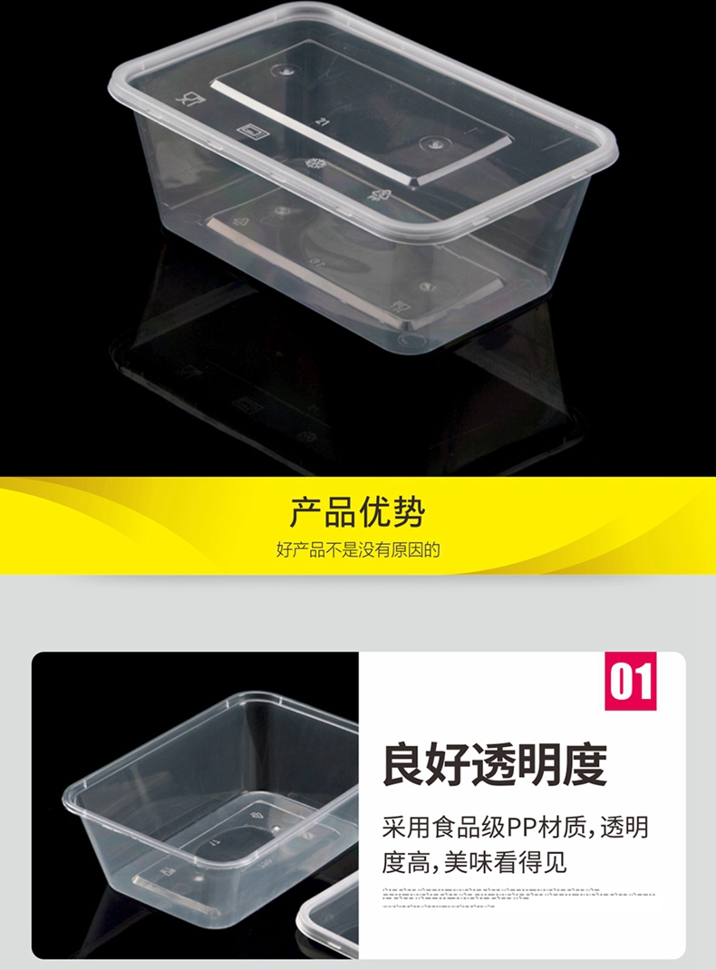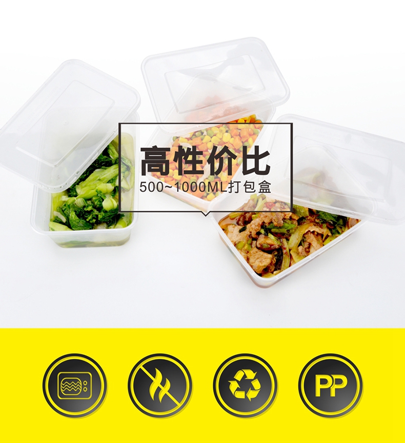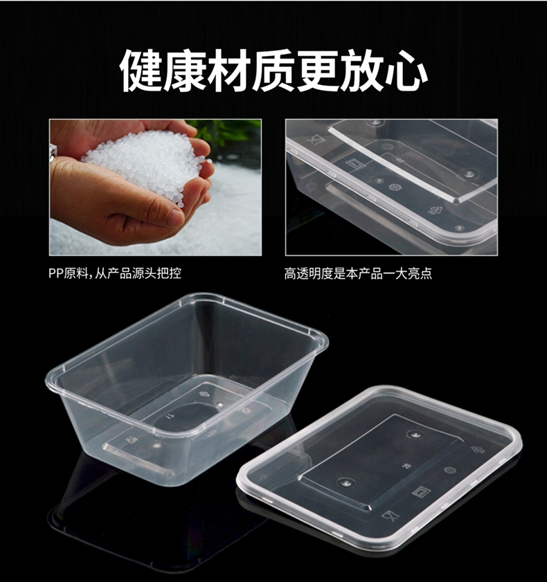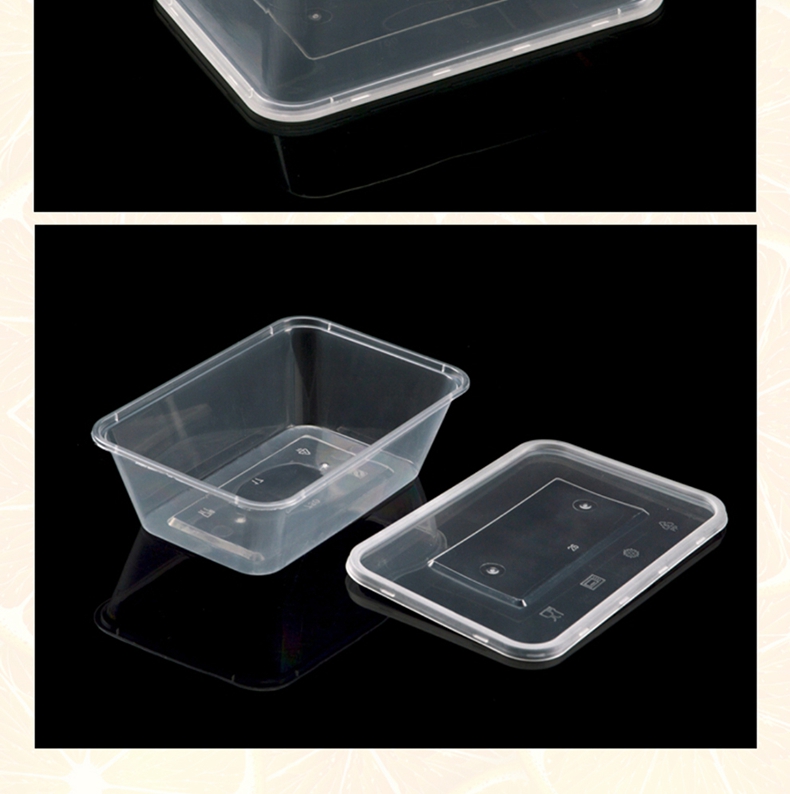 喇叭花一次性餐盒1000ML塑料透明方盒外卖打包盒快餐盒保鲜打包碗
