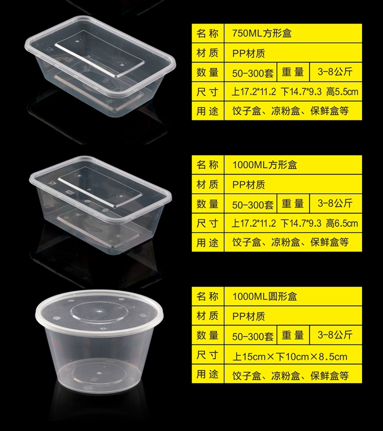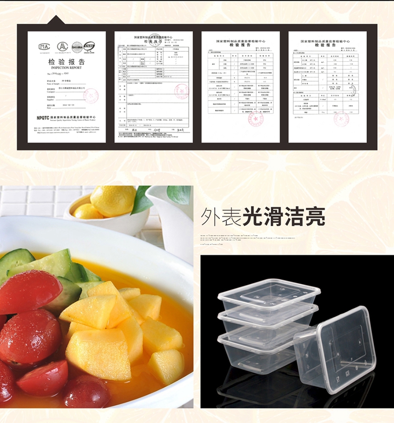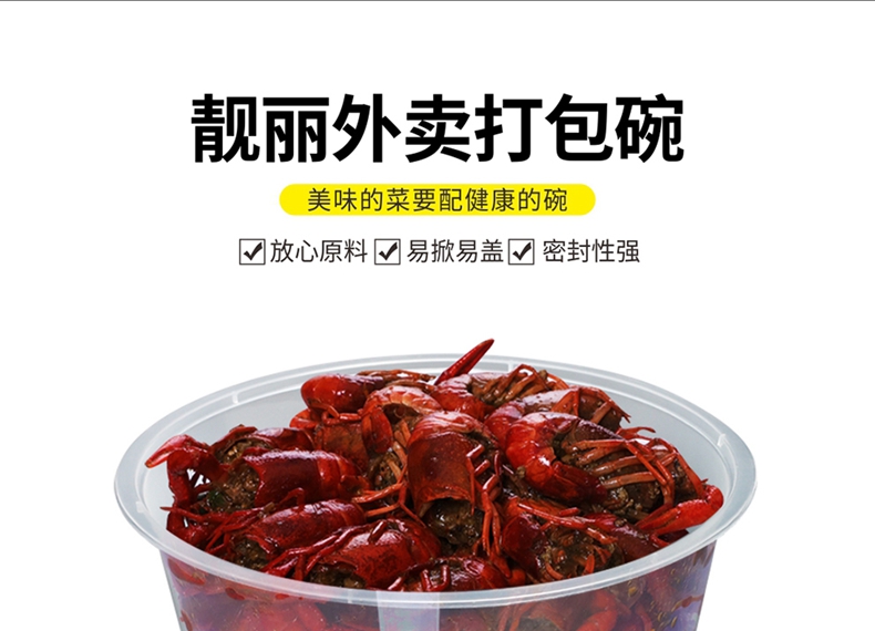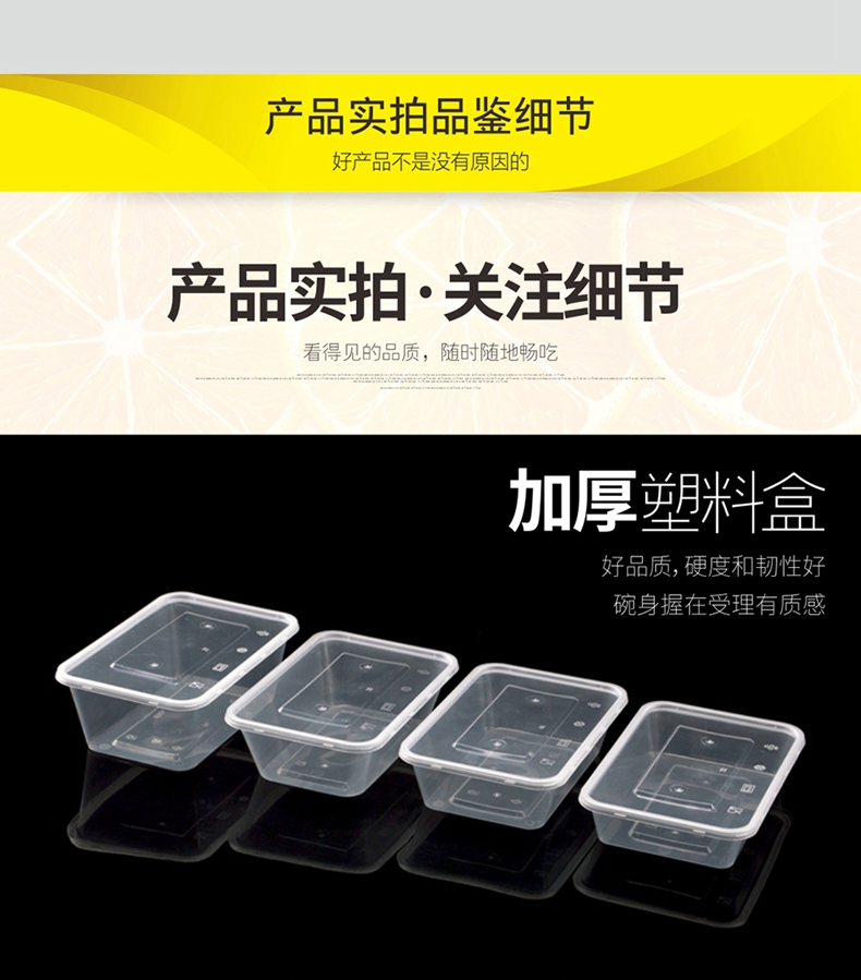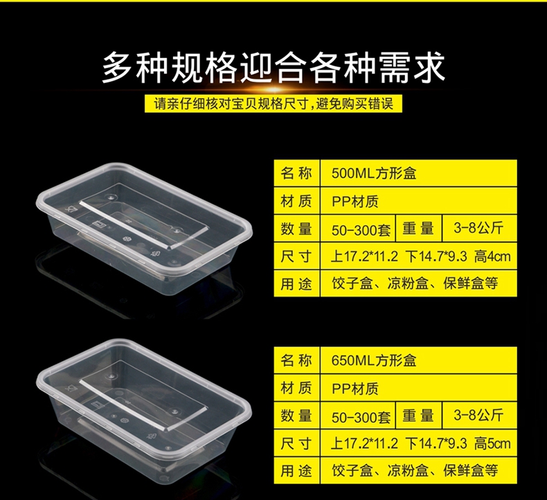 喇叭花一次性餐盒1000ML塑料透明方盒外卖打包盒快餐盒保鲜打包碗