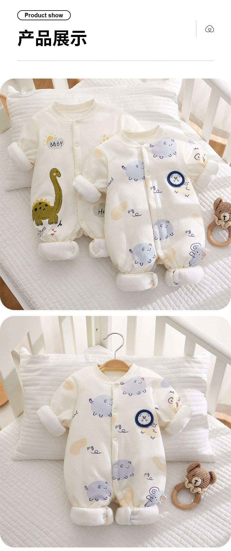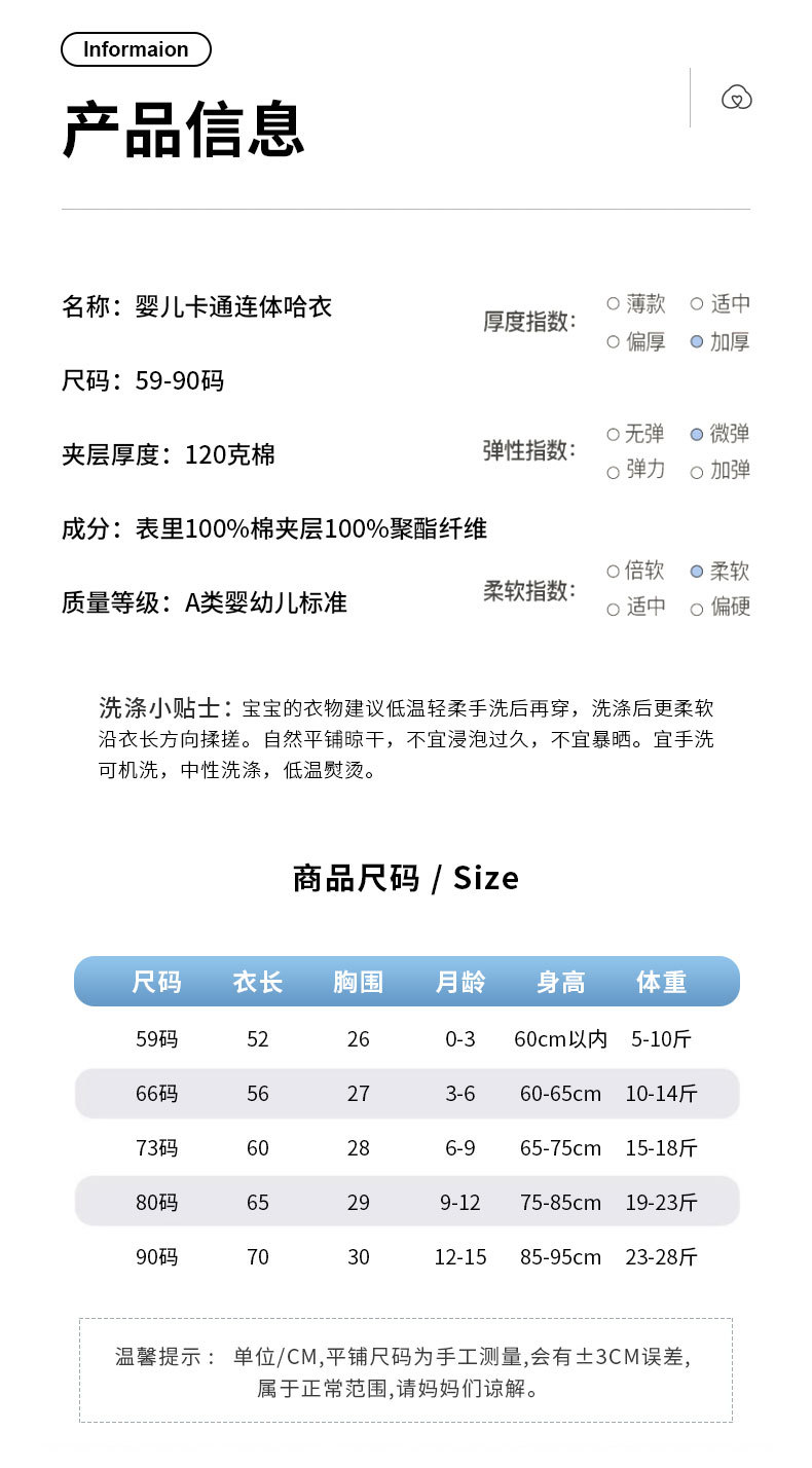【冬季加厚120g棉婴儿连体衣】保暖夹棉冬款宝宝哈衣纯棉衣服婴儿爬服