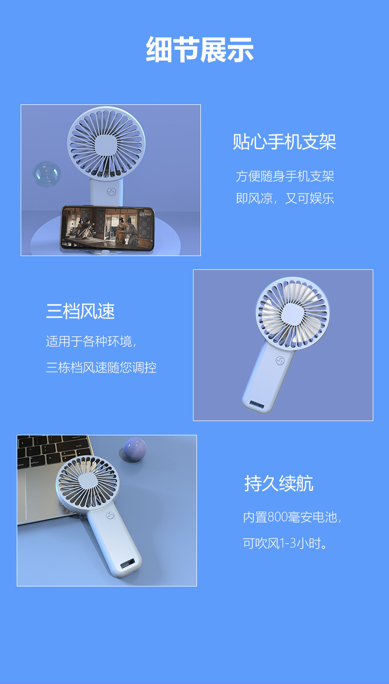 【迷你轻巧便捷 清风随行】2022新款手持风扇 usb充电小风扇 便携迷你宿舍桌面静音礼品