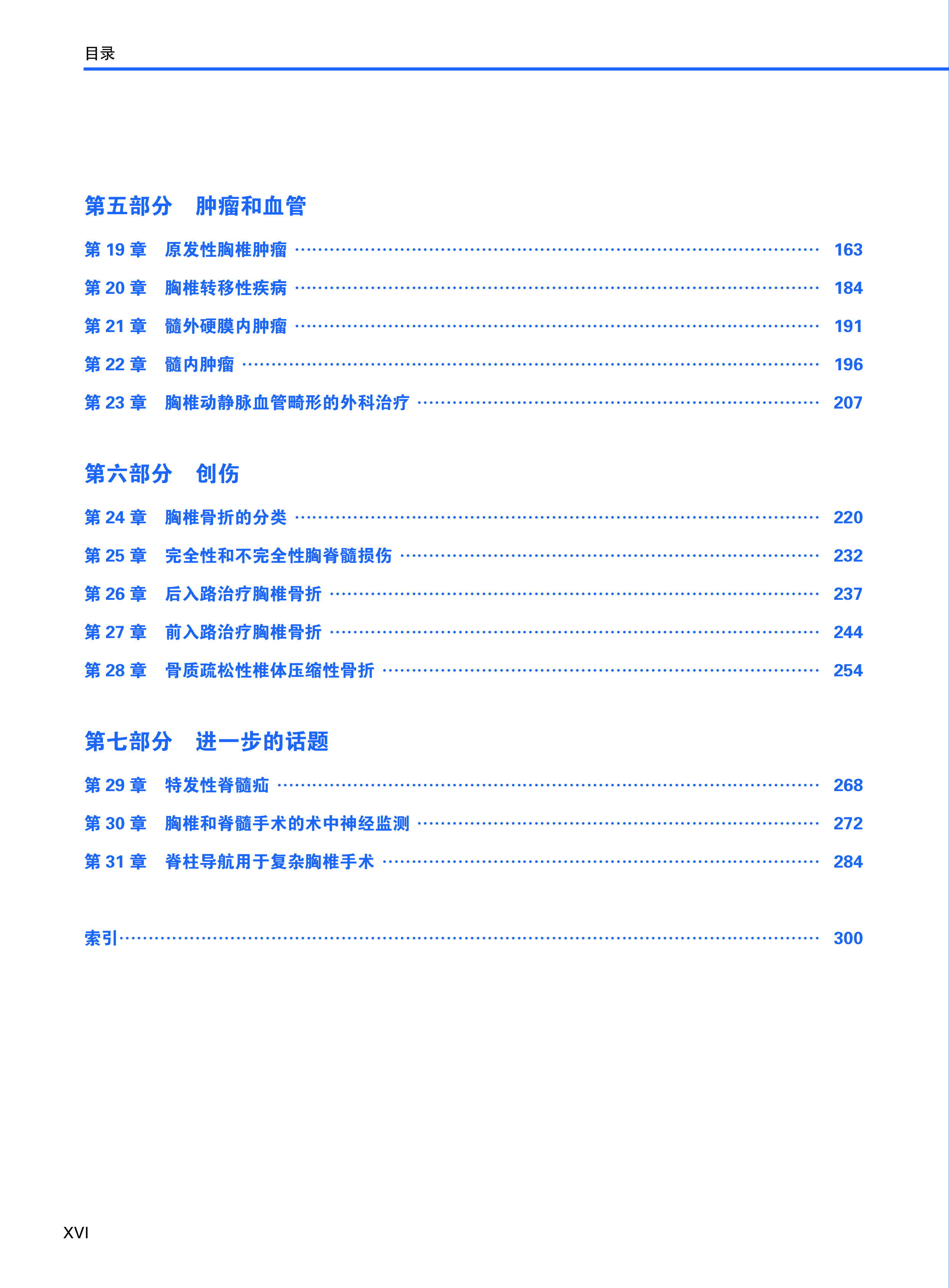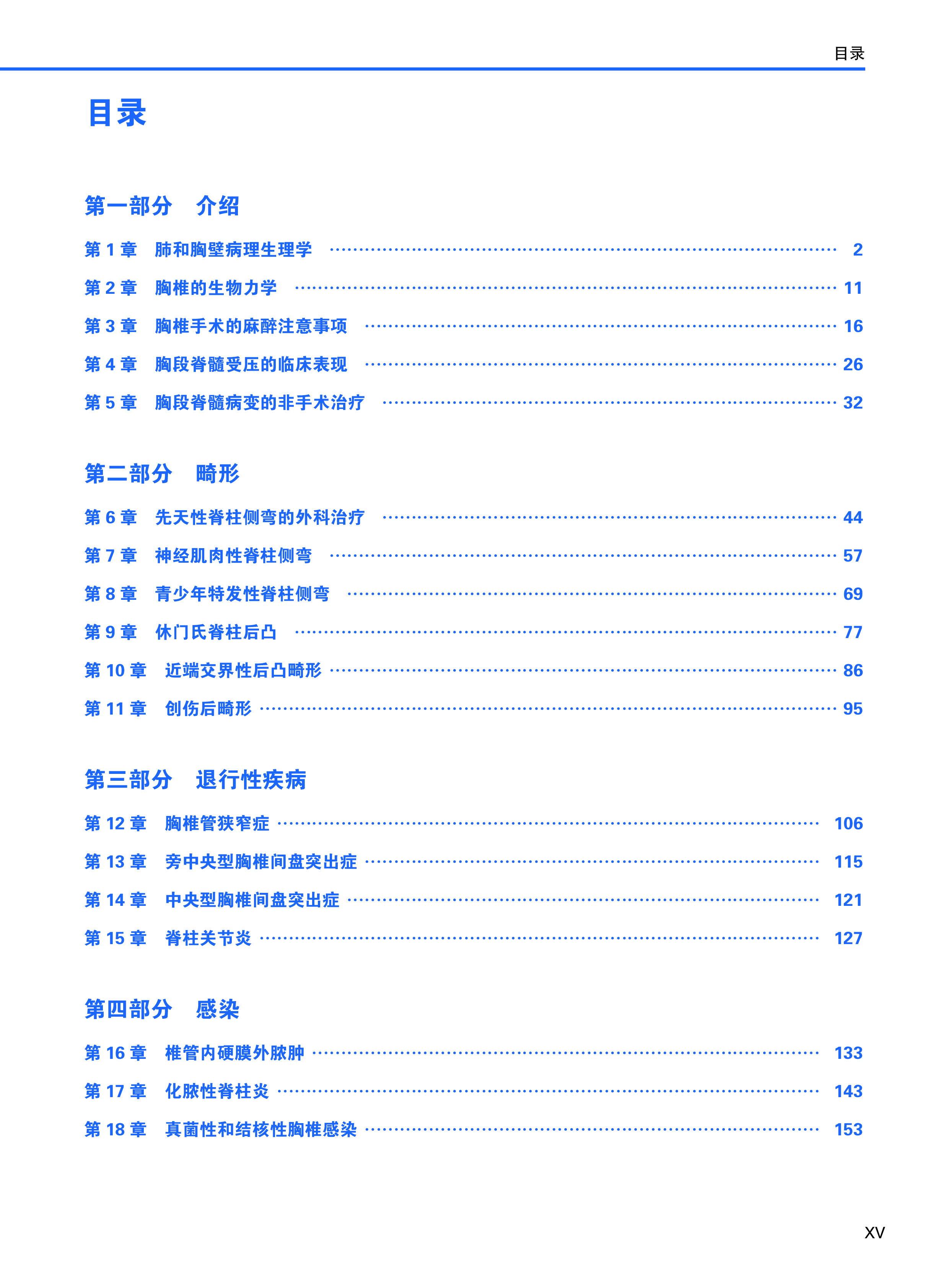 本书反映了脊柱外科在交叉领域的全新发展,并重点阐述了胸椎的复杂解剖、病理改变及外科治疗方法。感谢Baaj、Kakarla和Kim等一大批优秀作者共同致力于胸椎领域的探索,无论从教学角度还是研究前景他们都做了大量的全面细致的工作。目前普遍来看,对于胸椎的重视程度相较于活动度较大的颈椎和腰椎来说尚显不够,但从生物力学角度来看,胸椎区域所提供的“支撑”比“运动”作用更多,除了能保护控制下肢功能以及肠膀胱功能的重要胸髓外,还为心肺系统提供了重要的结构支撑。本书在31个章节中详细叙述了脊柱中央区域常见的病理改变和可行的手术方案,包括基础的胸壁生理学、生物力学和麻醉注意事项等总章节,以及根据不同疾病类型制定手术方案的众多子章节。