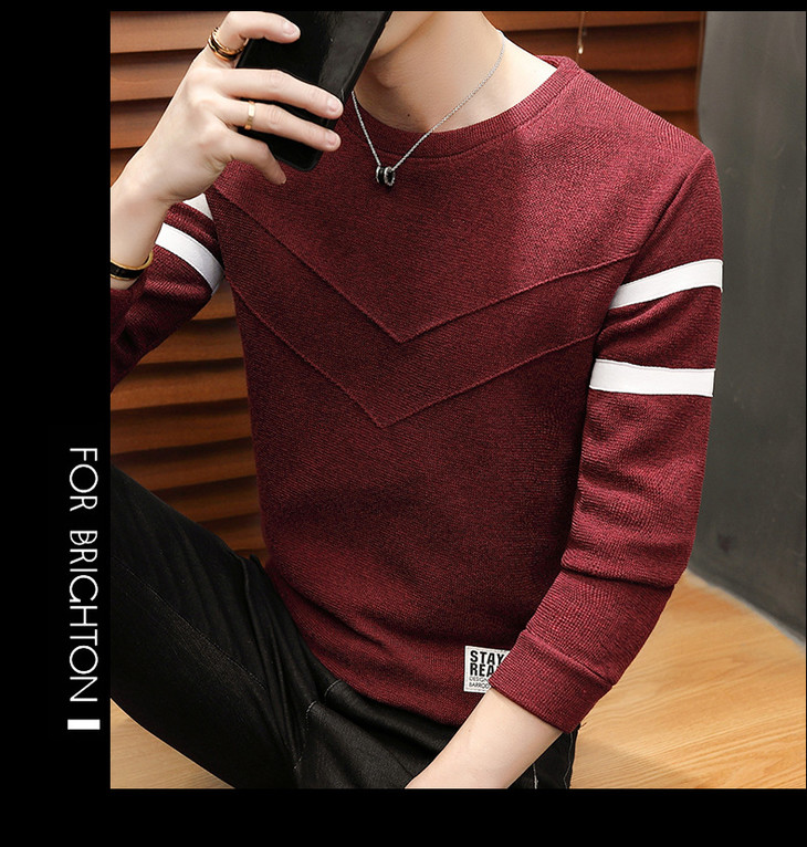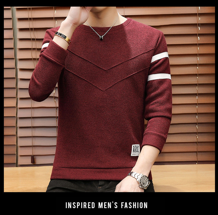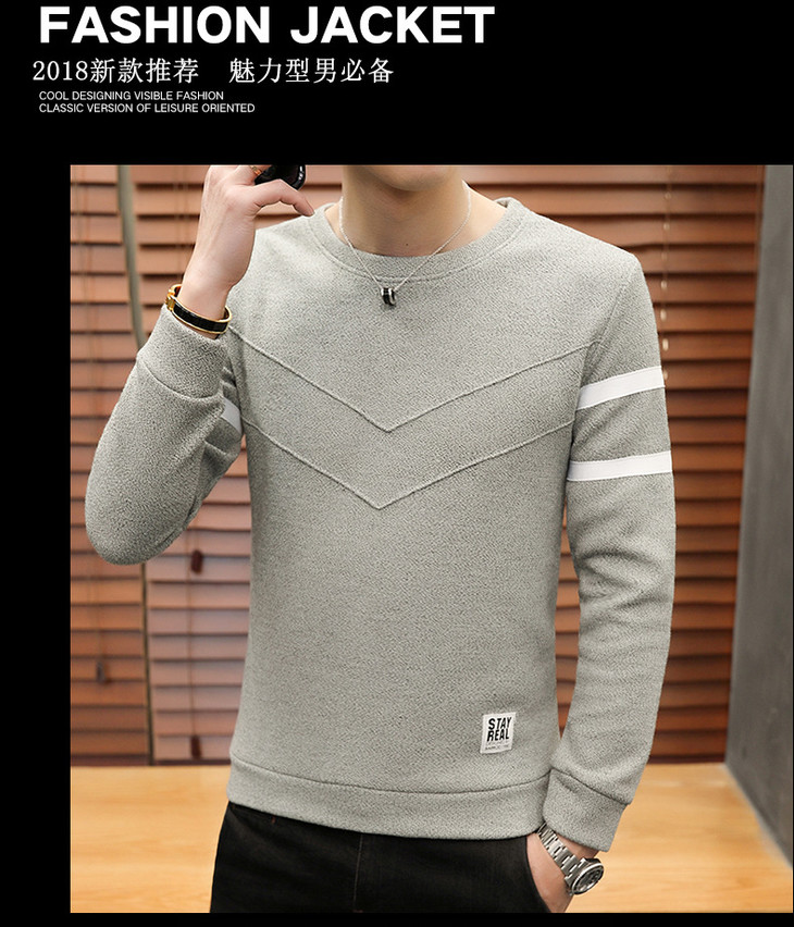 【服饰鞋包】秋季长袖t恤男青少年圆领男卫衣韩版潮流男装帅气上衣纯色