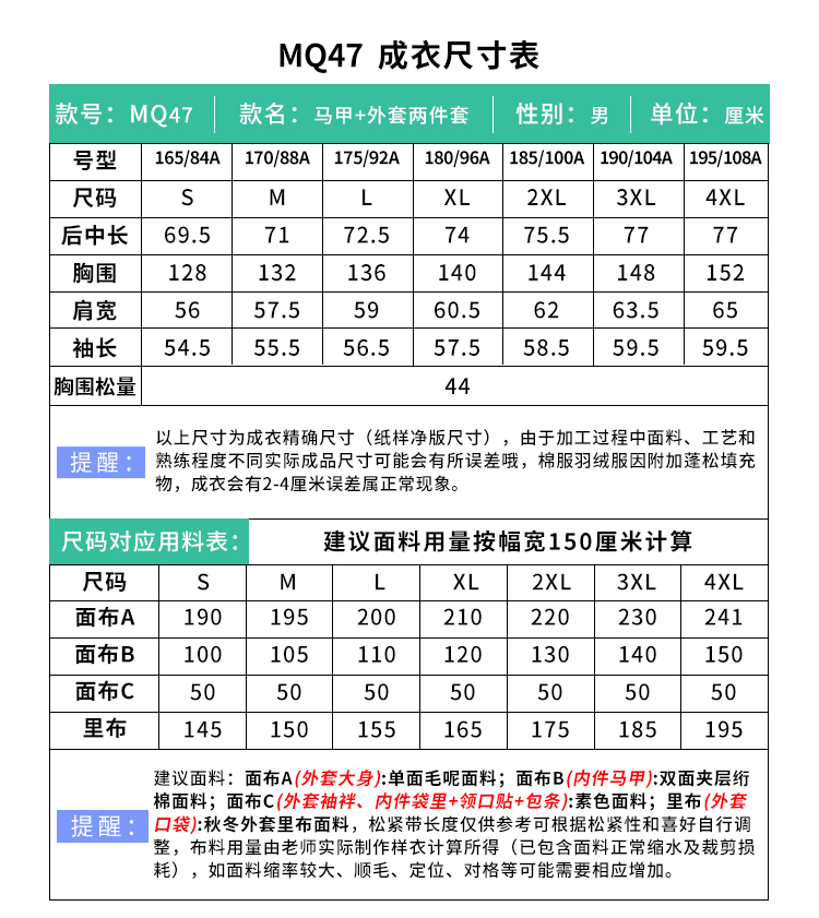 裁缝学苑MQ47日系复古三合一两件毛呢风衣外套纸样男装夹克廓形棉服样板