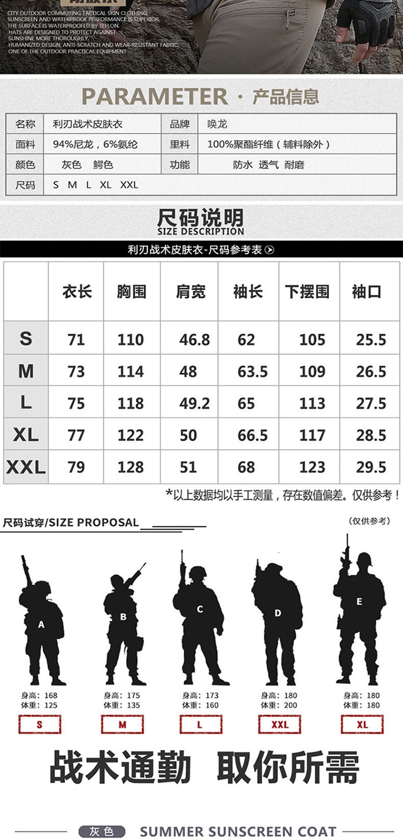 唤龙利刃户外战术皮肤衣春夏薄款弹力风衣快干轻薄透气便携登山服