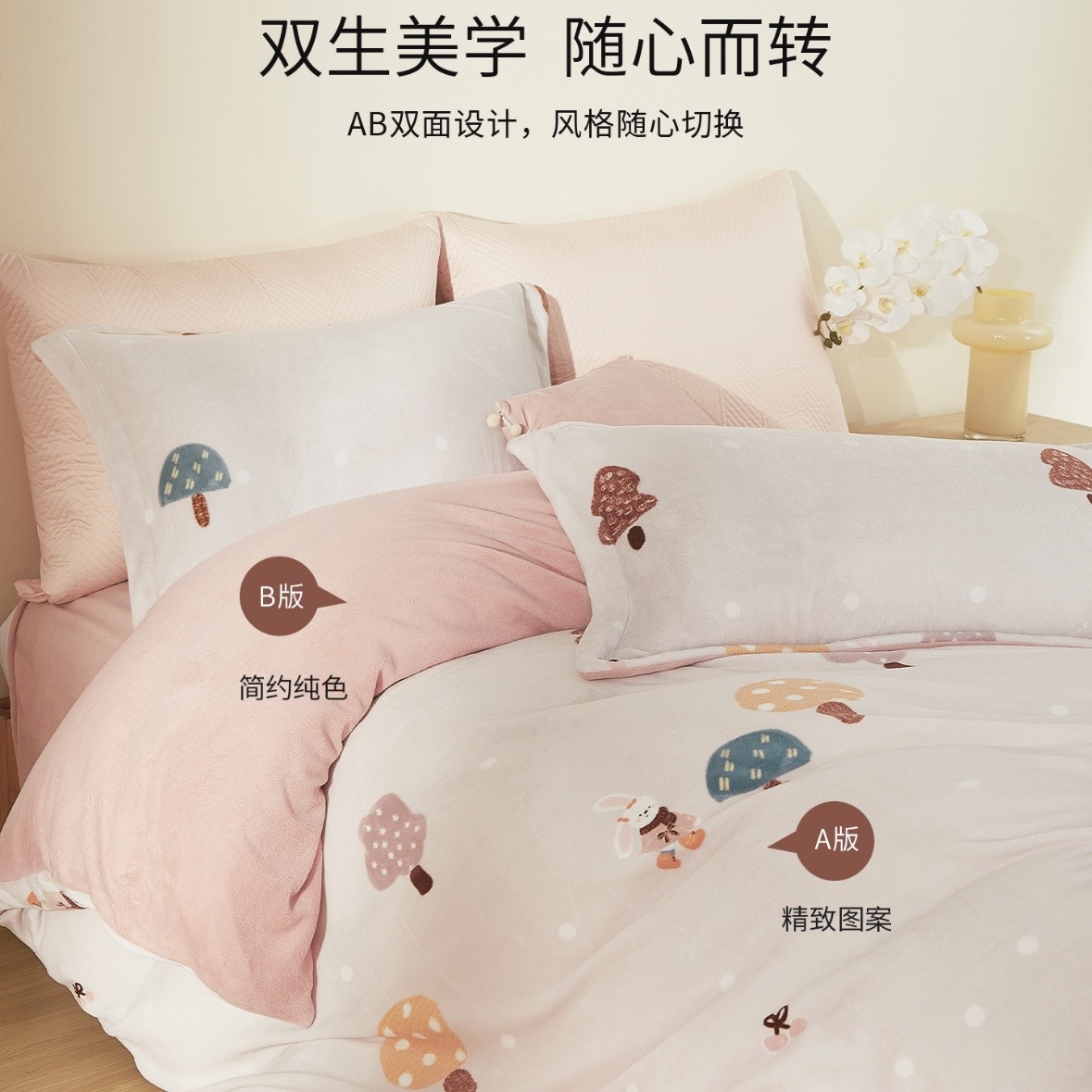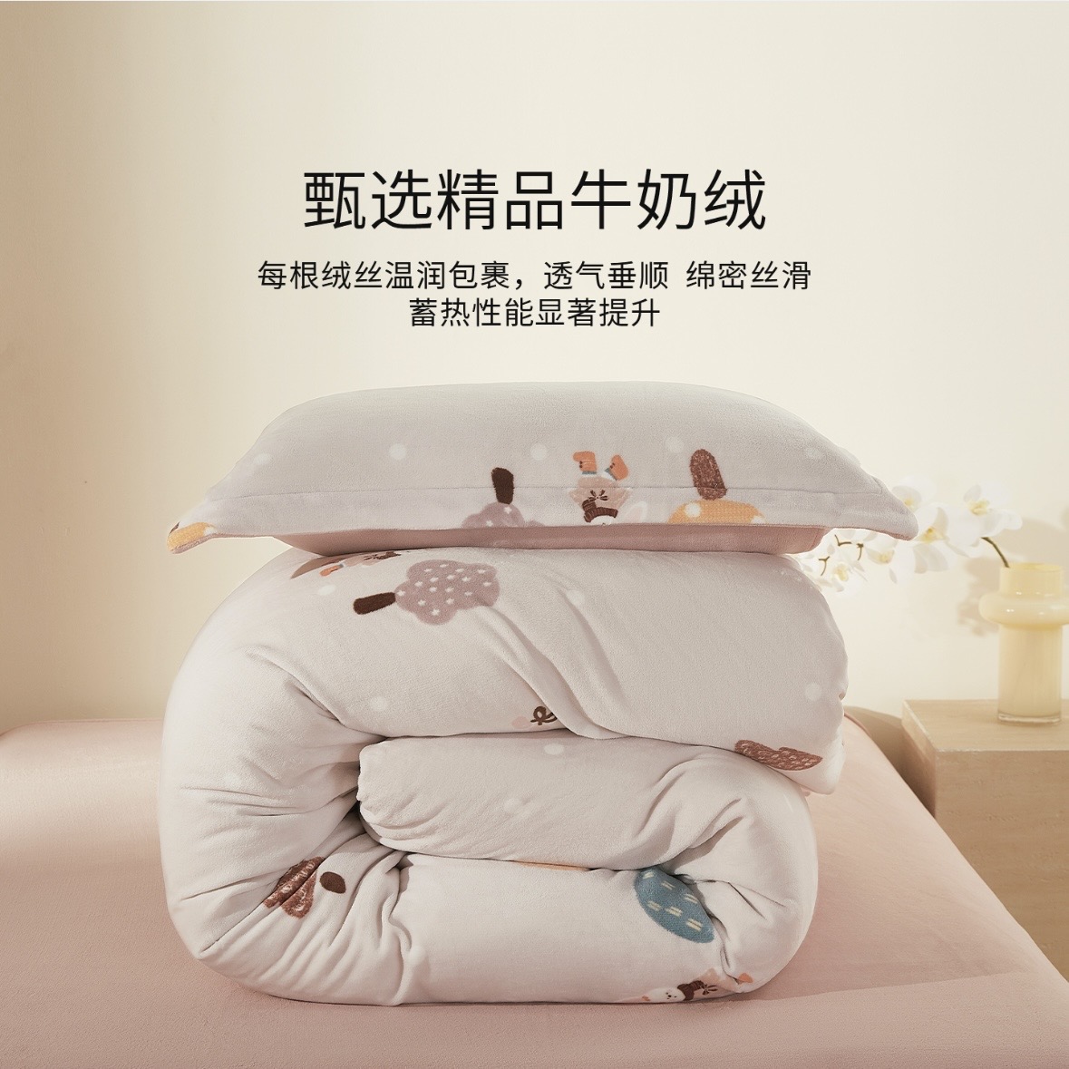 10楼堂皇 牛奶绒四件套--贝丽丝,慕慕 吊牌价1290-1390元/套 活动价299-399元/套,2套499-559元