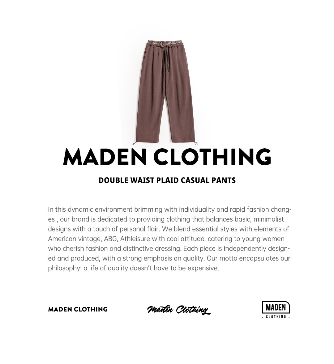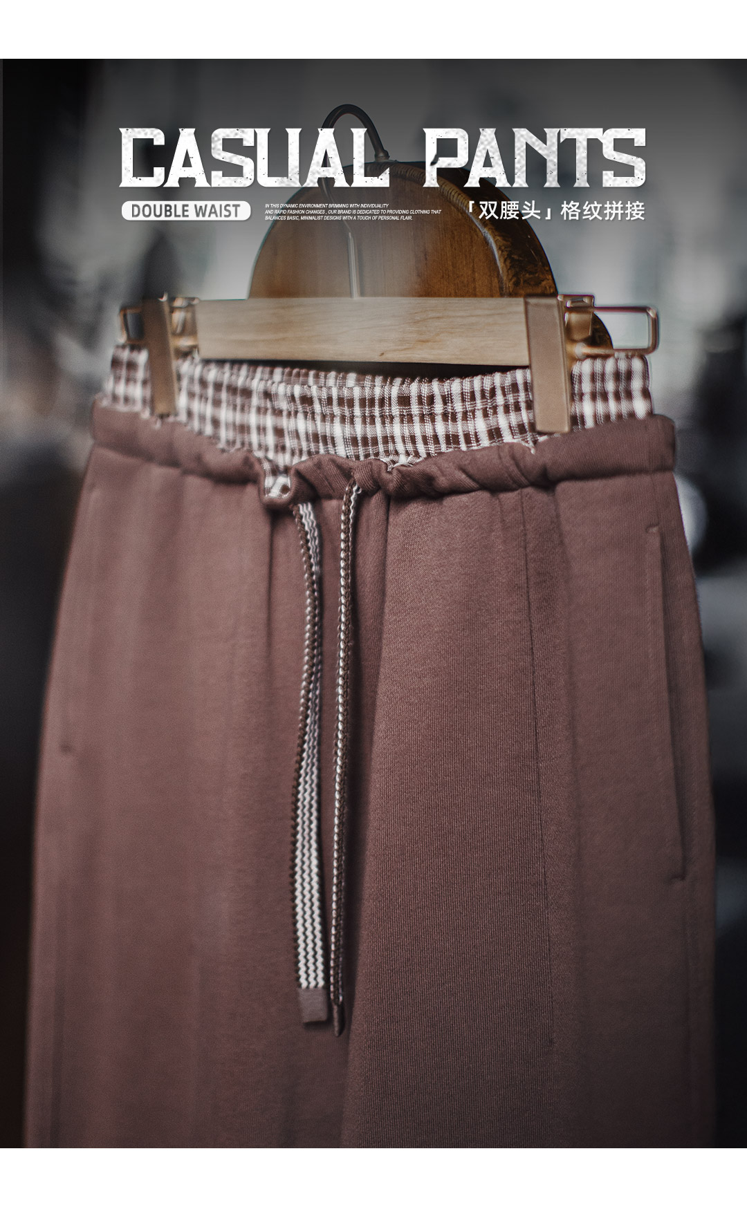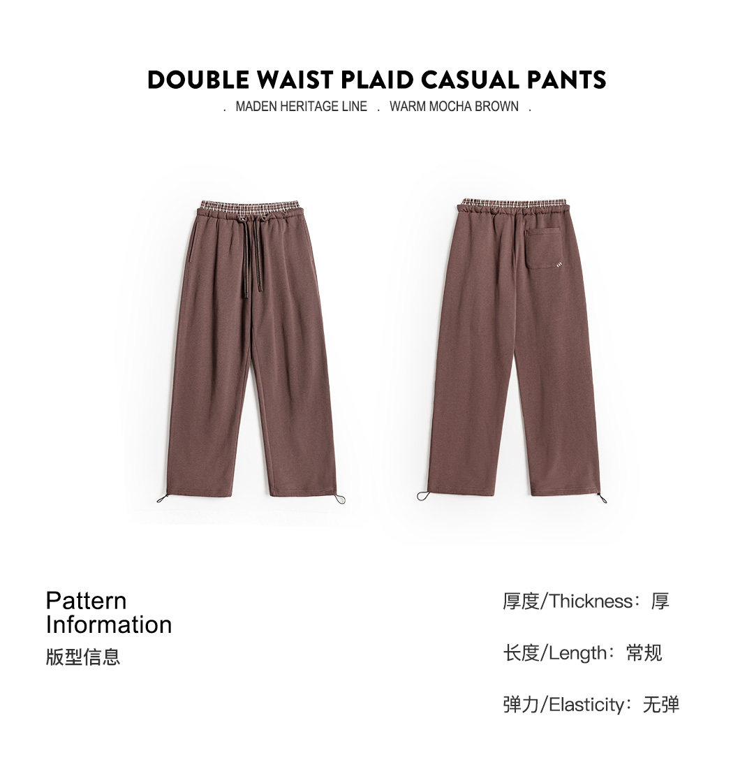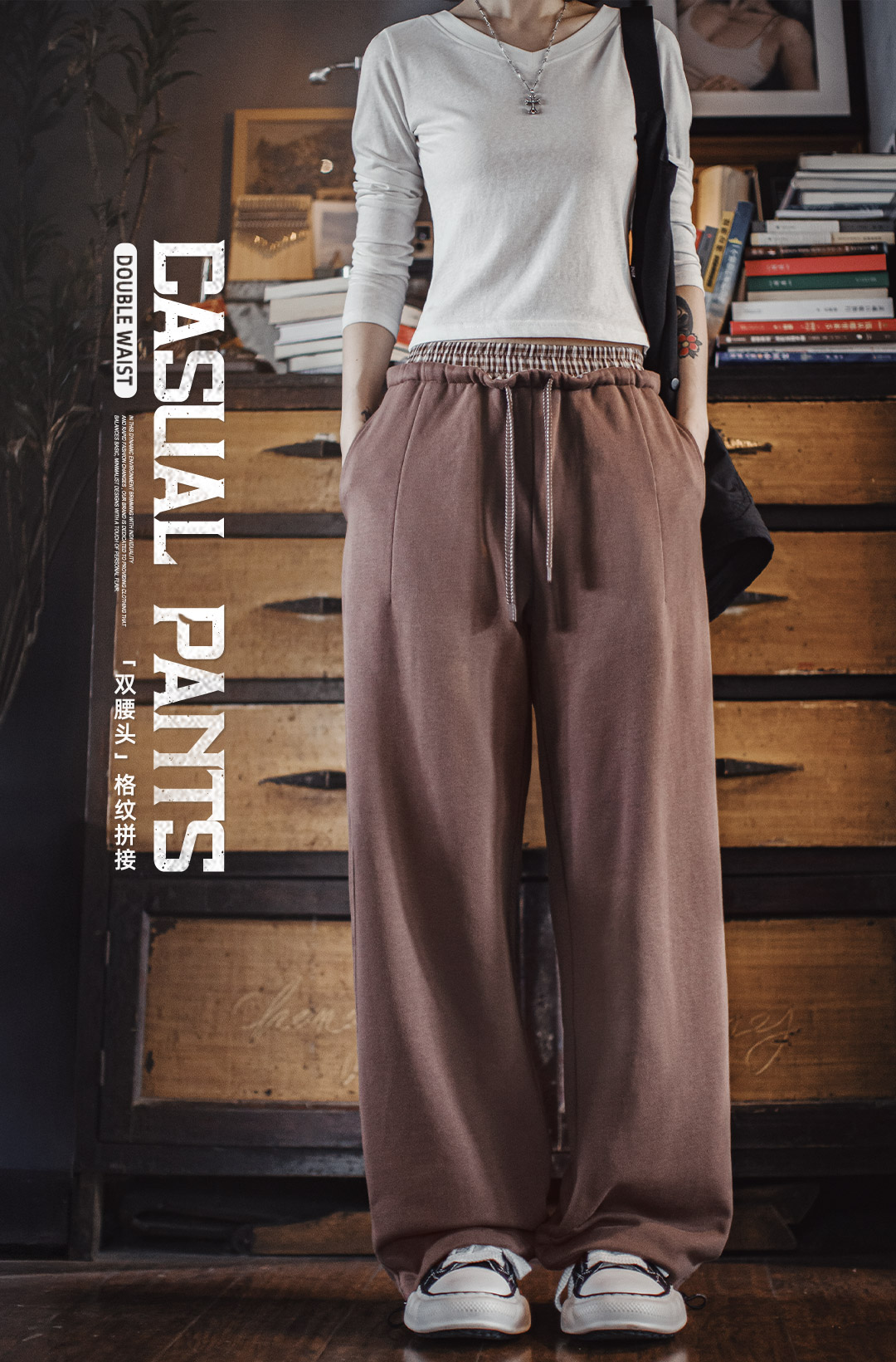 马登复古美拉德咖色卫裤纯棉休闲束脚直筒双腰头长裤子女士秋冬季