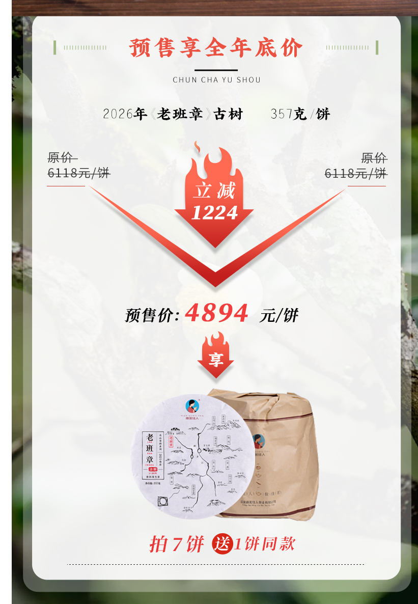 【预售8折,买7送1】2026《老班章》古树春茶 357克*1饼 生茶