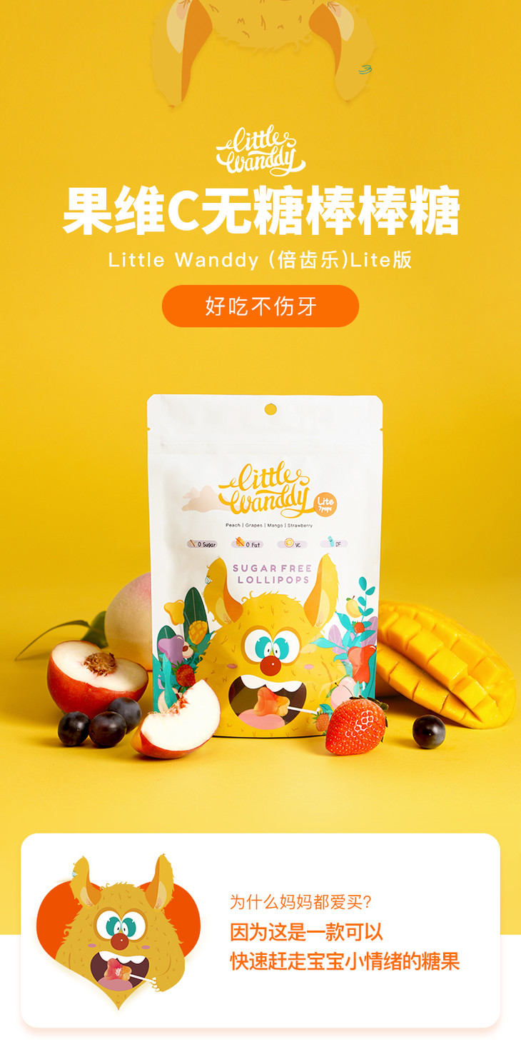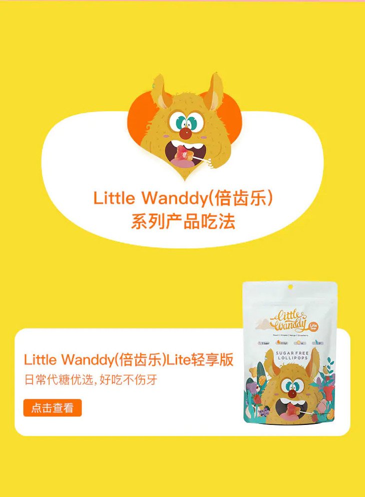 美国 Little Wanddy 倍齿乐无糖棒棒糖!好吃不伤牙,非转基因,科学配比!膳食纤维,呵护肠胃!多种口味选择!
