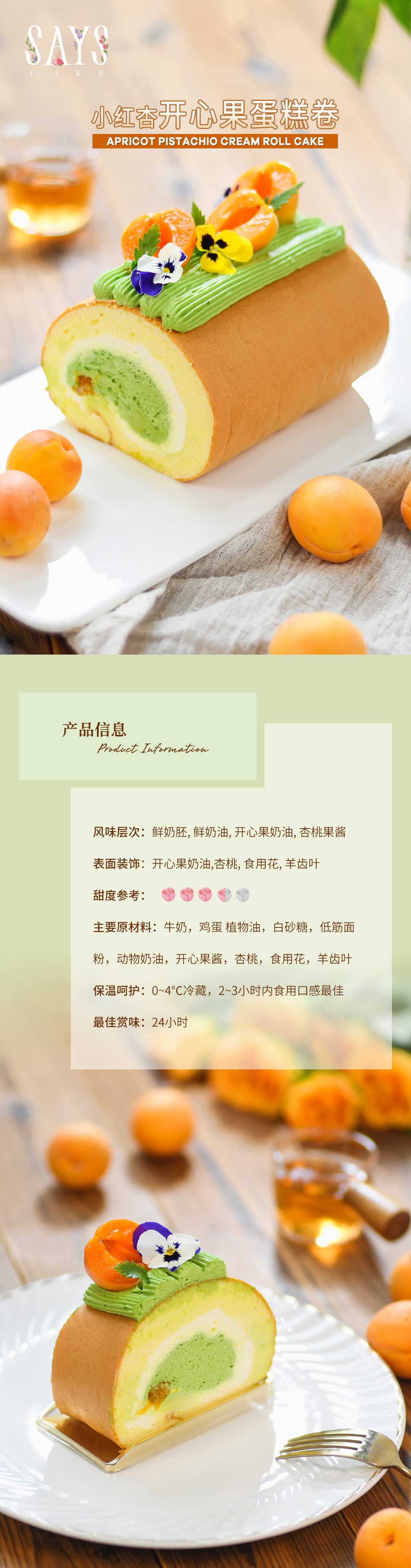 【预定】开心果舒芙蕾蛋糕卷 Apricot Raspberry Roll Cake