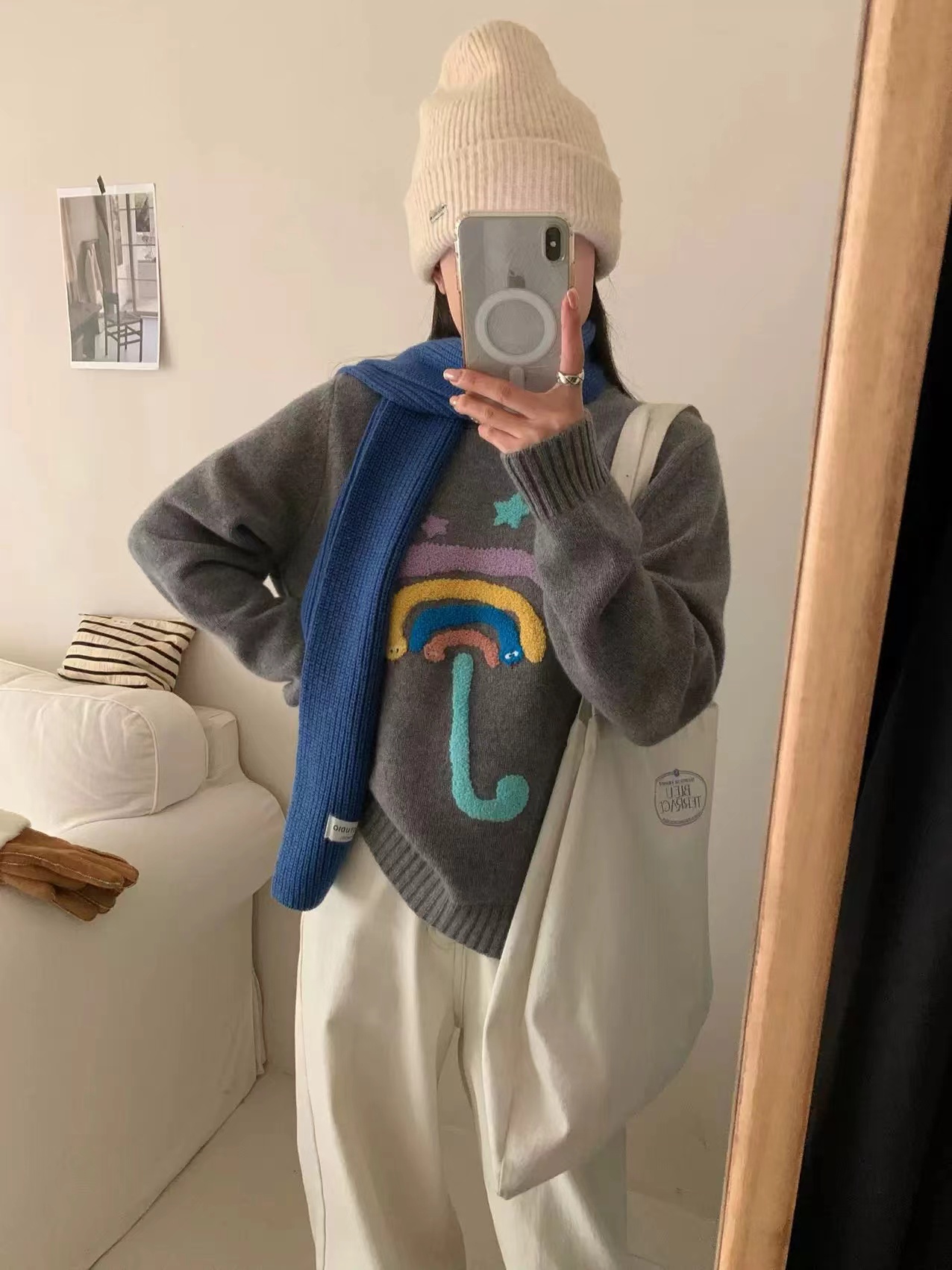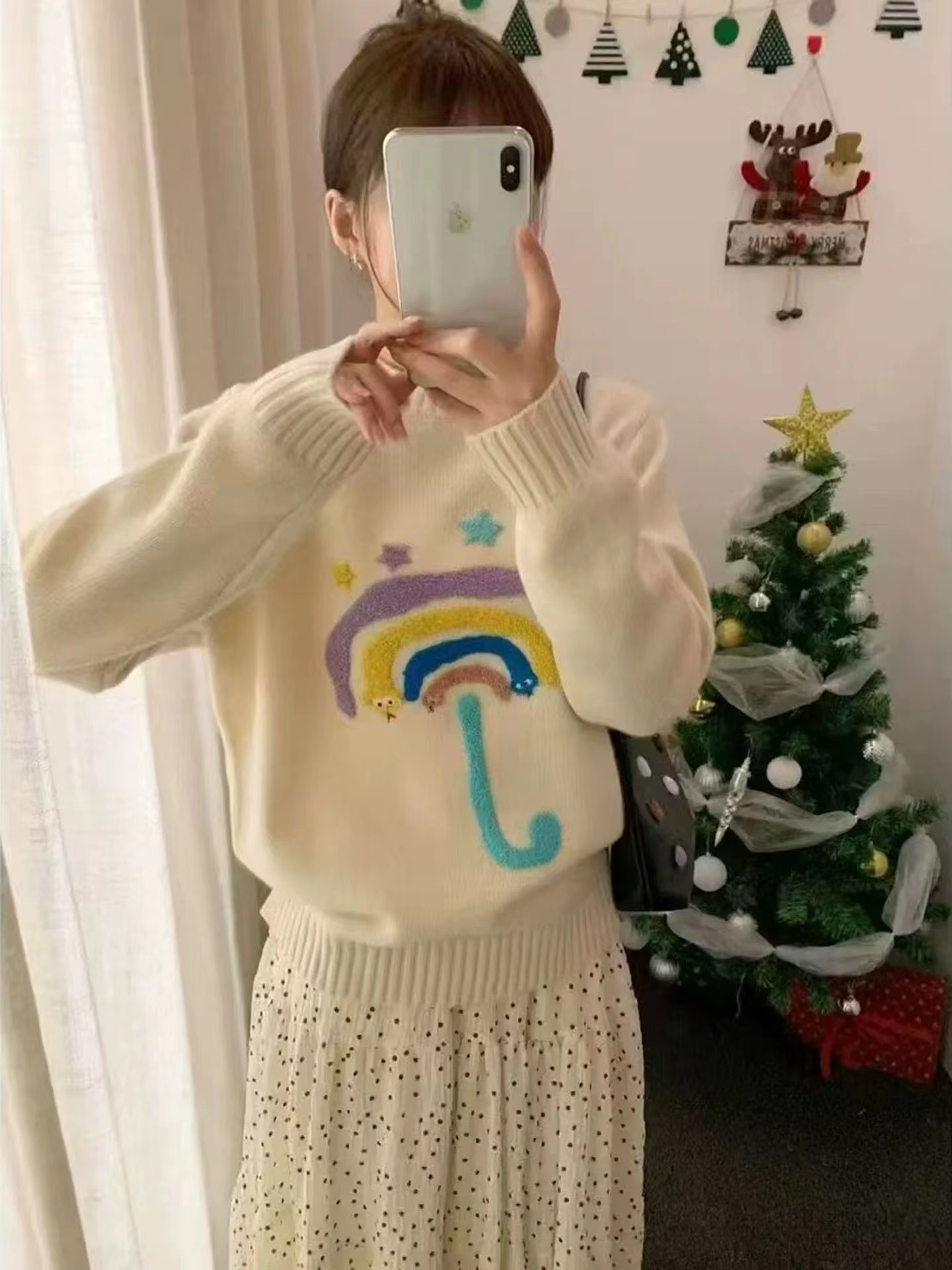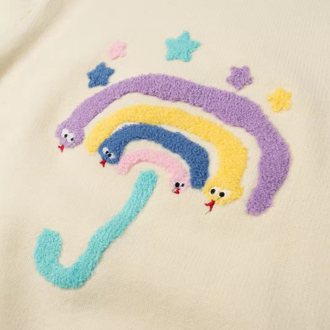 圆领卡通毛巾绣针织毛衣,圣诞新年红七色彩虹圆领针织衫女冬季新款法式小香风长袖加厚保暖毛衣,【软萌彩虹伞!把童话穿在身上】谁能拒绝这件会“冒可爱”的毛衣啊!圆领+软糯针织,贴肤暖乎乎的像抱了团云朵,胸前的彩虹伞立体刺绣太戳心啦——彩色伞面+星星点缀,还有小眼睛偷偷露出来,奶黄温柔、灰调百搭、酒红显白,穿在身上自带软萌滤镜,秋冬不管搭牛仔裤还是小裙子都超甜!