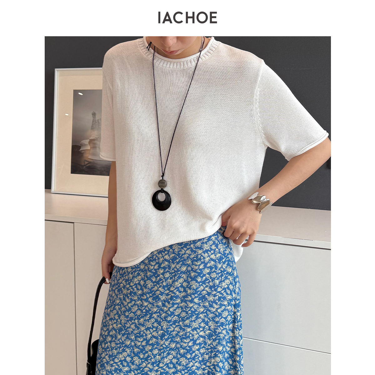棉仓3631501024-IACHOE含三醋酸短袖针织T恤