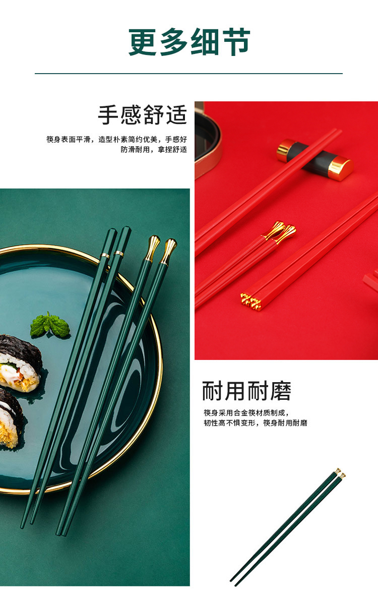 【买10双立减10元】 家用高颜值轻奢风新款防滑合金筷 春节新年结婚喜庆筷乔迁新居餐具