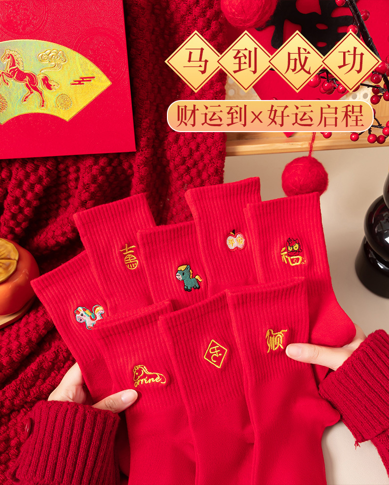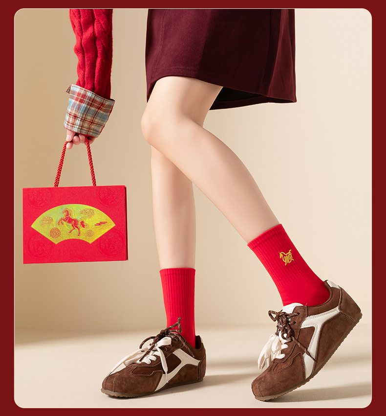 【红袜子马年红袜】本命年袜子刺绣礼盒装 精梳棉抗起球不褪色不掉跟