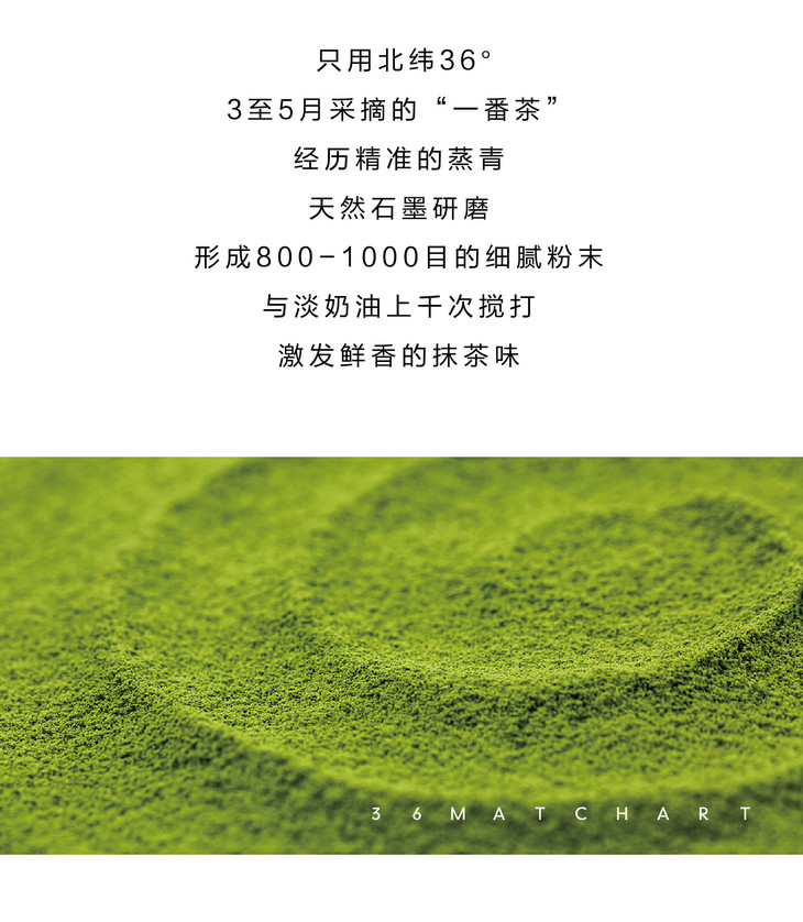 我们目前拥有36MATCHART和36cake两个品牌,主营抹茶甜品与新鲜蛋糕,深受数百万抹茶控和甜品控的拥趸。好吃安心,奶油只选法国铁塔。全城3小时免 费速达。客服热线400-016-3636