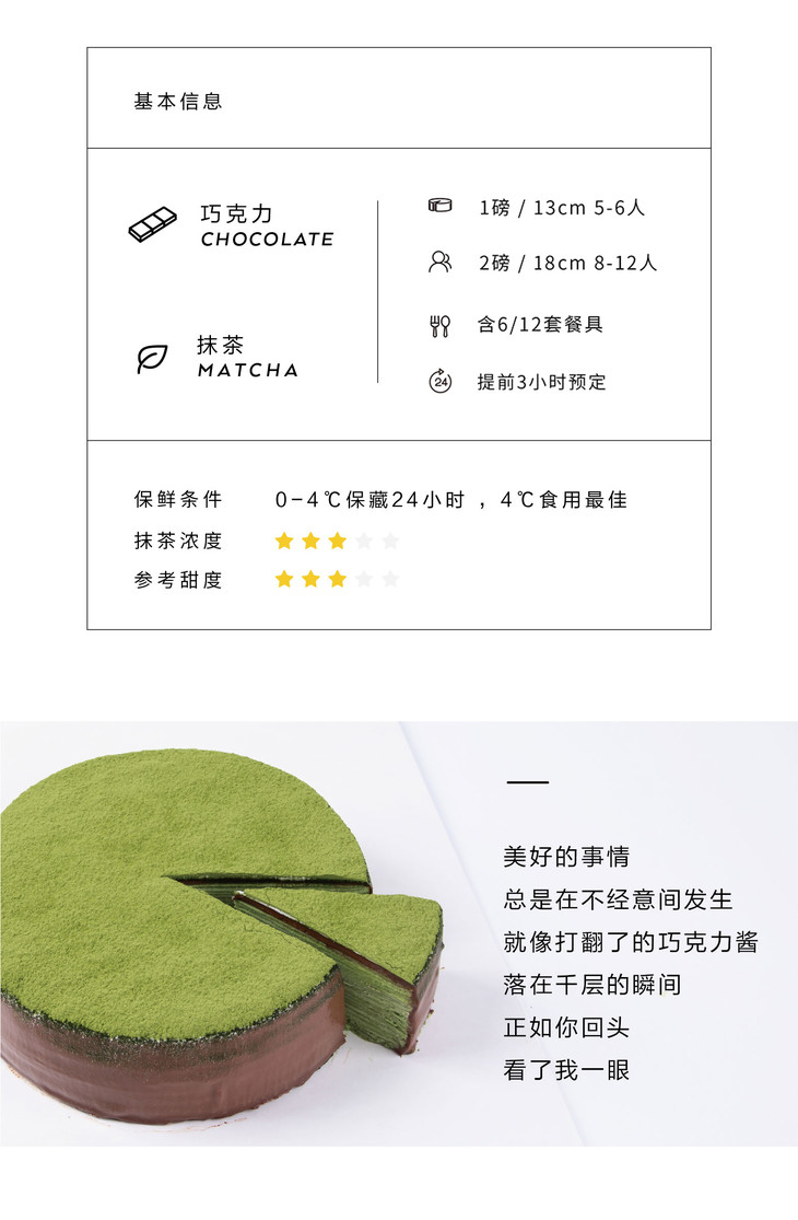 抹茶榴莲双拼手作千层,可选6/8英寸