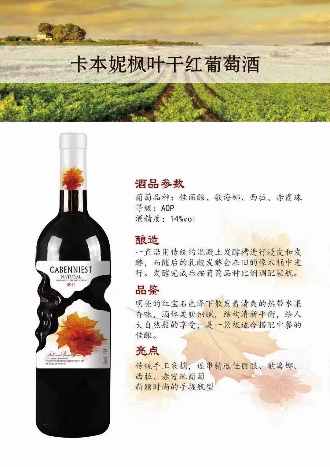 法国原瓶进口卡本妮枫叶干红葡萄酒