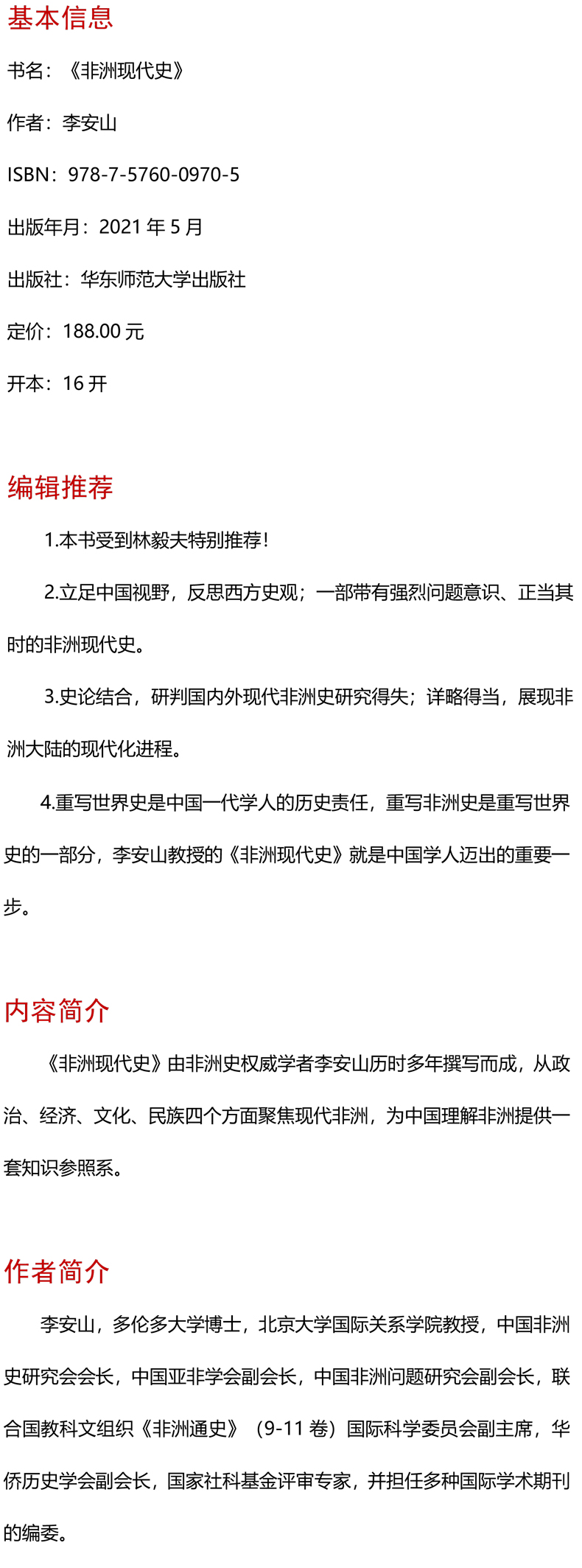 非洲现代史 六点非洲系列 林毅夫推荐 非洲史学者李安山撰