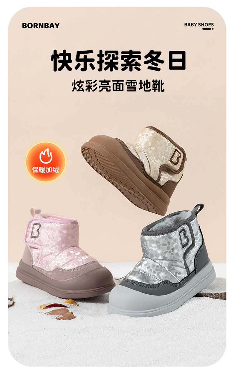 贝贝怡【保暖雪地靴】秋冬新款女童加绒防风保暖雪地靴室内户外防滑鞋子ZB4DX006