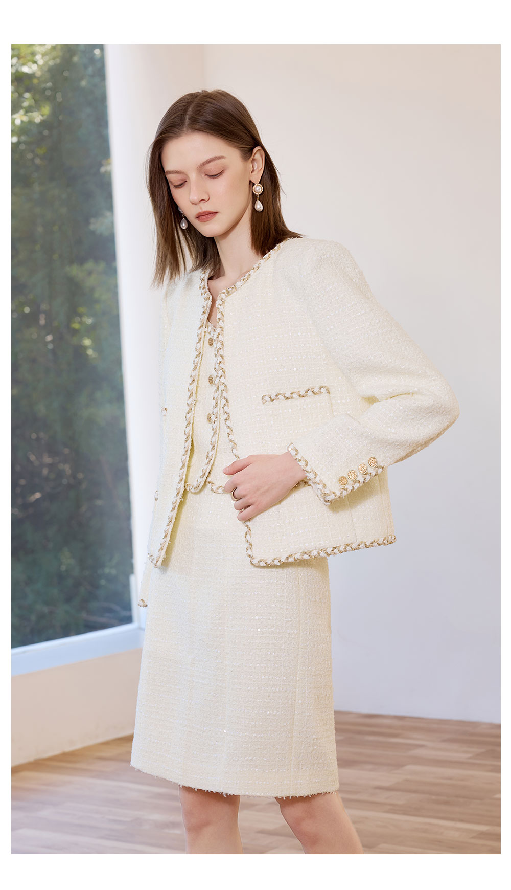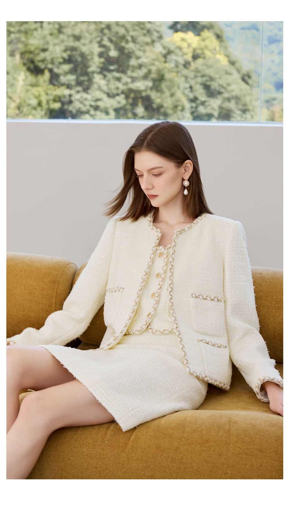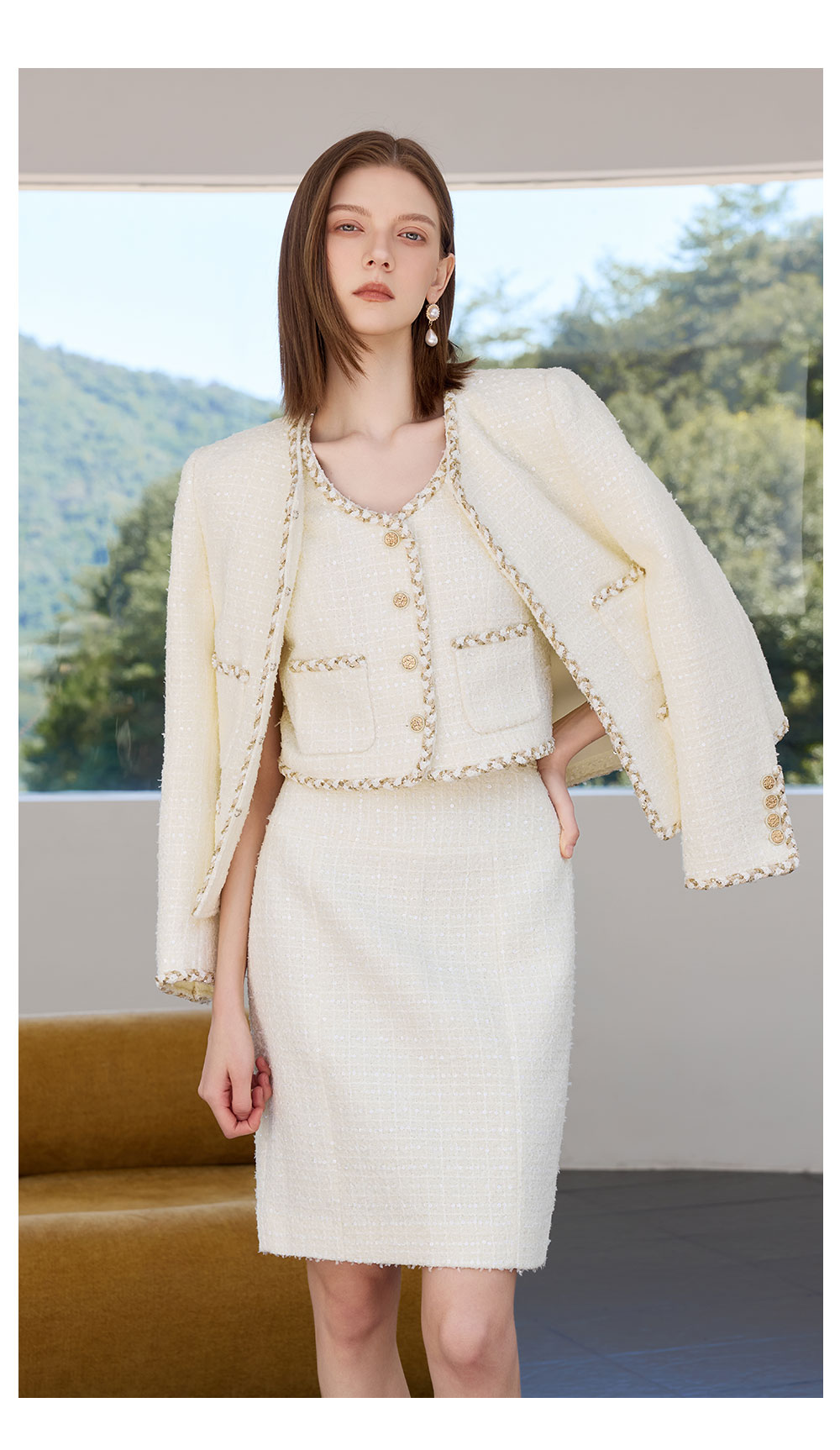 AD小香风套装女2025秋冬轻奢高级感粗花呢名媛外套气质马甲三件套