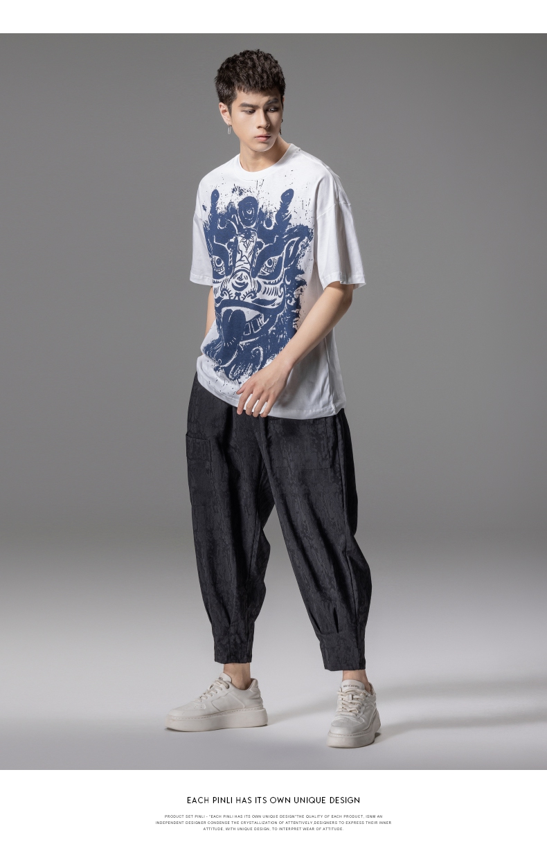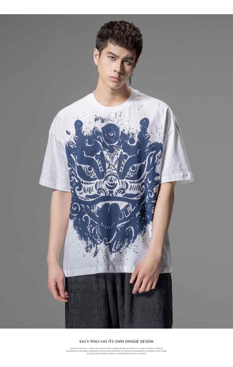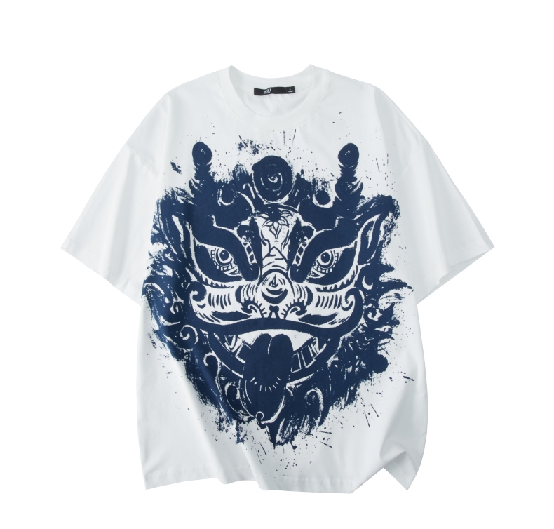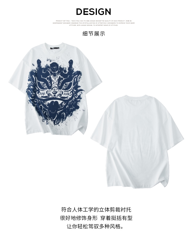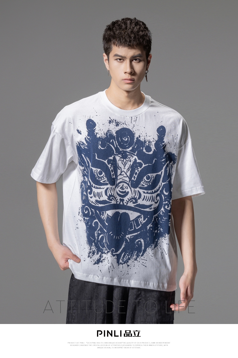 PINLI品立夏季新款国潮醒狮短袖T恤男士印花潮牌休闲宽松上衣B242111113