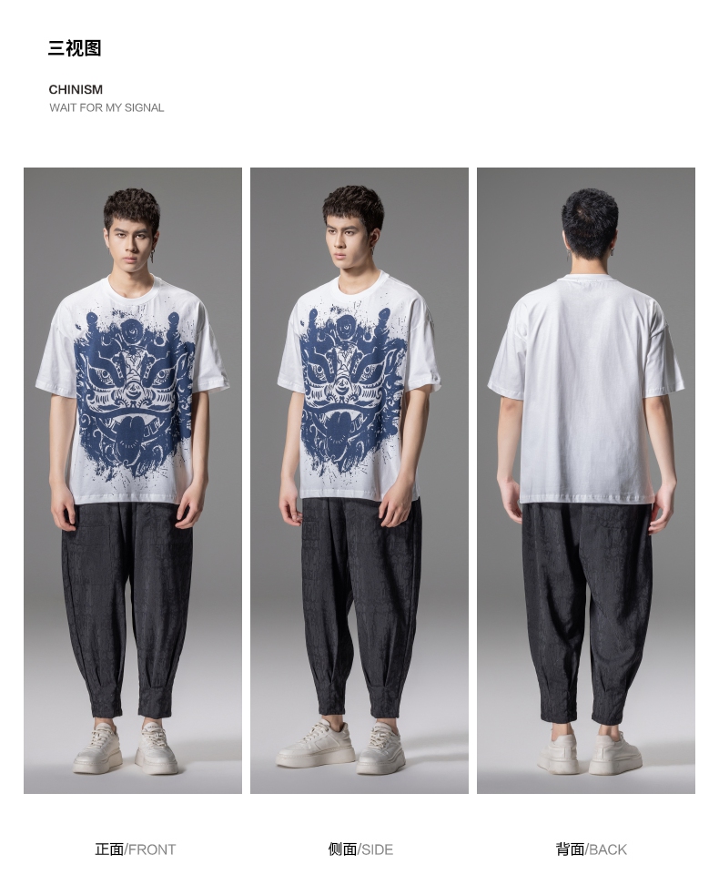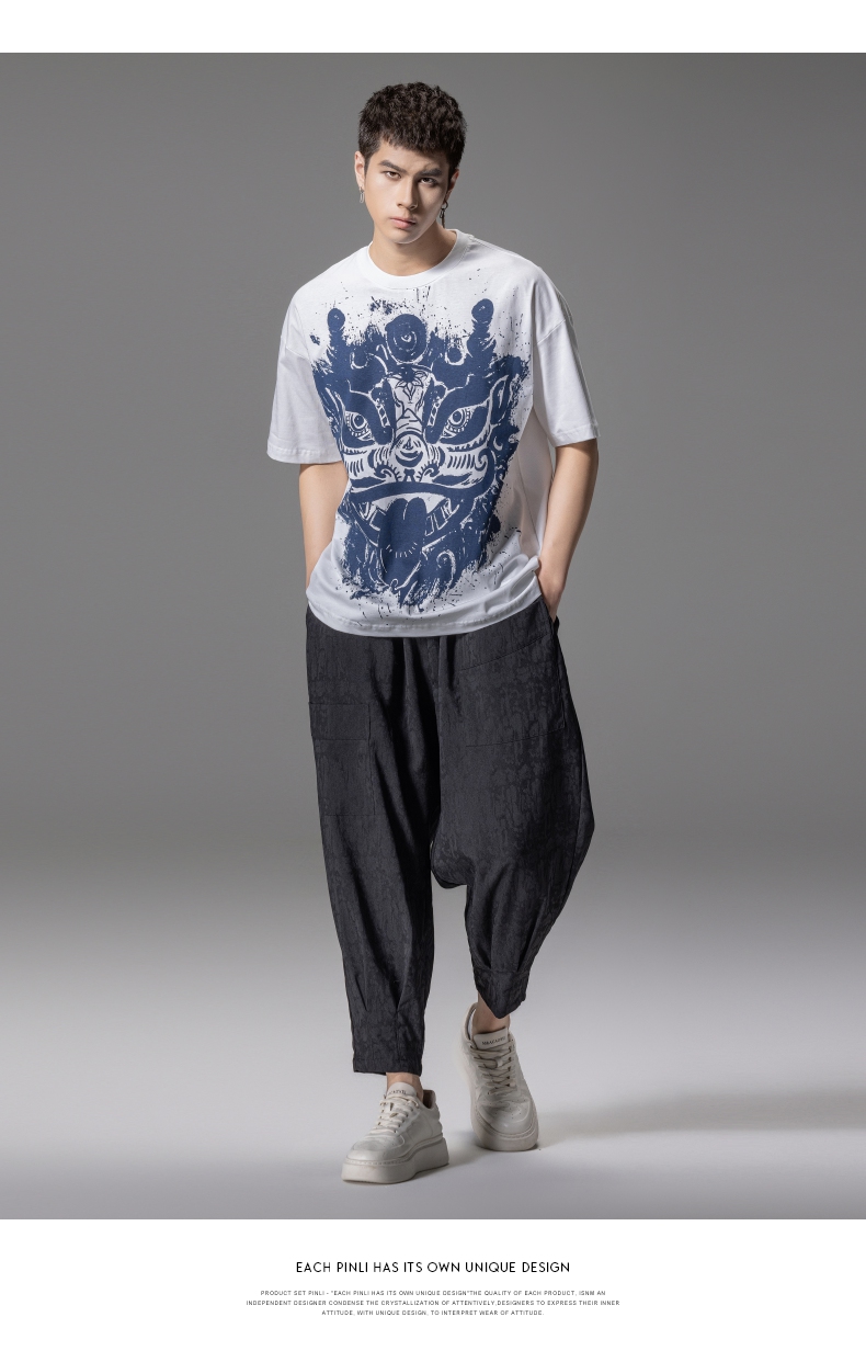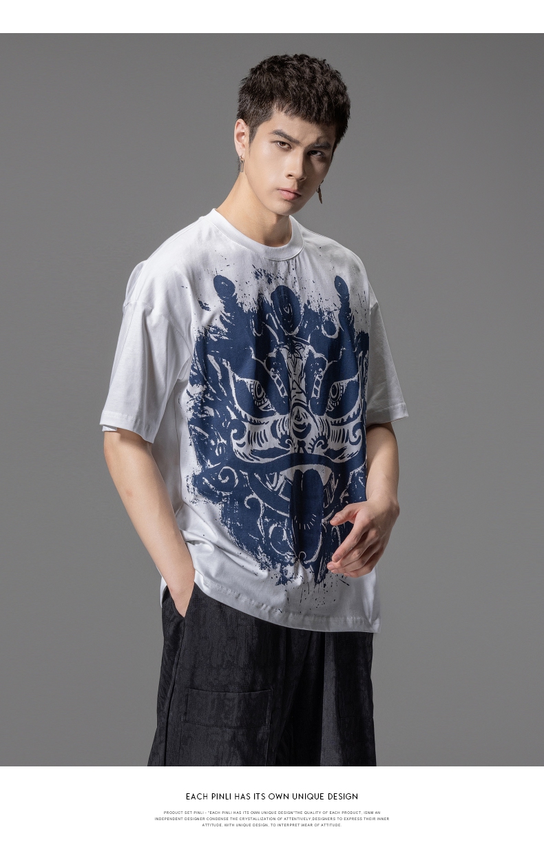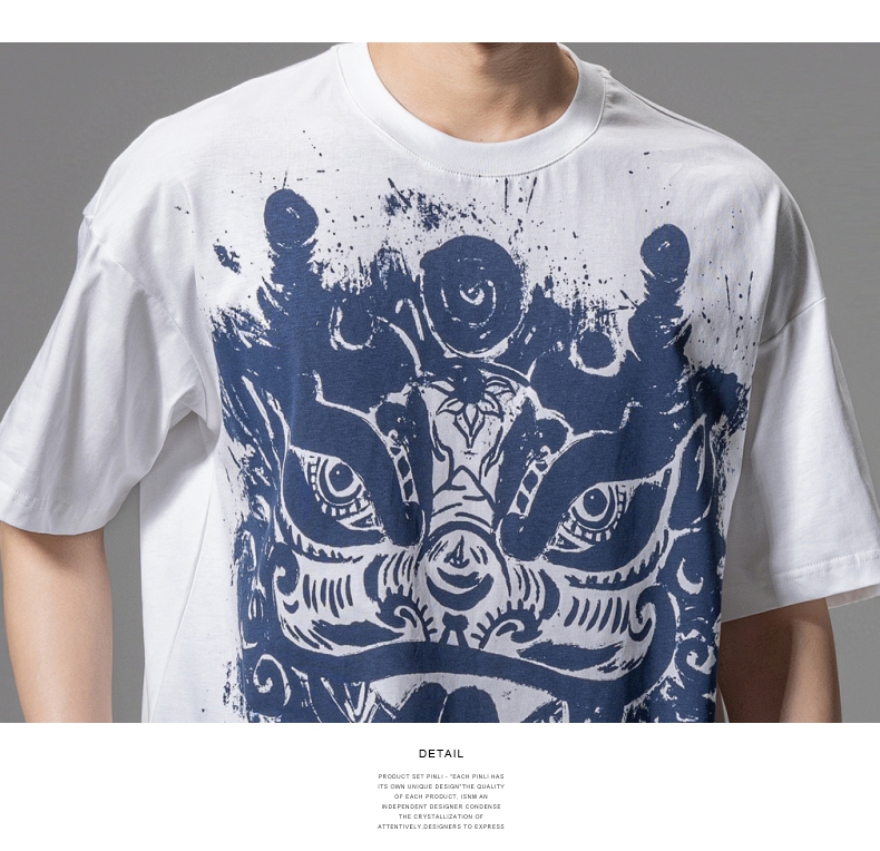 PINLI品立夏季新款国潮醒狮短袖T恤男士印花潮牌休闲宽松上衣B242111113