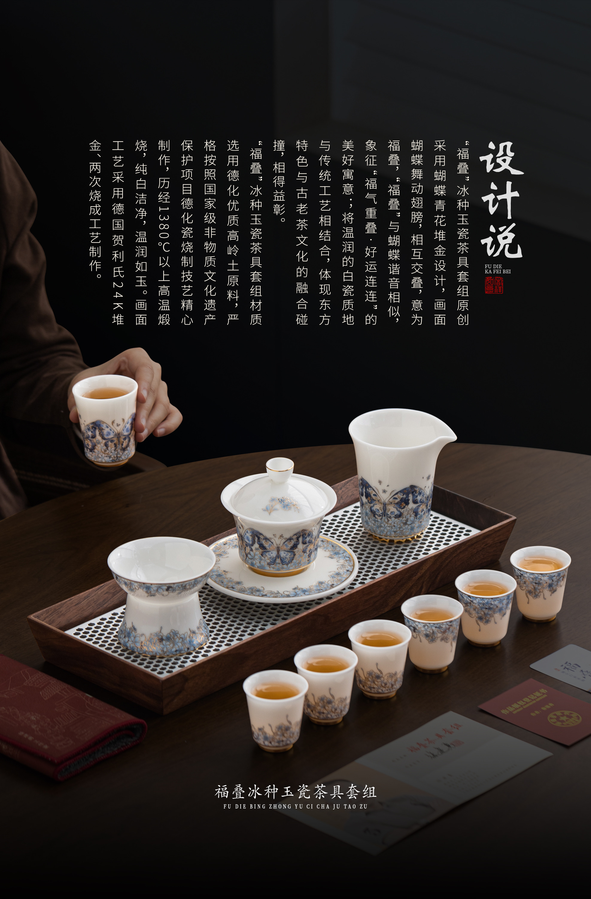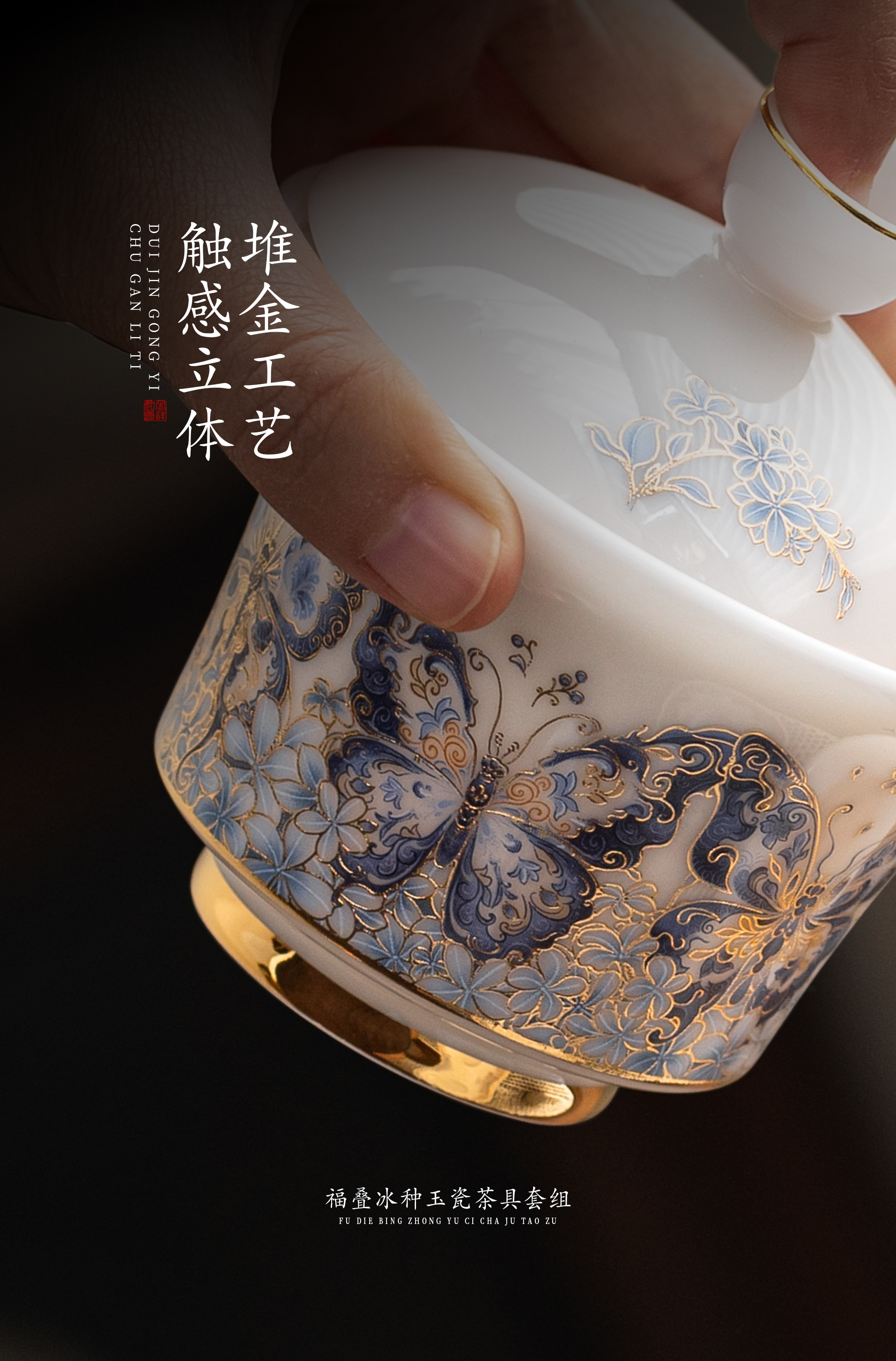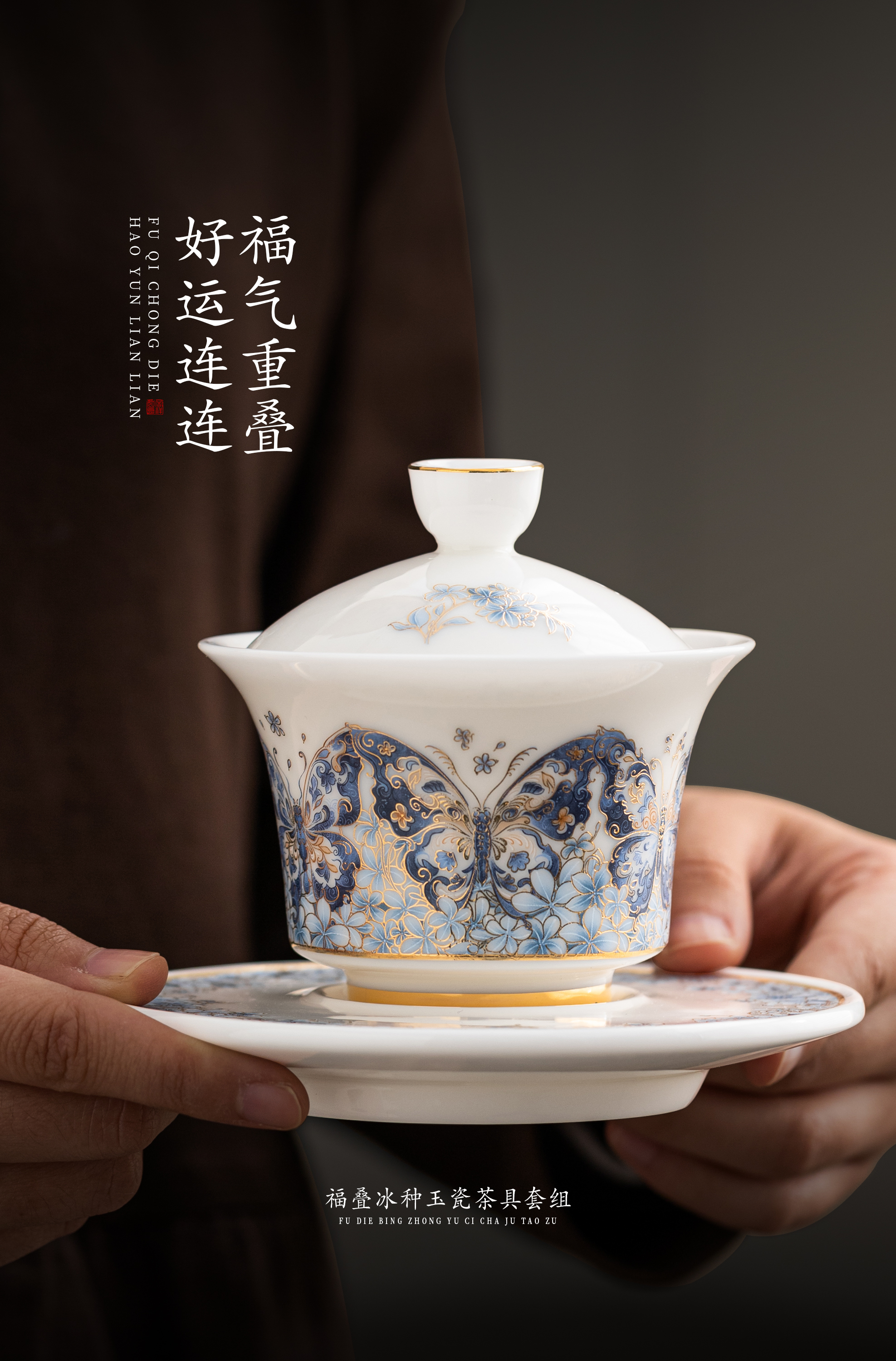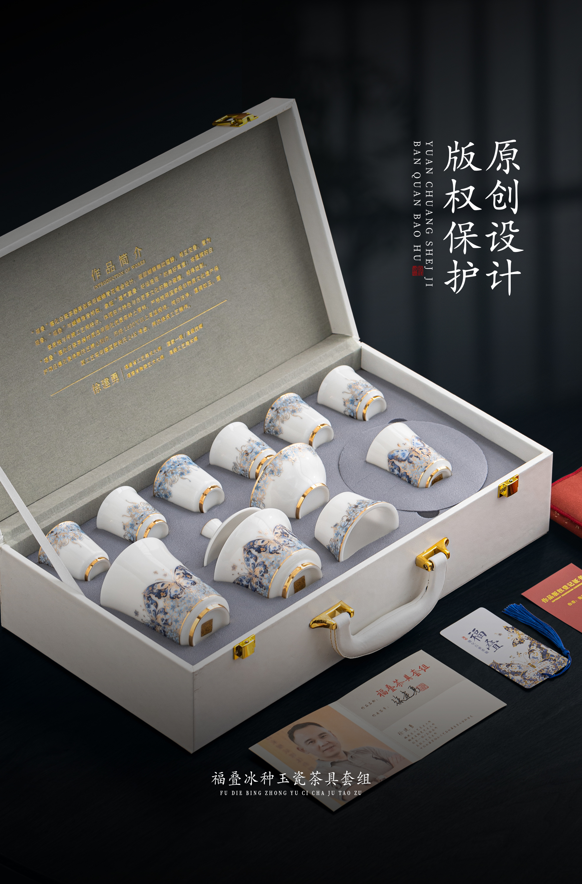 【福气重叠 好运连连】福叠·茶器套组/冰种玉瓷茶具套组,徐建勇大师签章 品质保证,凝脂似玉 细腻莹润,堆金工艺 触感立体,精美包装 gao端豪礼