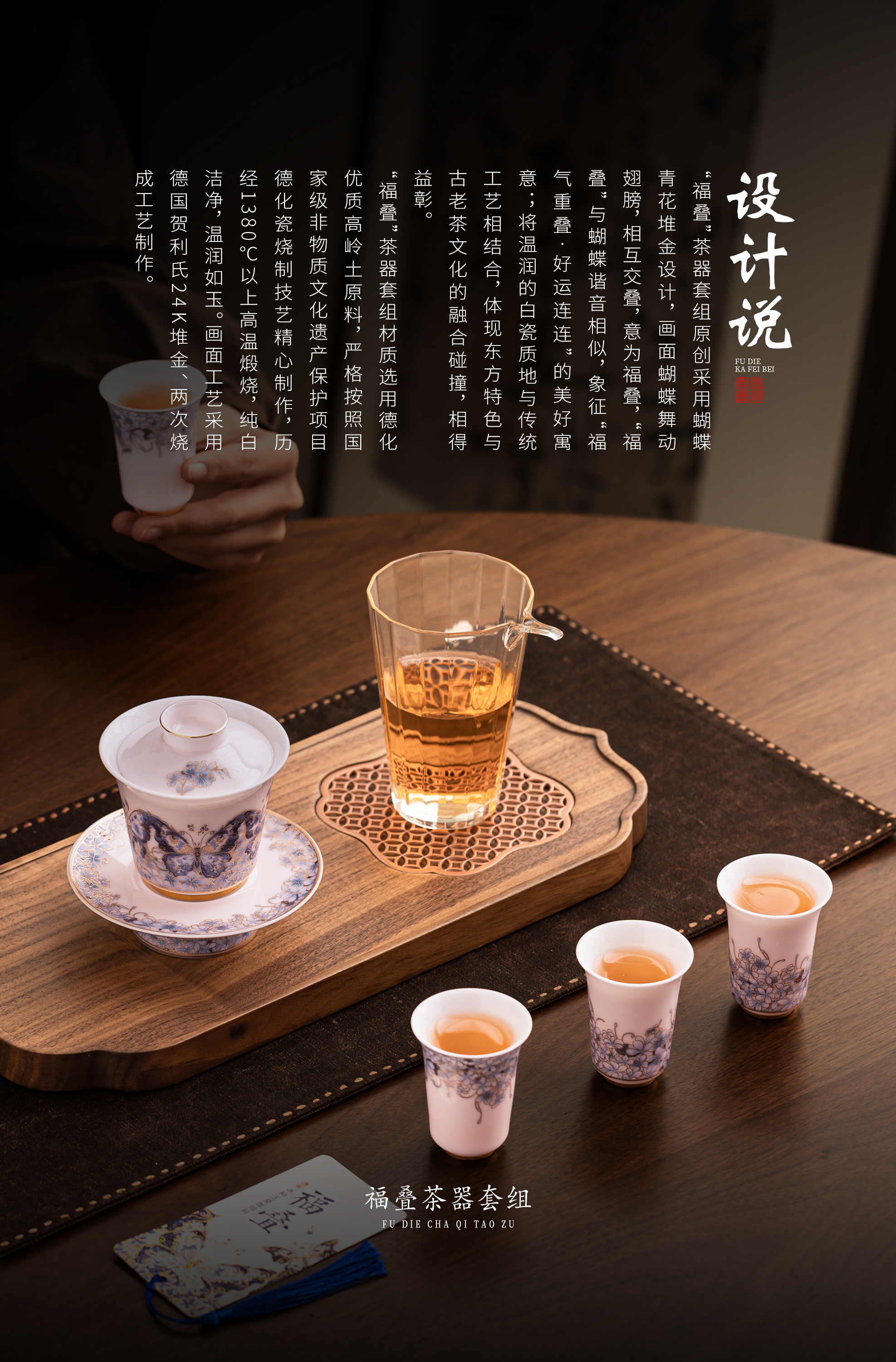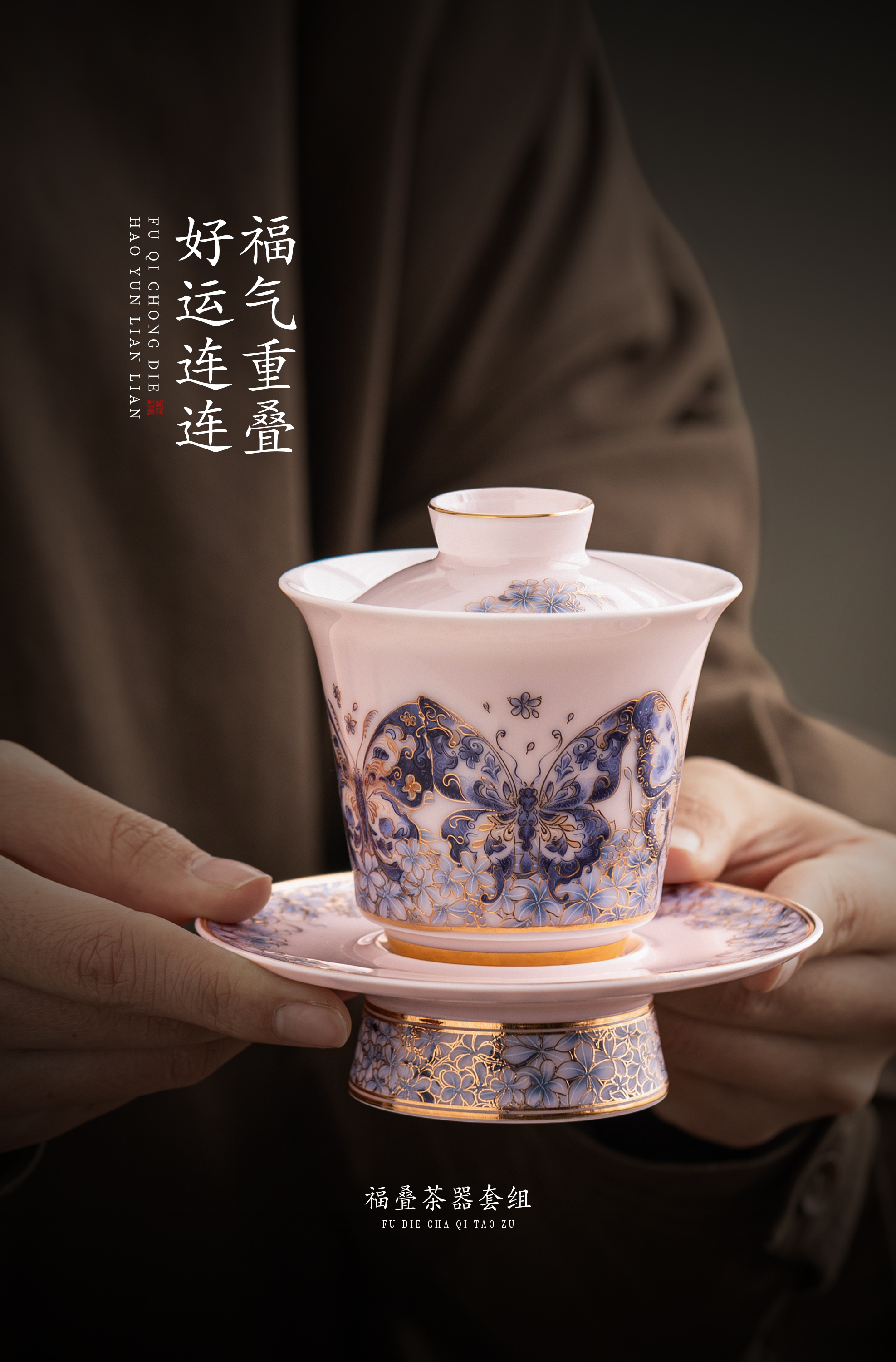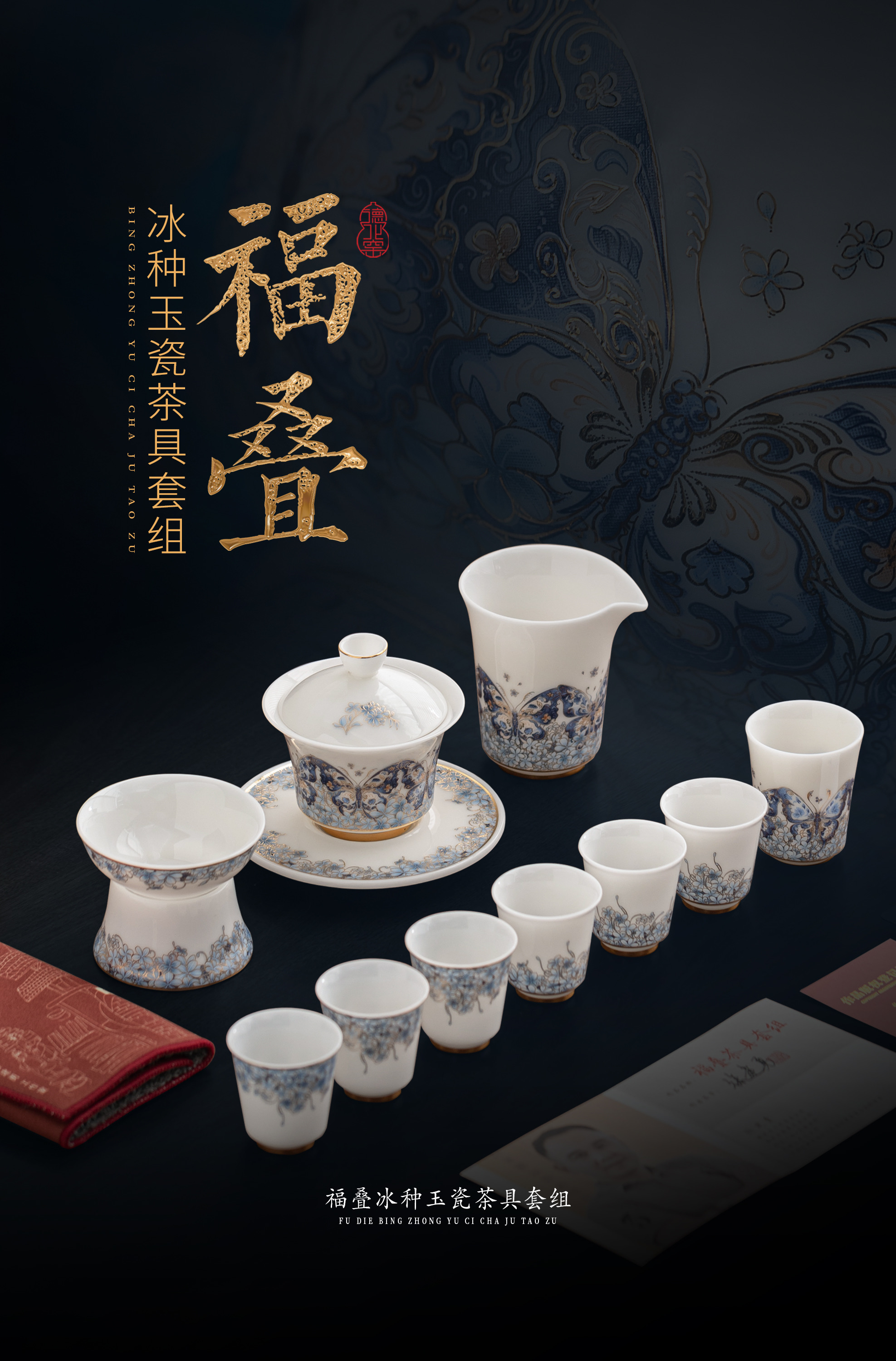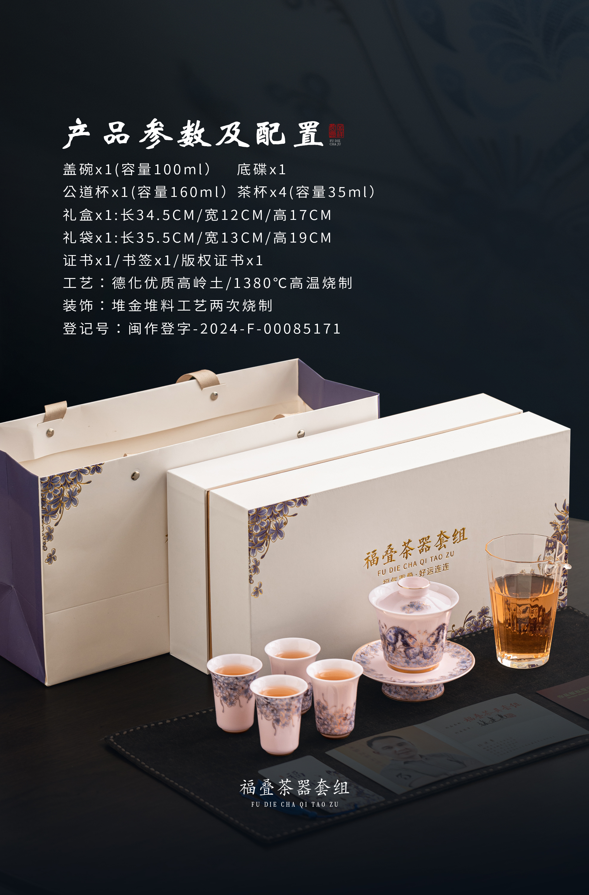【福气重叠 好运连连】福叠·茶器套组/冰种玉瓷茶具套组,徐建勇大师签章 品质保证,凝脂似玉 细腻莹润,堆金工艺 触感立体,精美包装 gao端豪礼