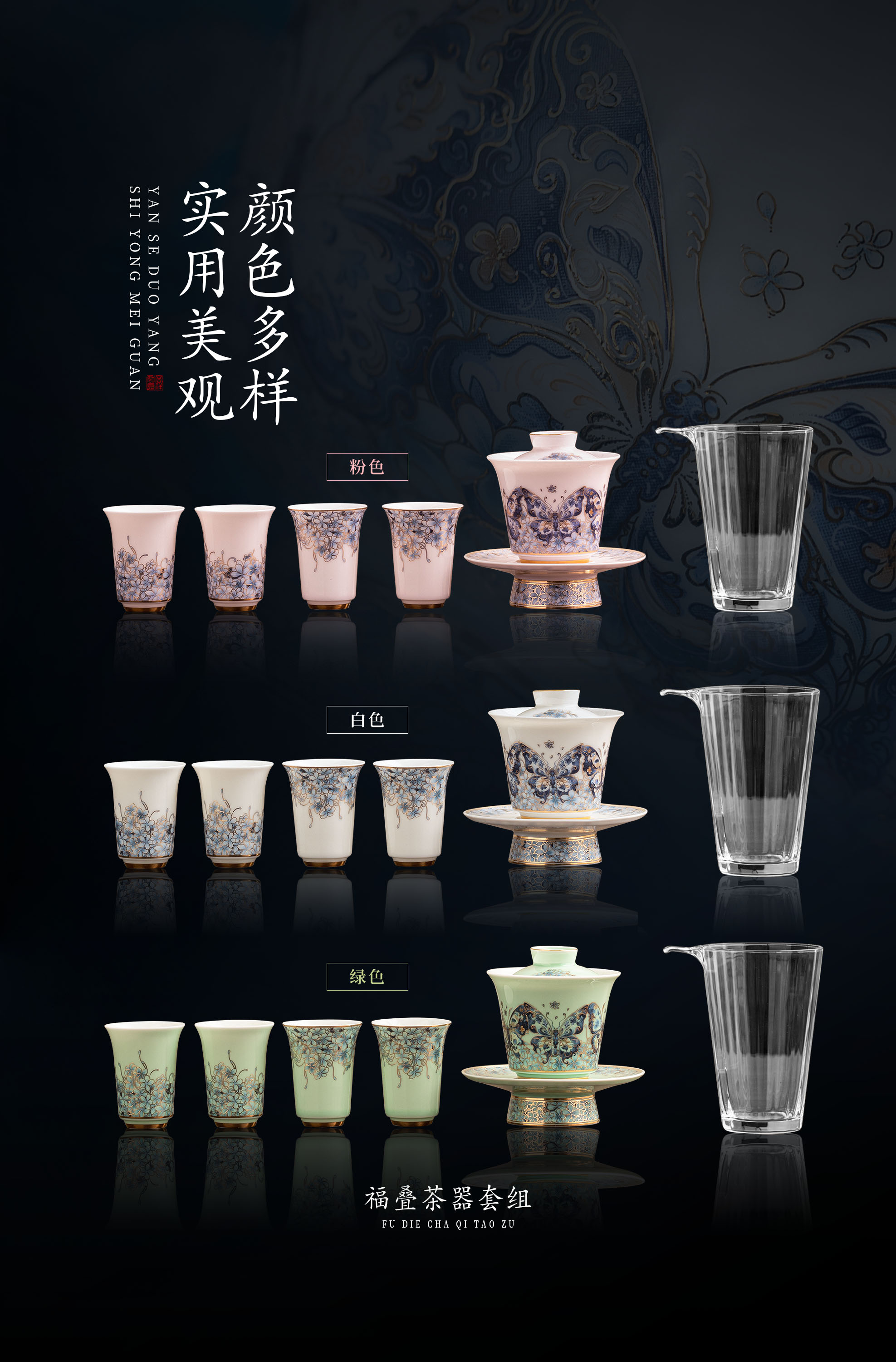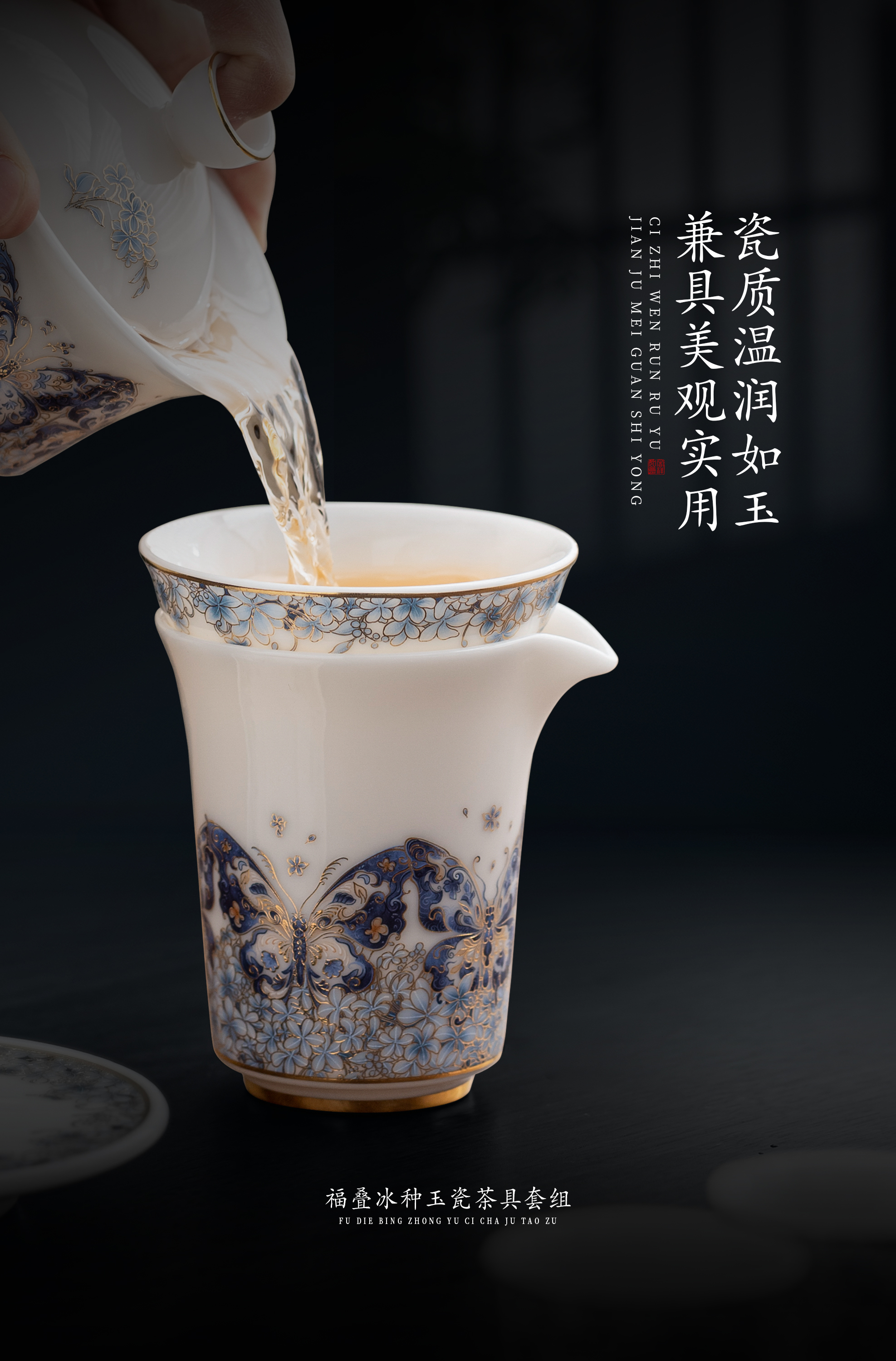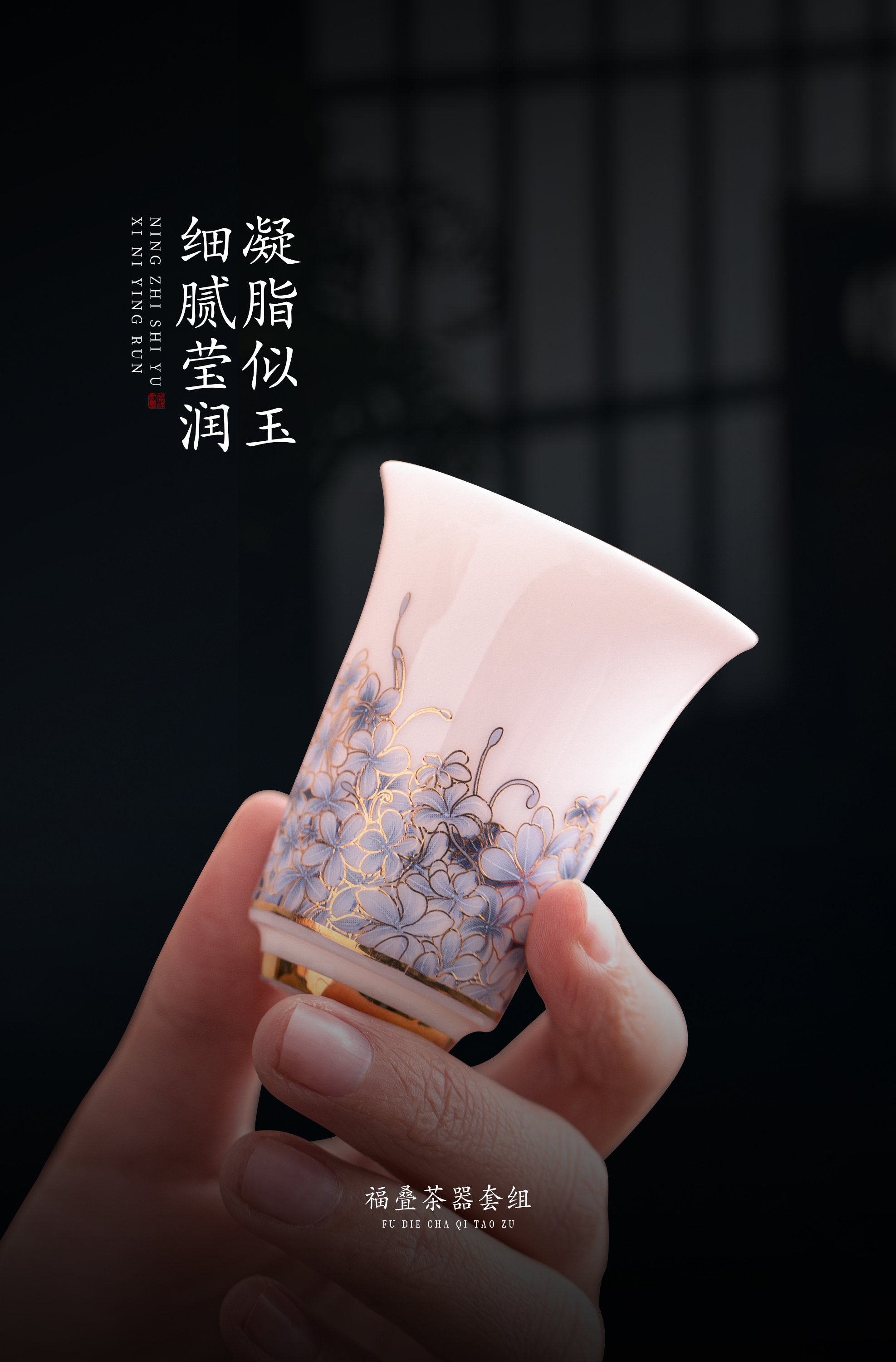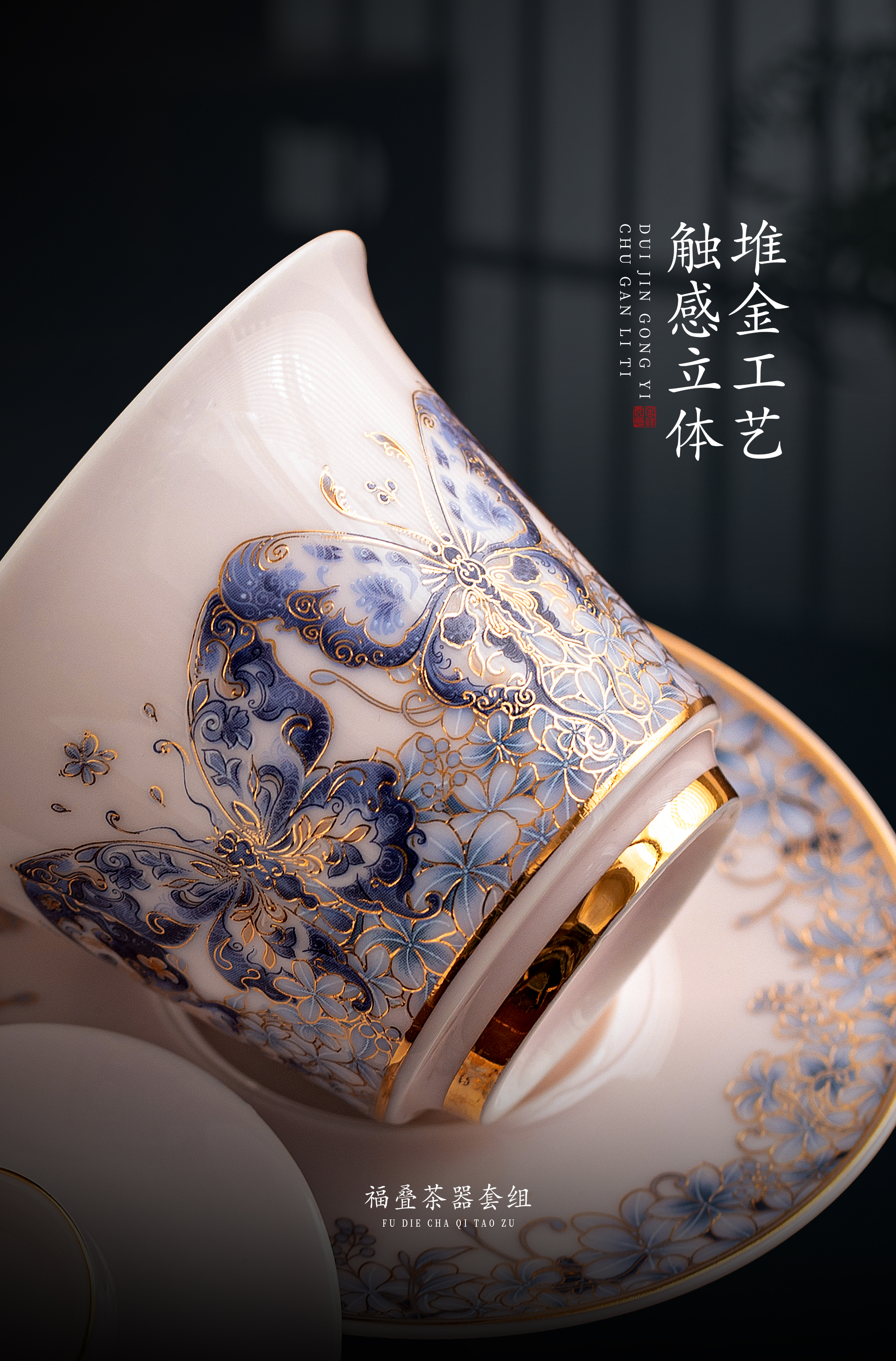 【福气重叠 好运连连】福叠·茶器套组/冰种玉瓷茶具套组,徐建勇大师签章 品质保证,凝脂似玉 细腻莹润,堆金工艺 触感立体,精美包装 gao端豪礼