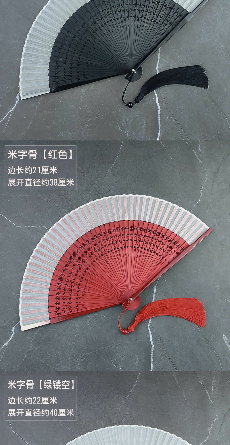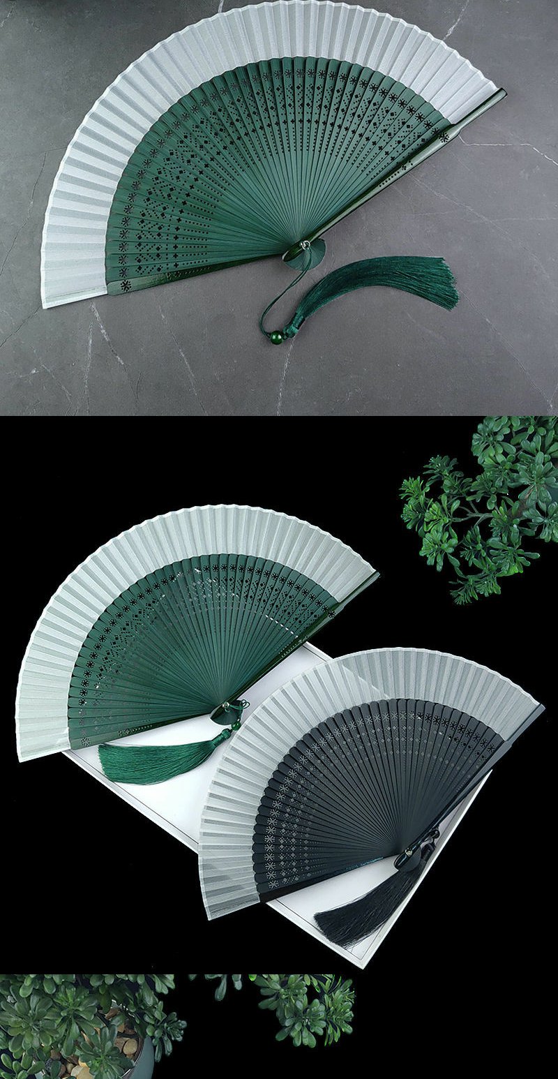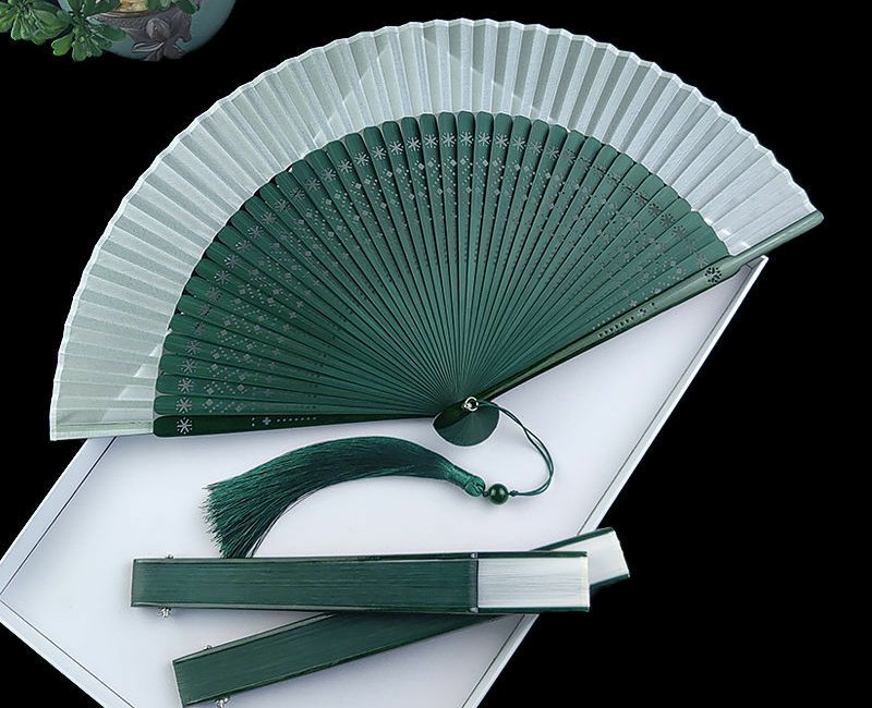 扇子折扇中国风女式夏天随身折叠汉服旗袍古风纯色空白绿色真丝扇,
