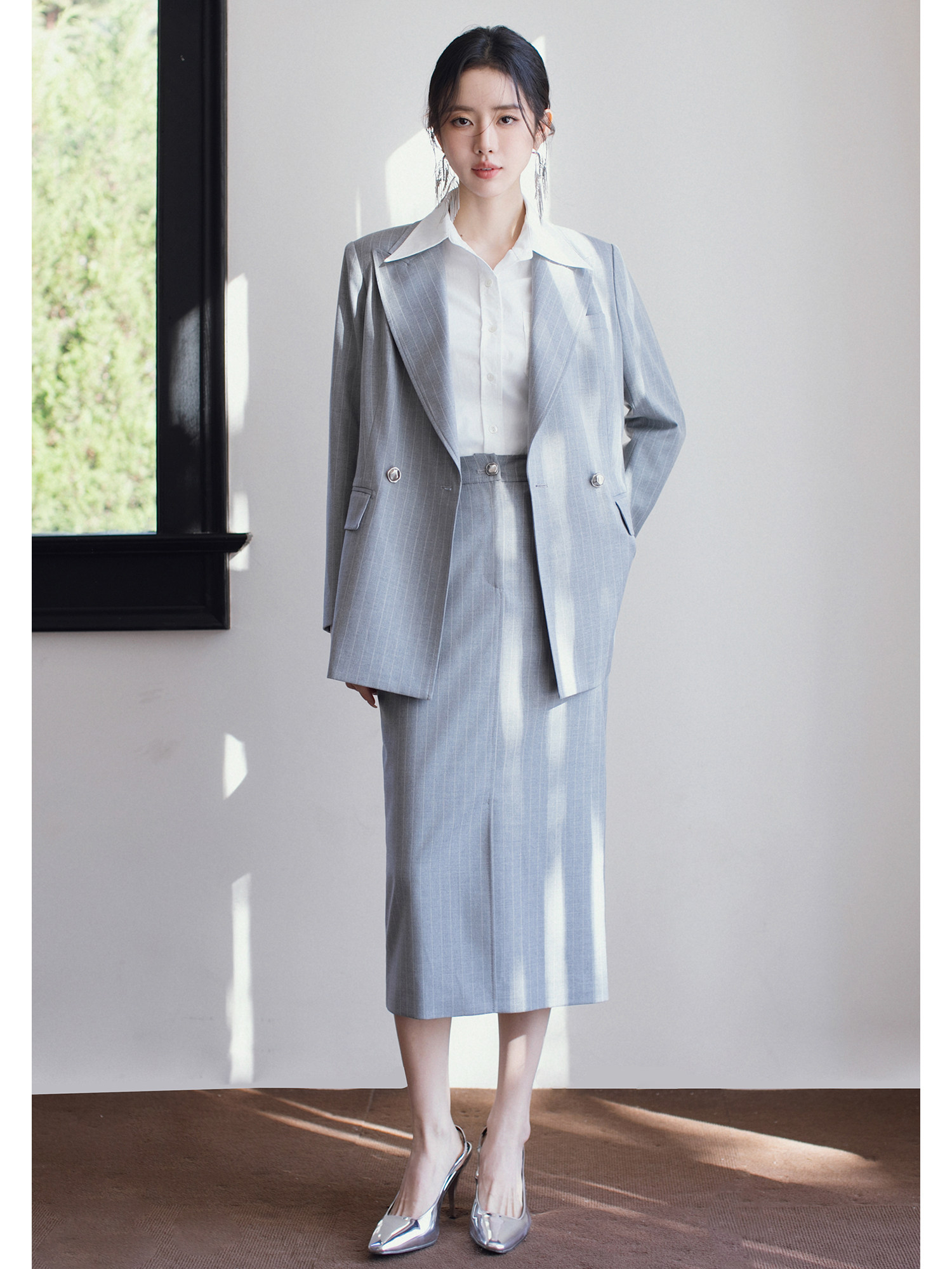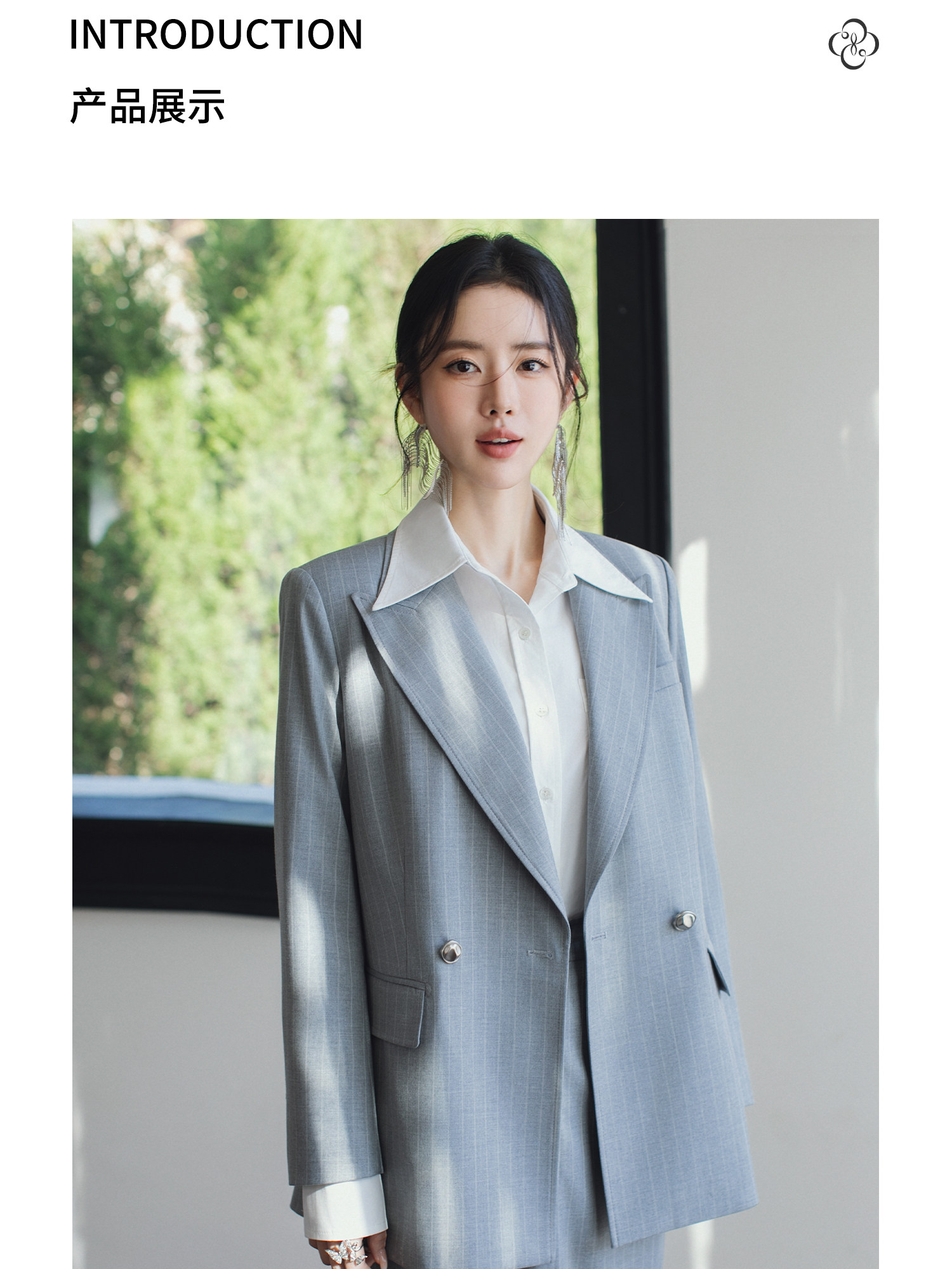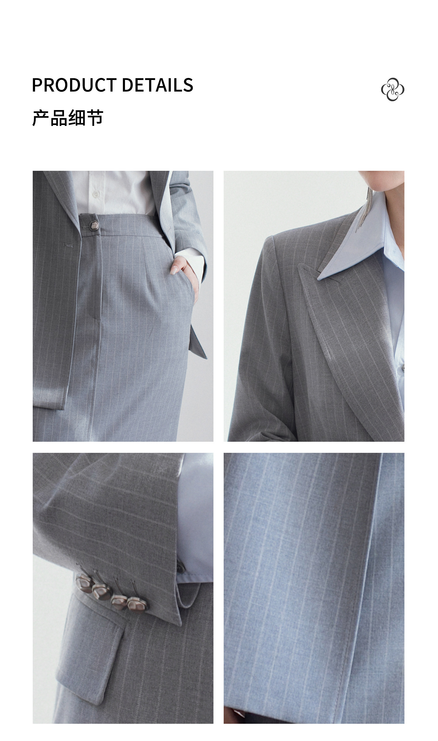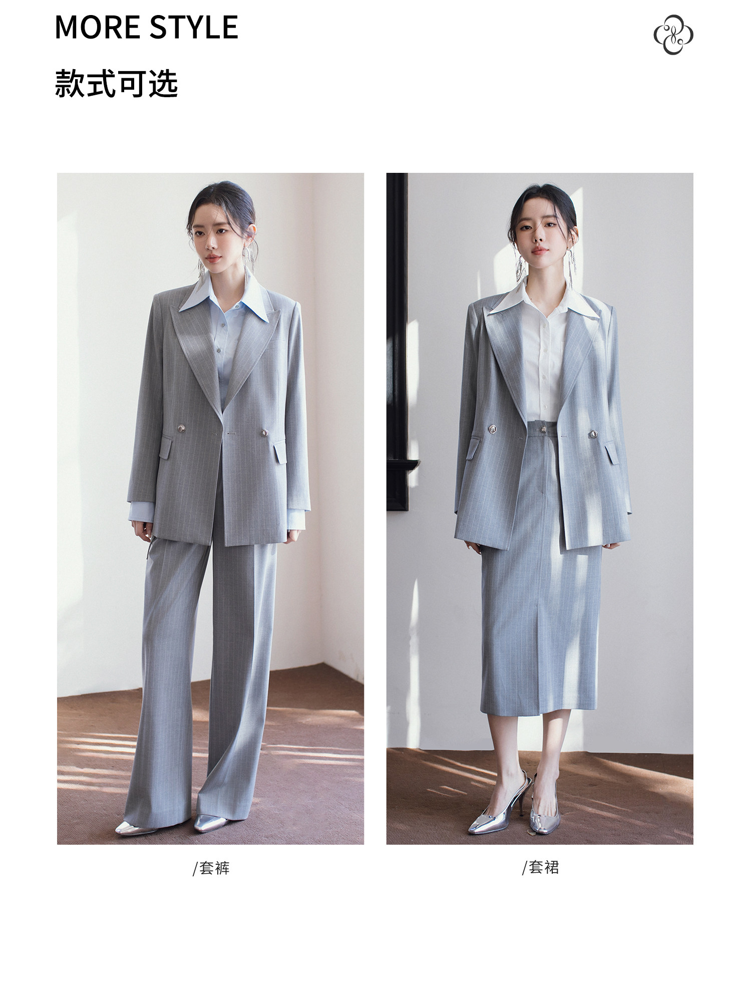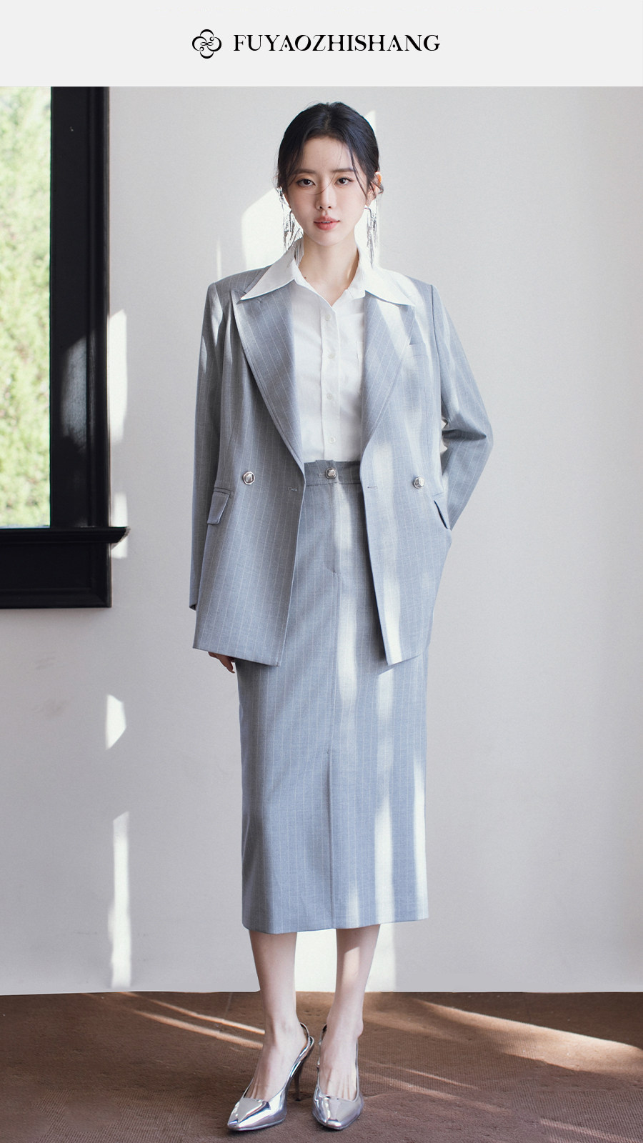 FUYAO扶摇直上 灰色条纹西装套装女春季面试宽松西服半身裙两件套