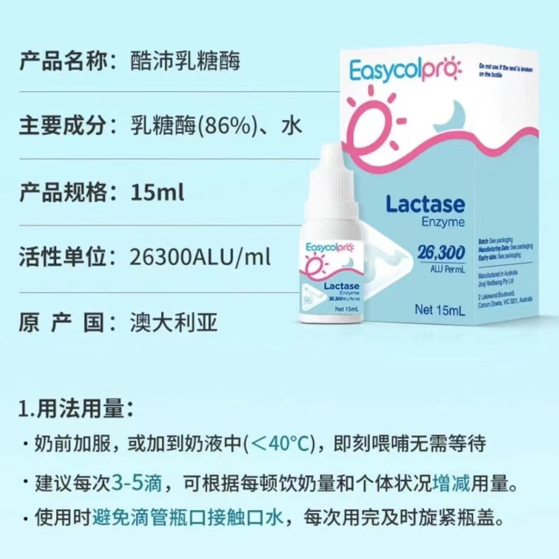【源码/刮码随机发货】酷沛乳糖酶无甘油86%配方(含量26300ALU/ml)婴幼儿宝宝乳糖不耐受腹泻消化酶15ml瓶